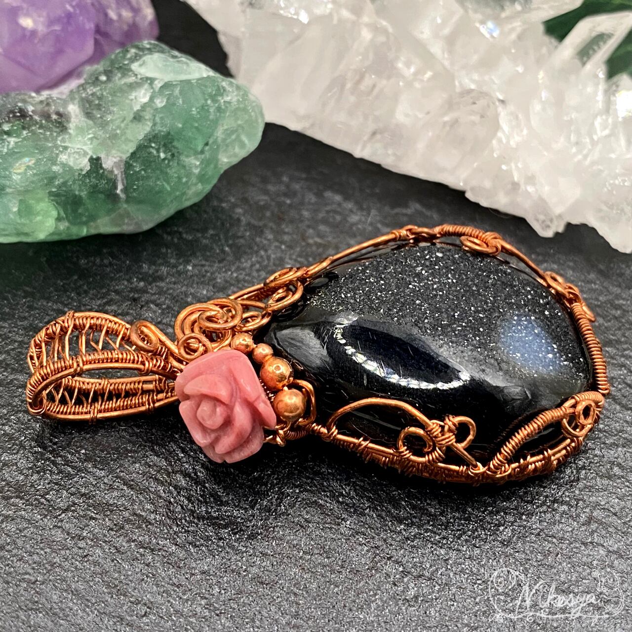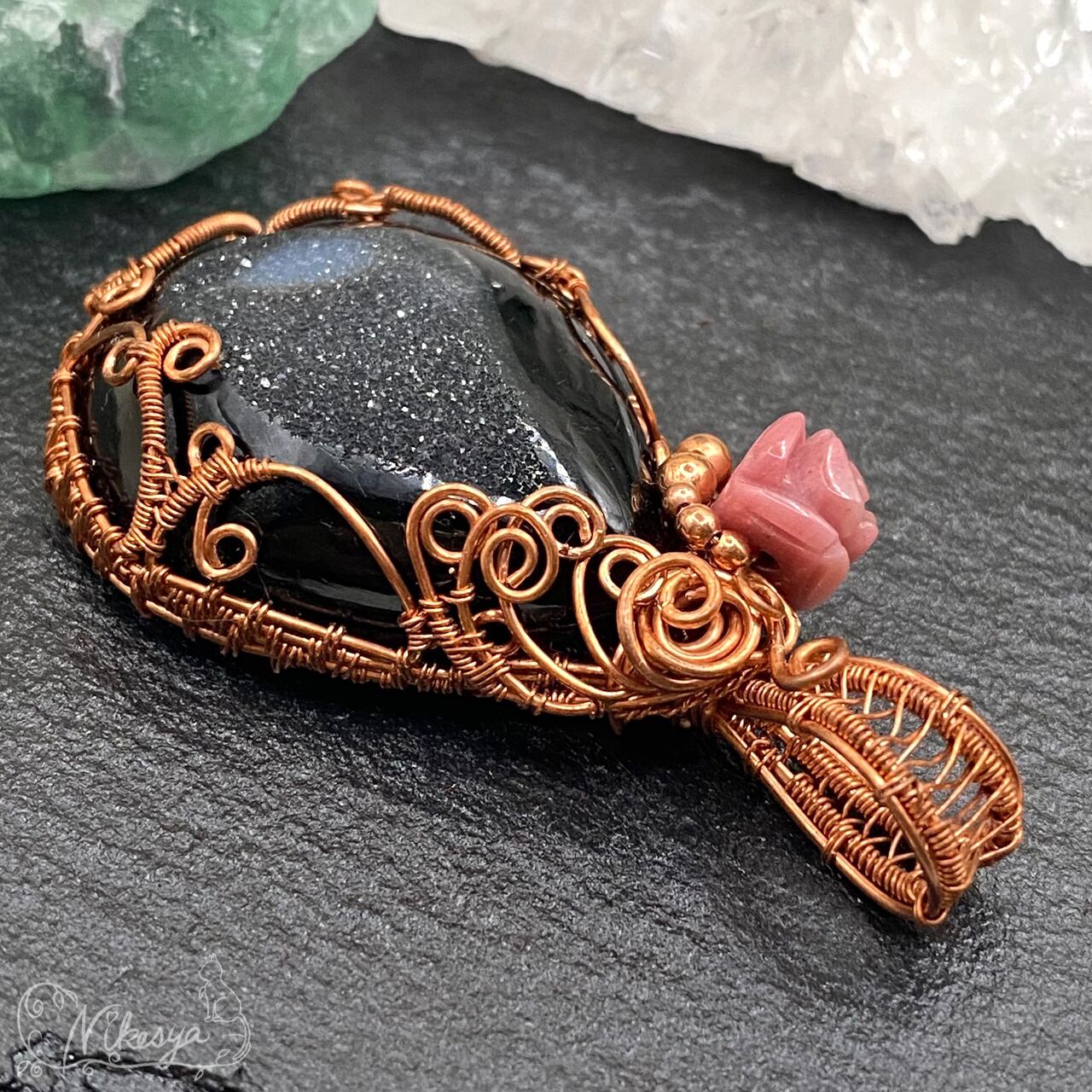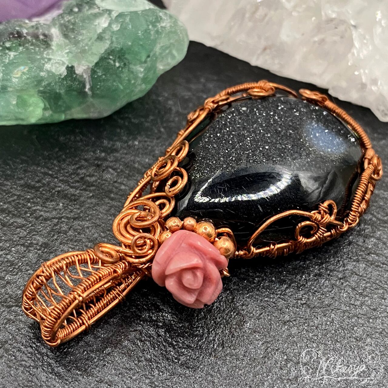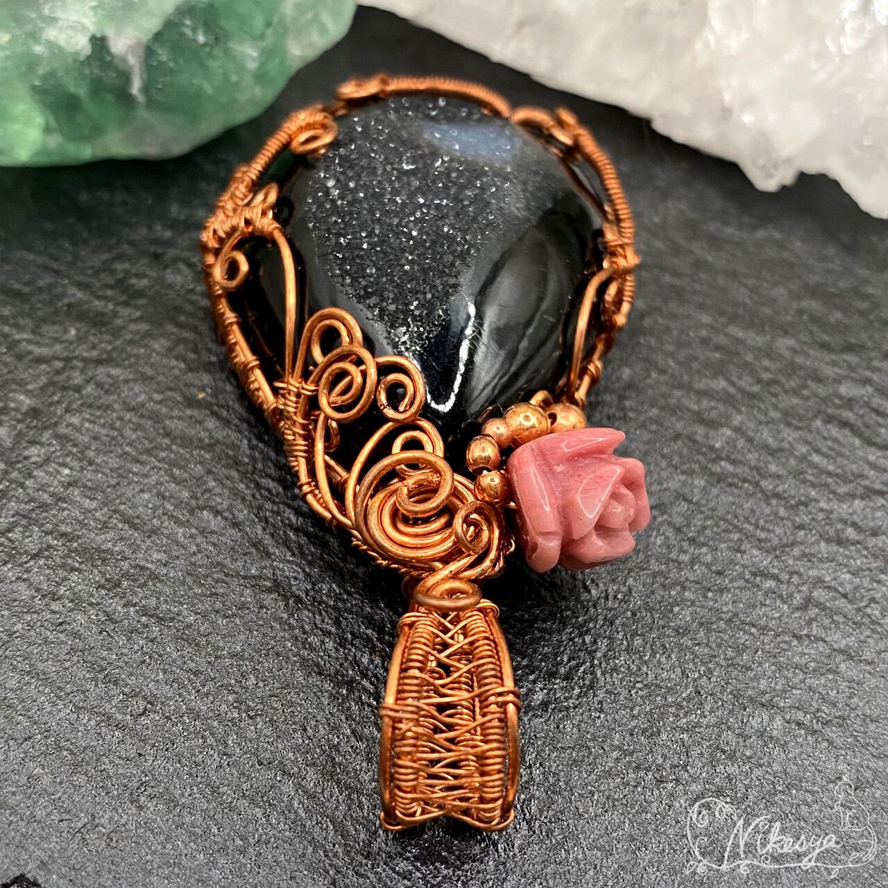 #ブラックオニキス #ワイヤーアクセサリー #ペンダントトップ #一点もの #オニキス #ドゥルージー #送料無料