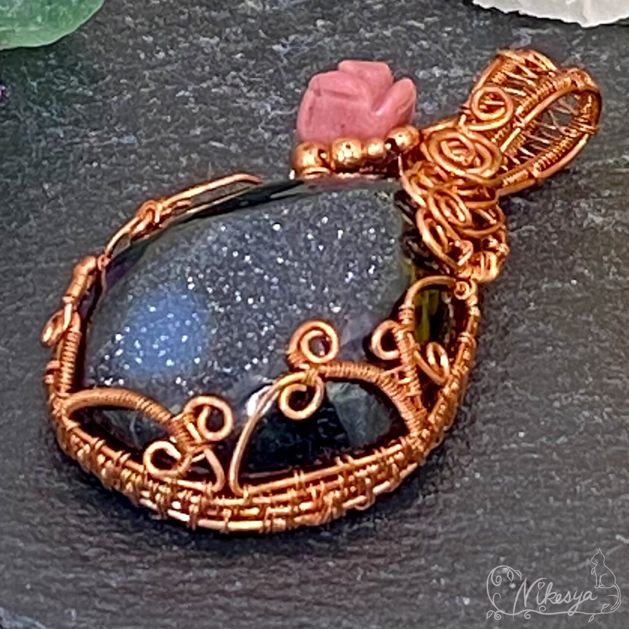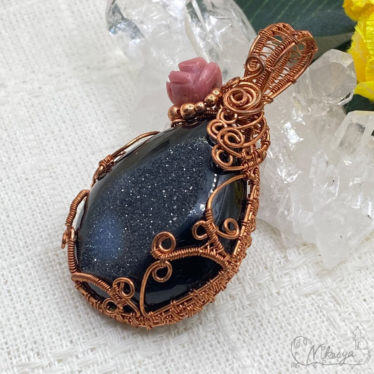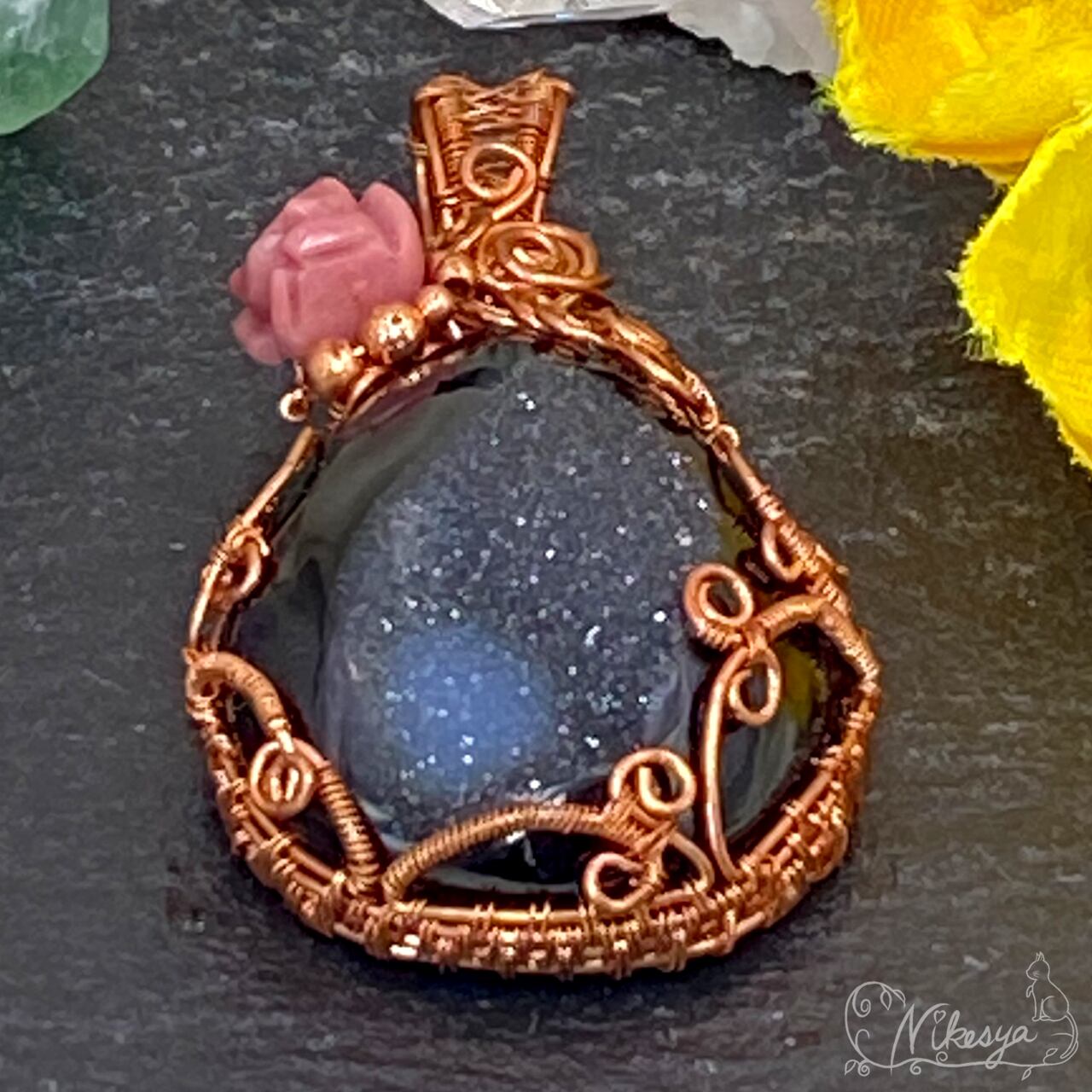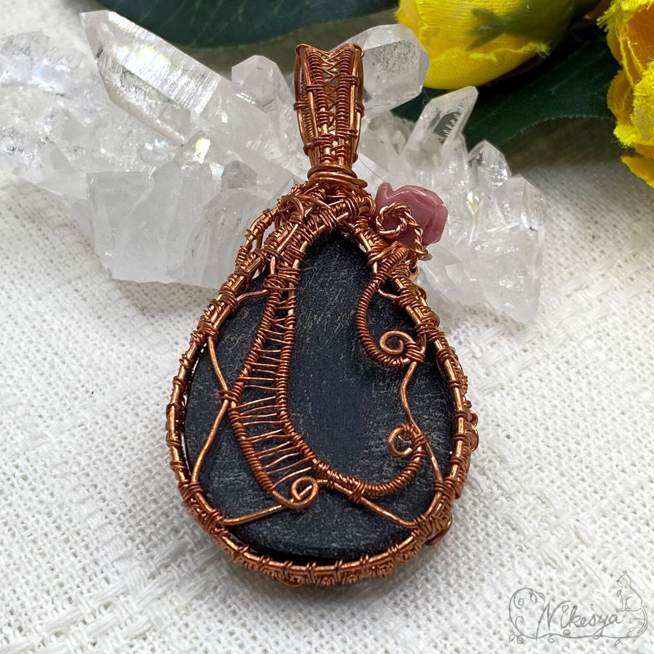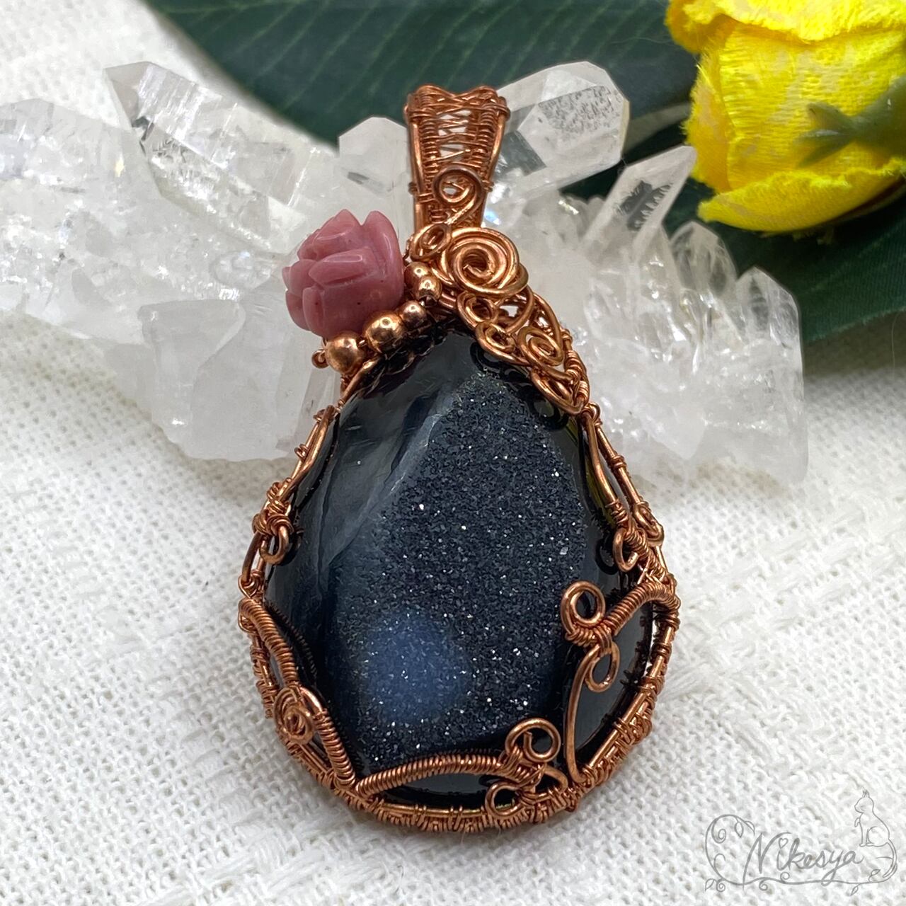 #ブラックオニキス #ワイヤーアクセサリー #ペンダントトップ #一点もの #オニキス #ドゥルージー #送料無料
