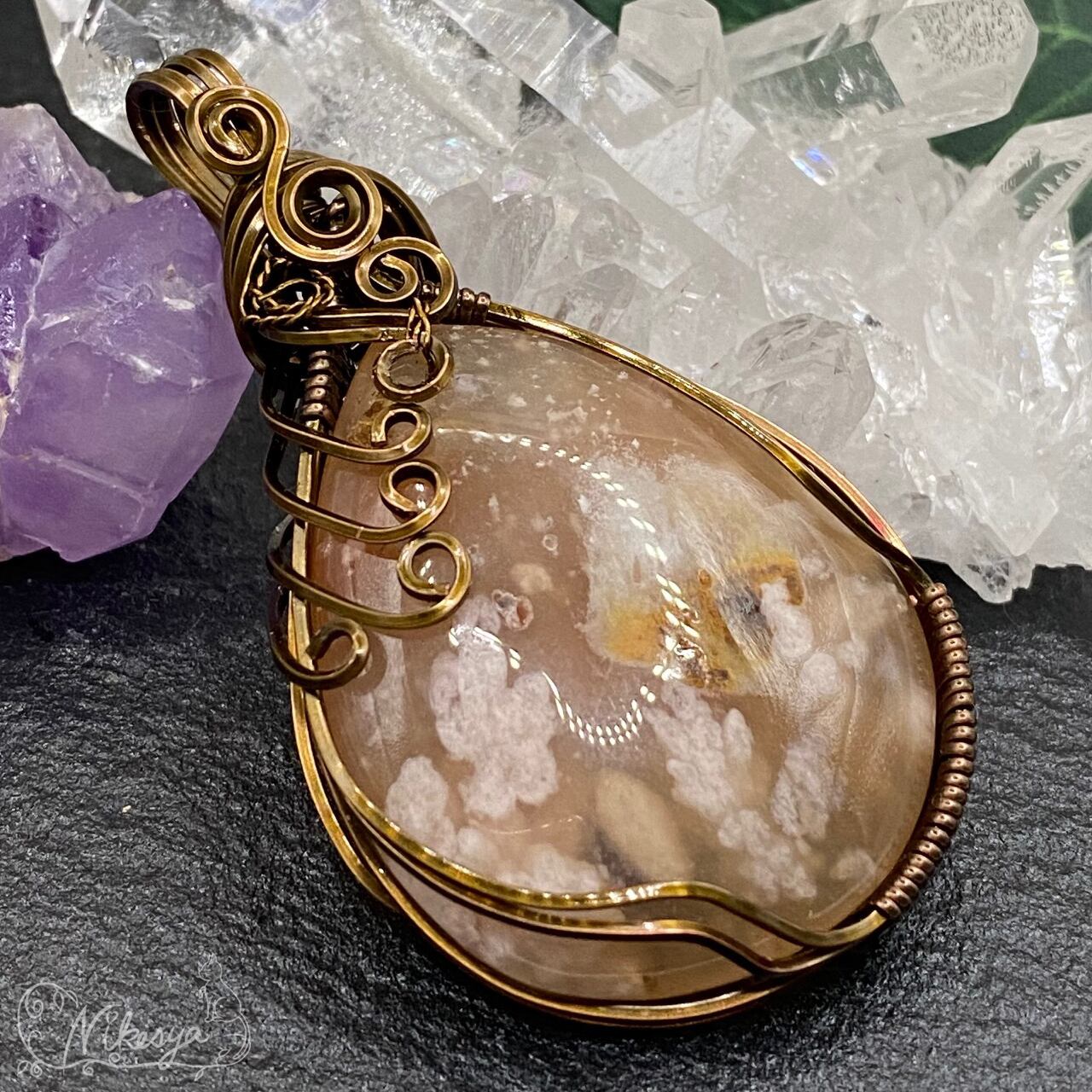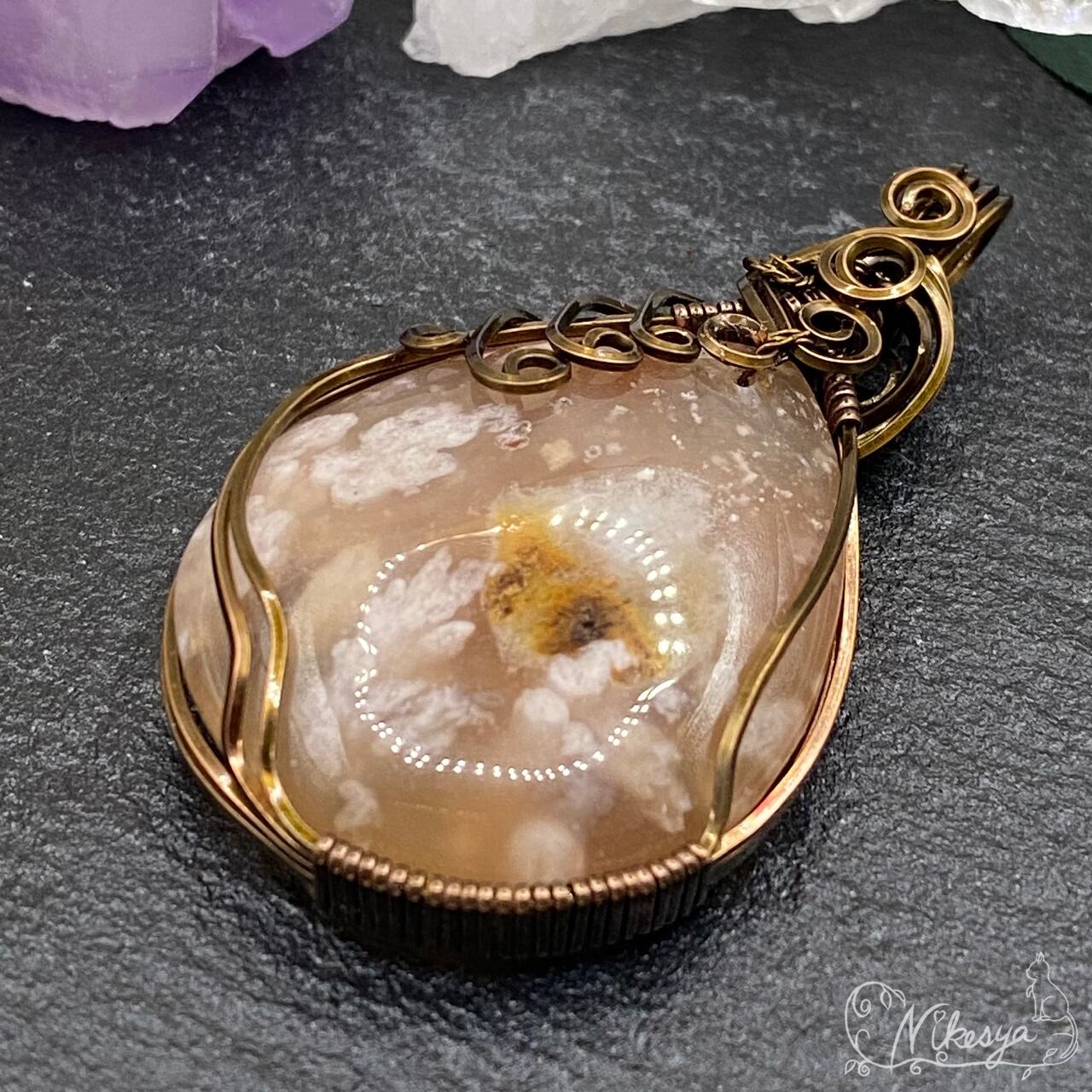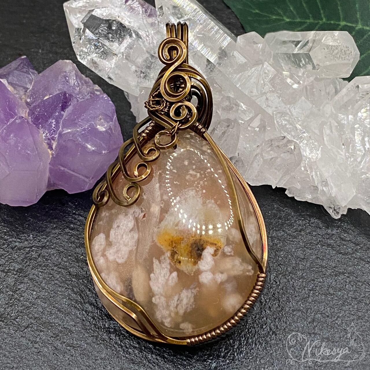 #チェリーブロッサムアゲート#ワイヤーアクセサリー #ペンダントトップ #一点もの #桜メノウ #送料無料