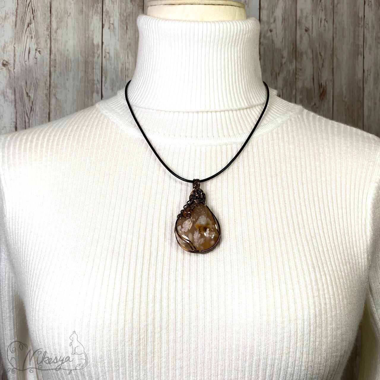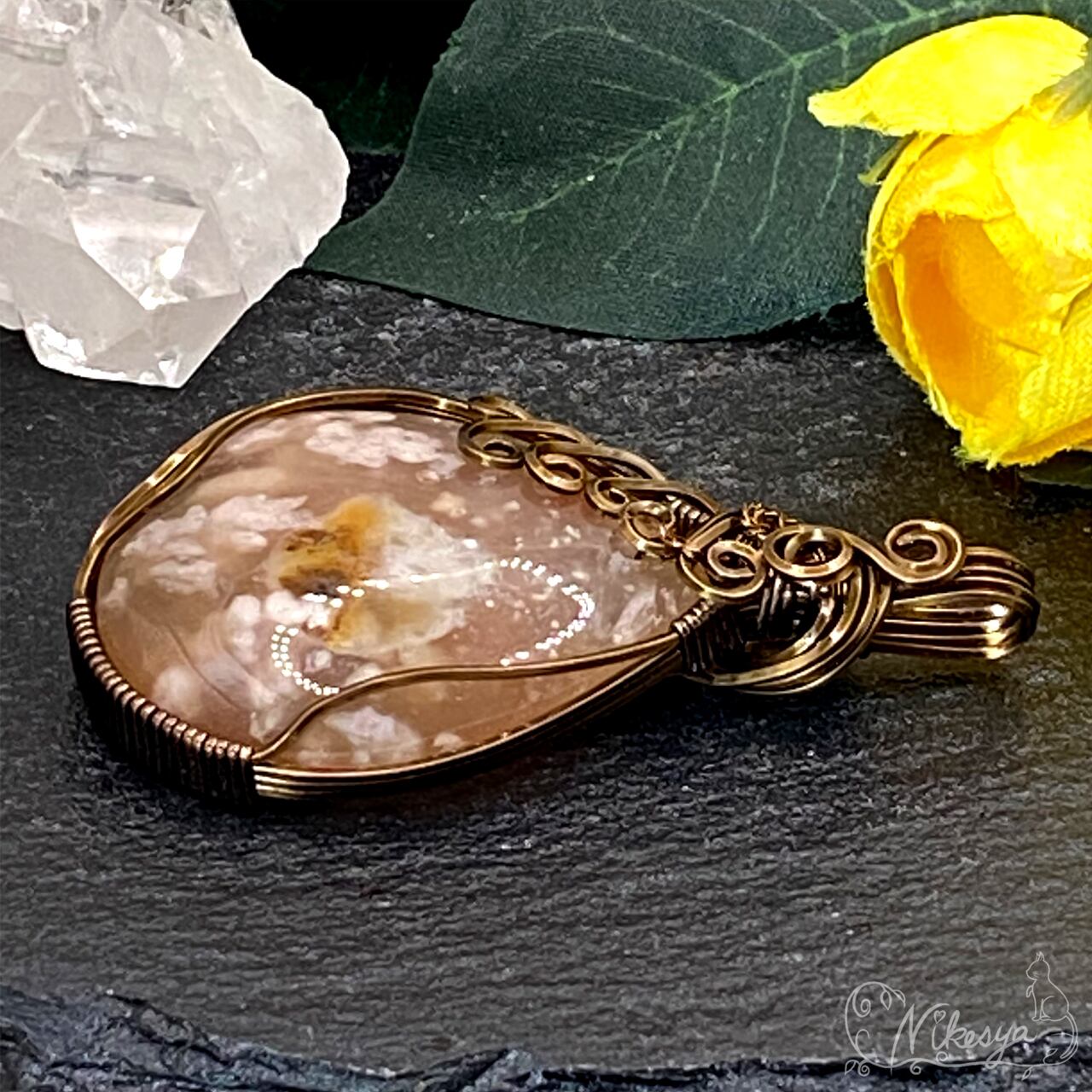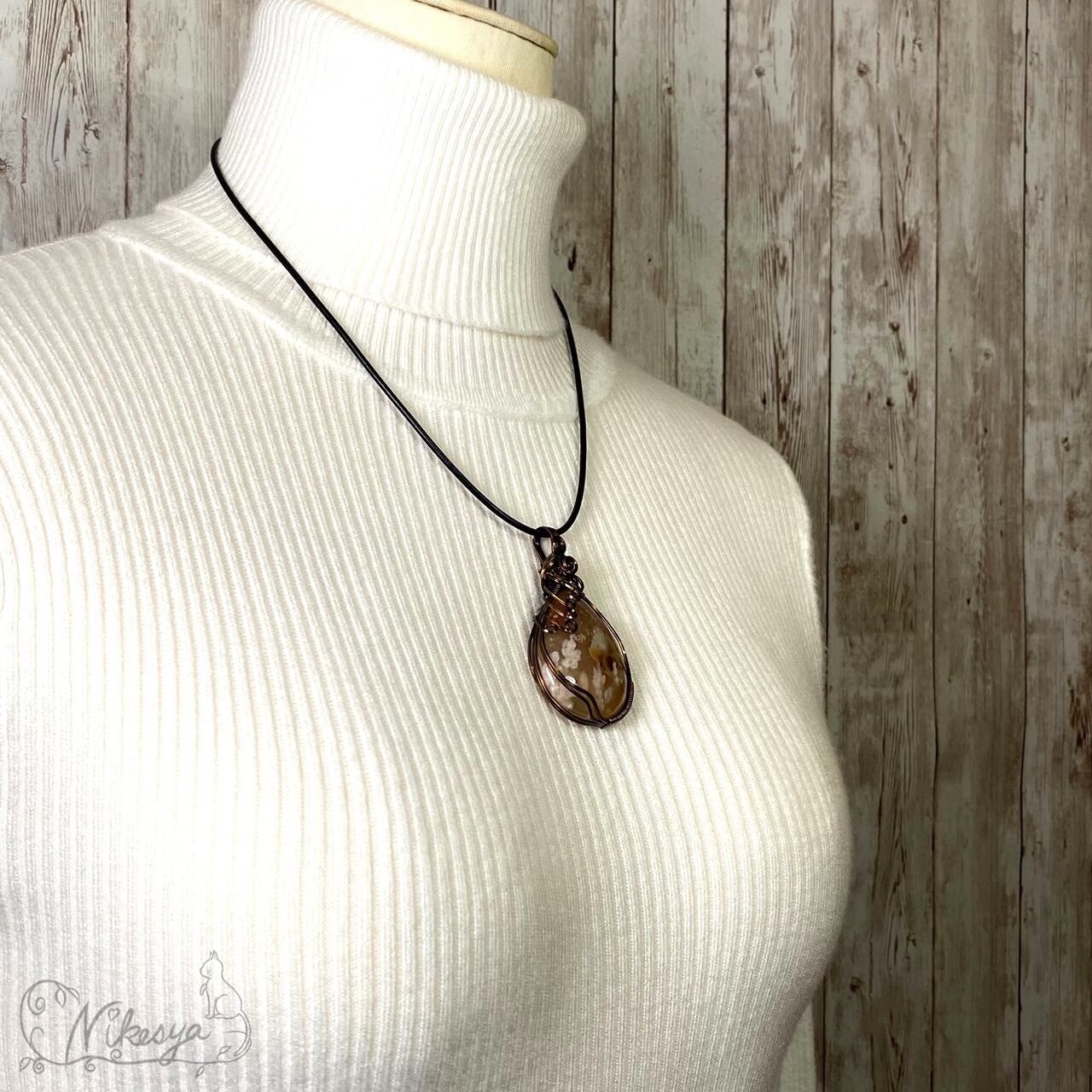 #チェリーブロッサムアゲート#ワイヤーアクセサリー #ペンダントトップ #一点もの #桜メノウ #送料無料