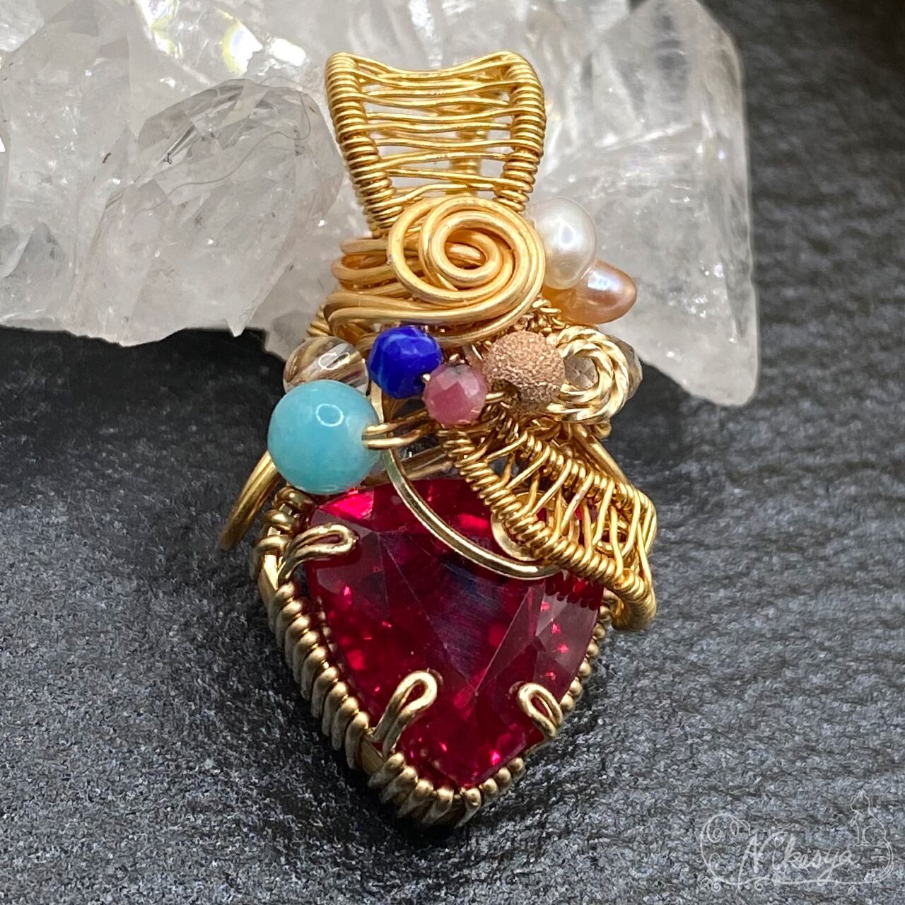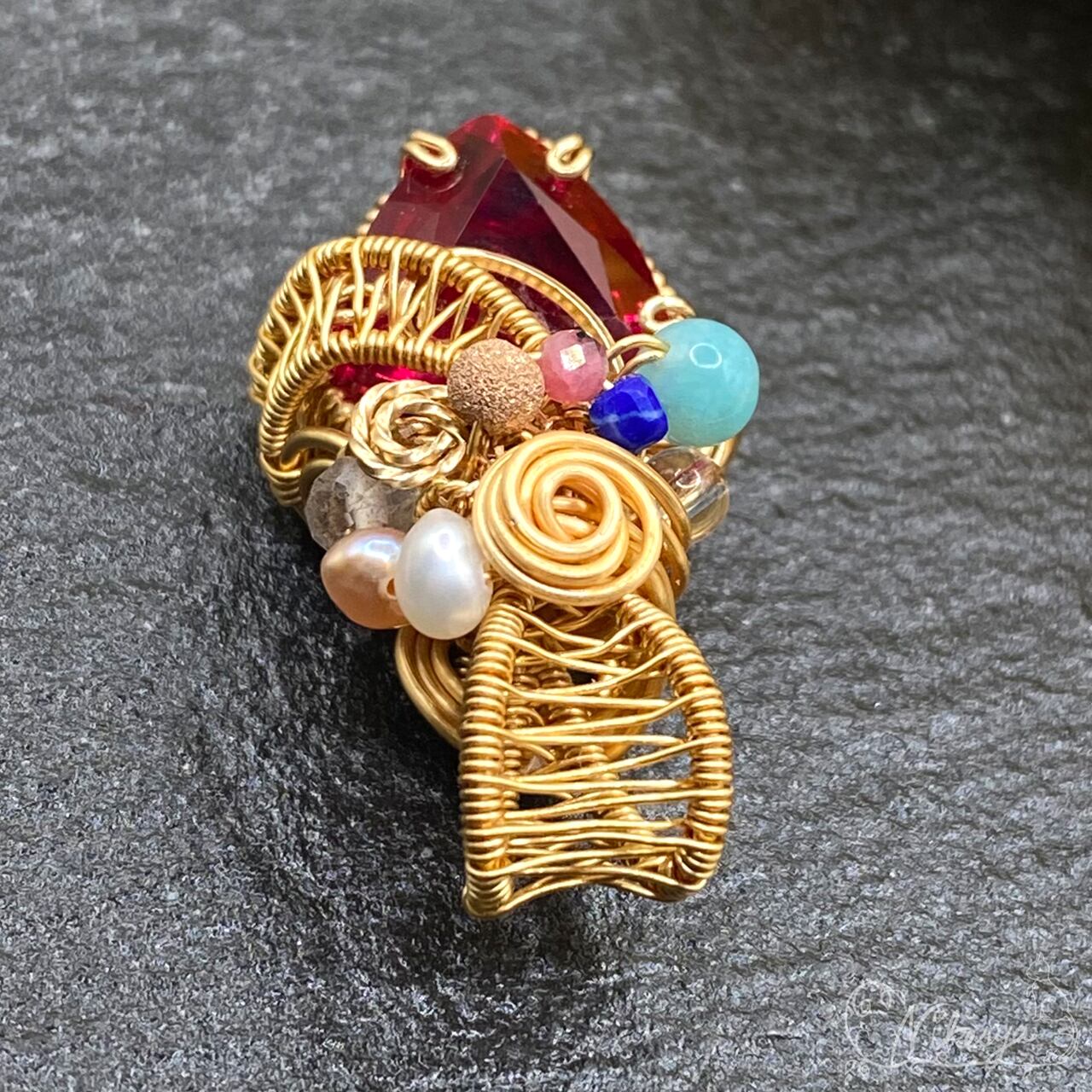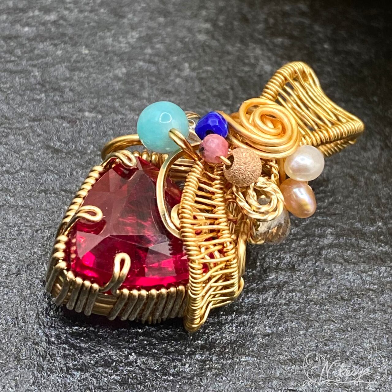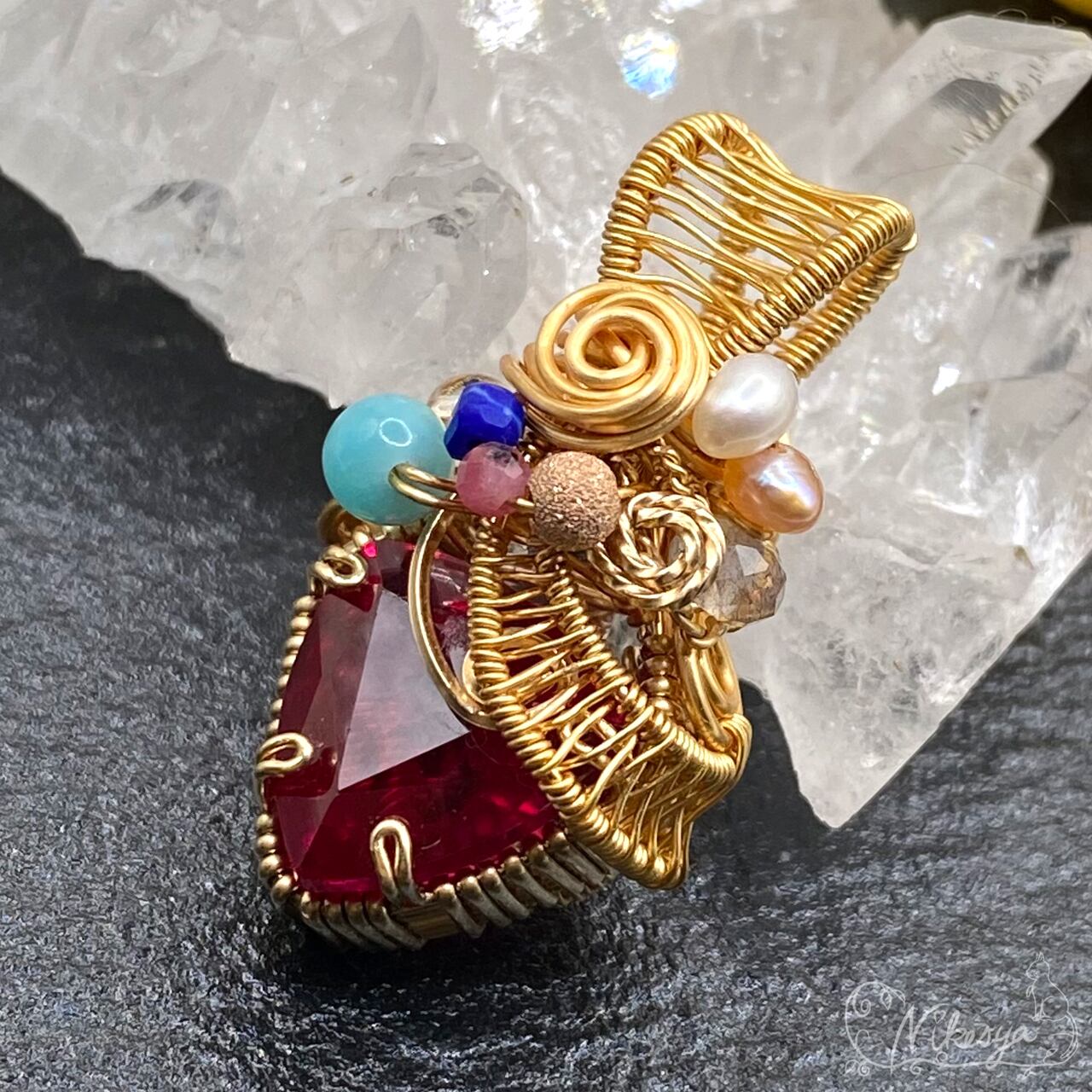 #ワイヤーアクセサリー #ペンダントトップ #ルビー #アマゾナイト #14KGF #7月誕生石 #一点もの #送料無料
