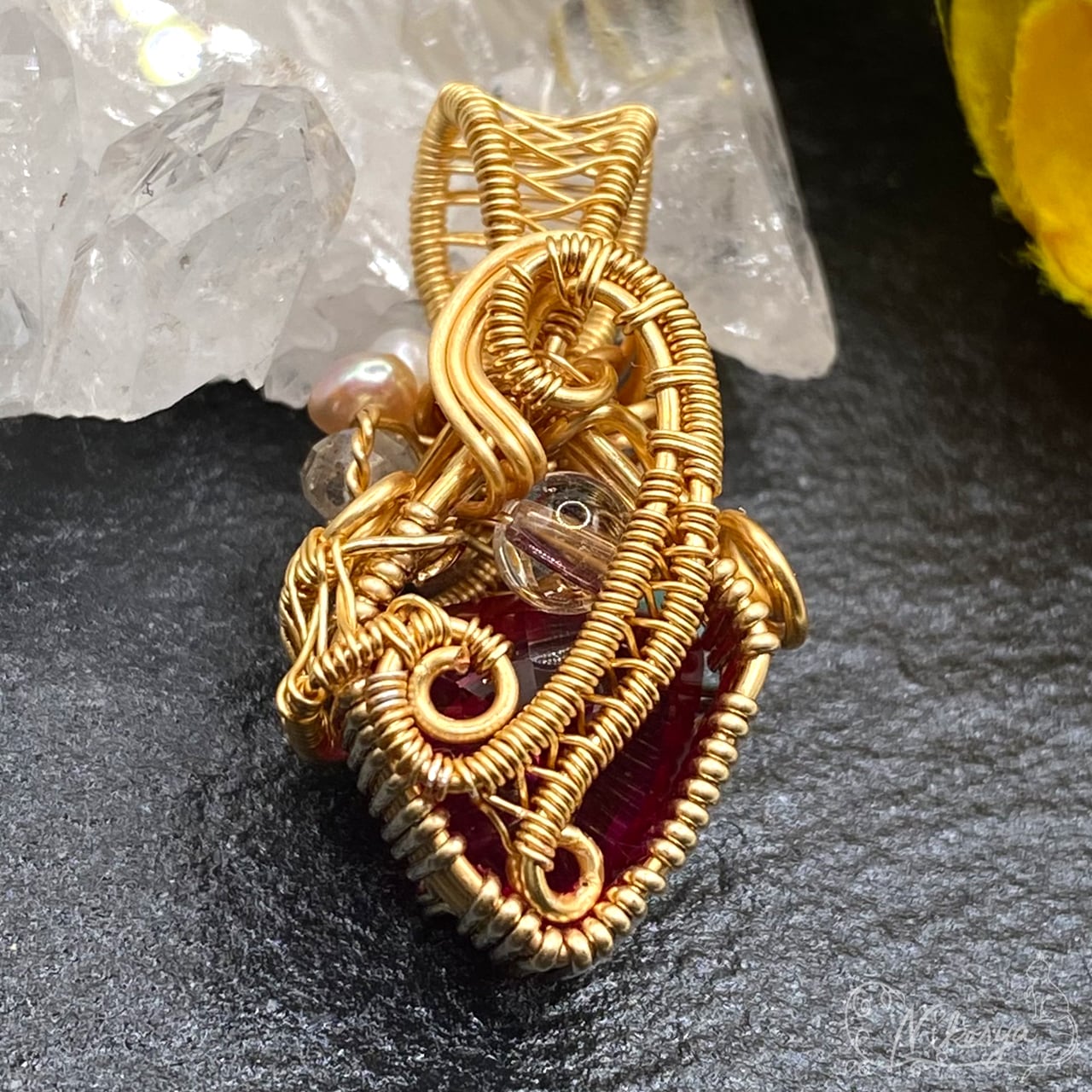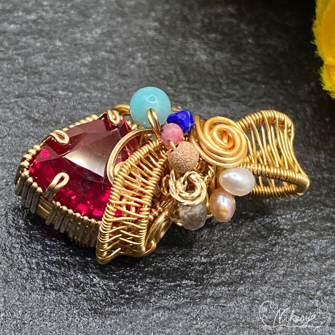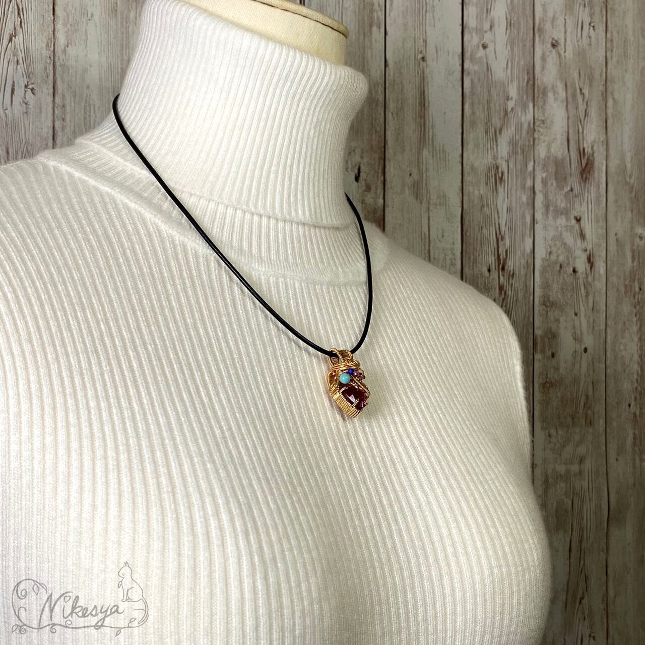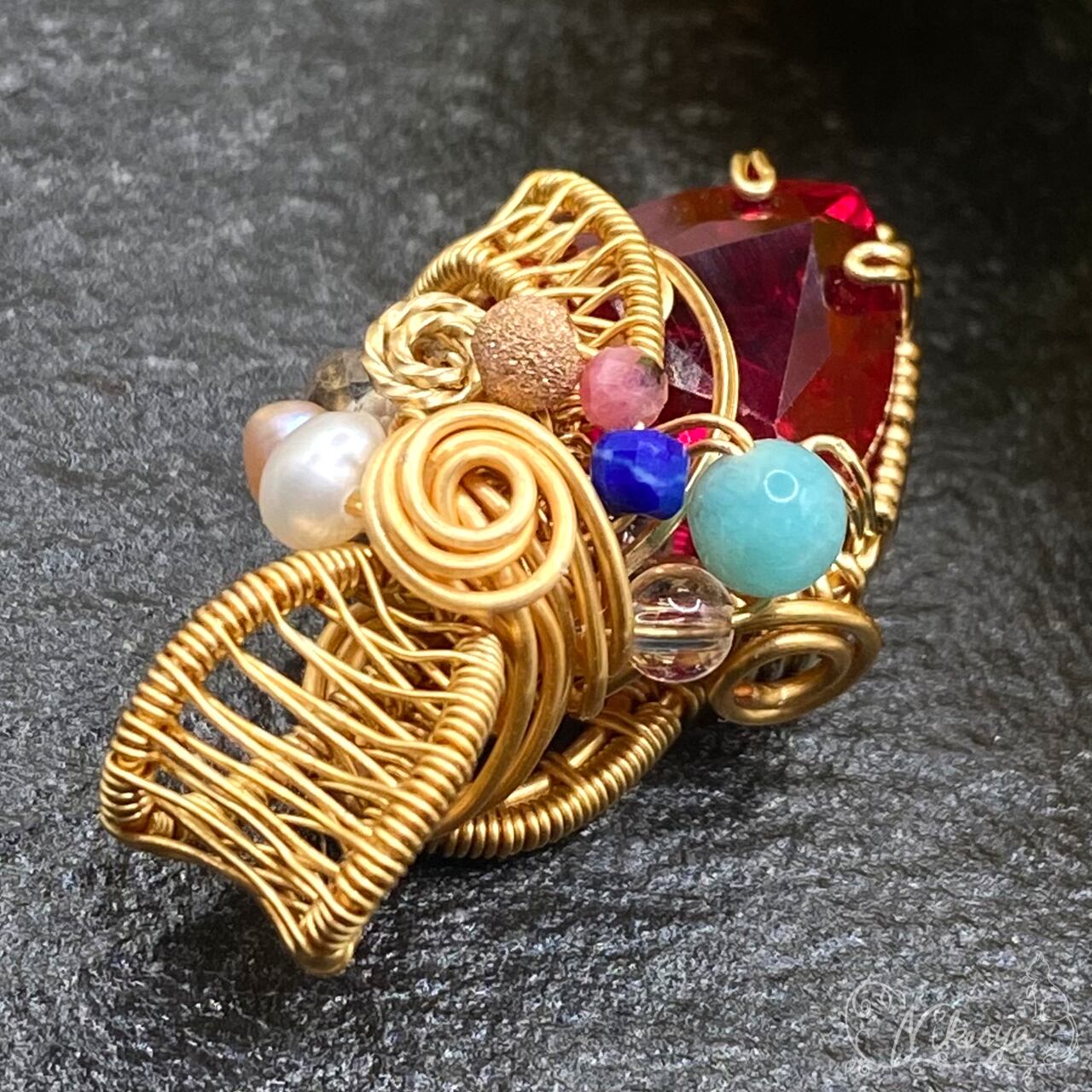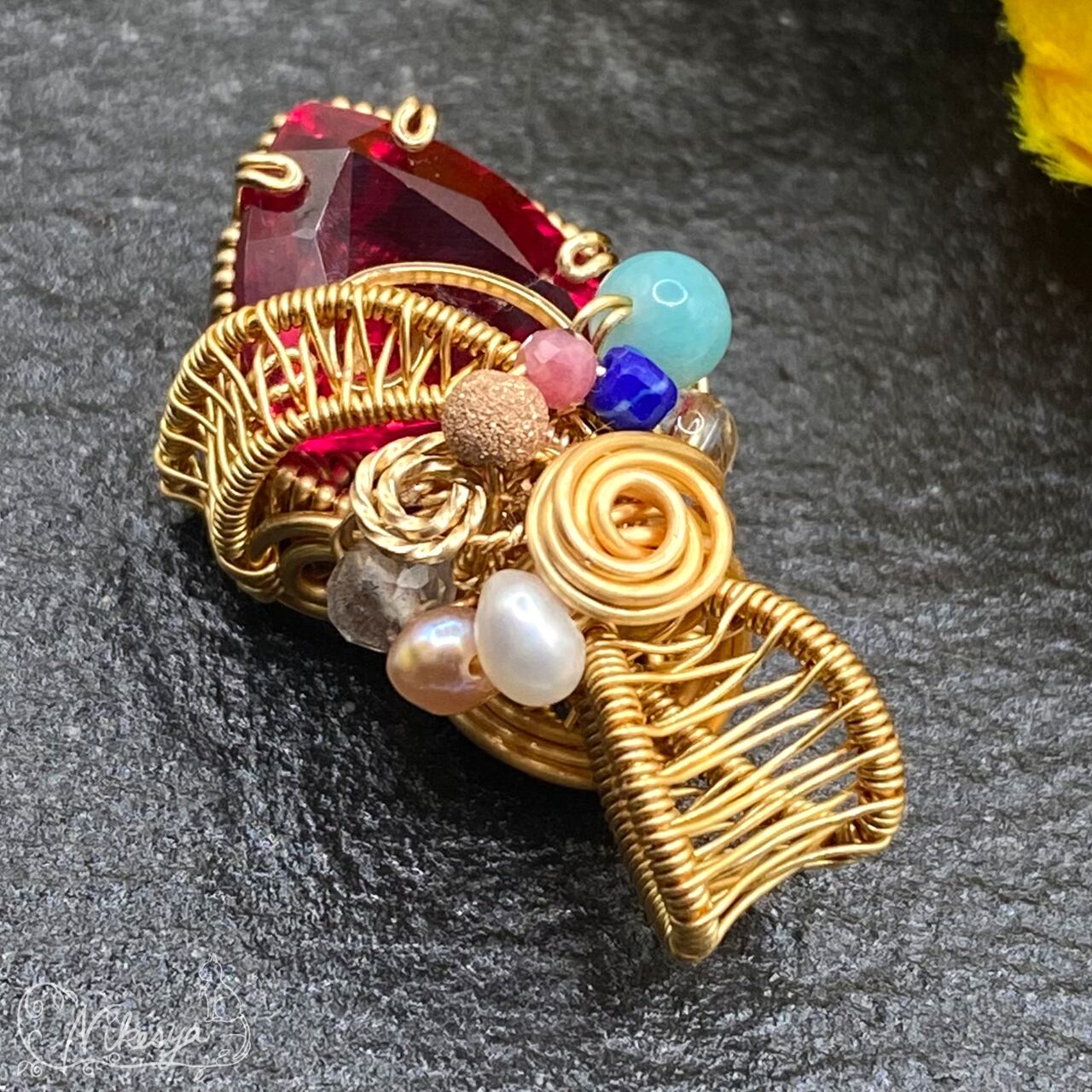 #ワイヤーアクセサリー #ペンダントトップ #ルビー #アマゾナイト #14KGF #7月誕生石 #一点もの #送料無料