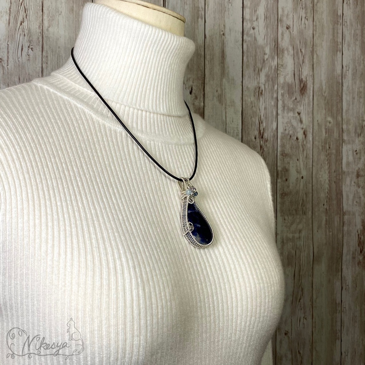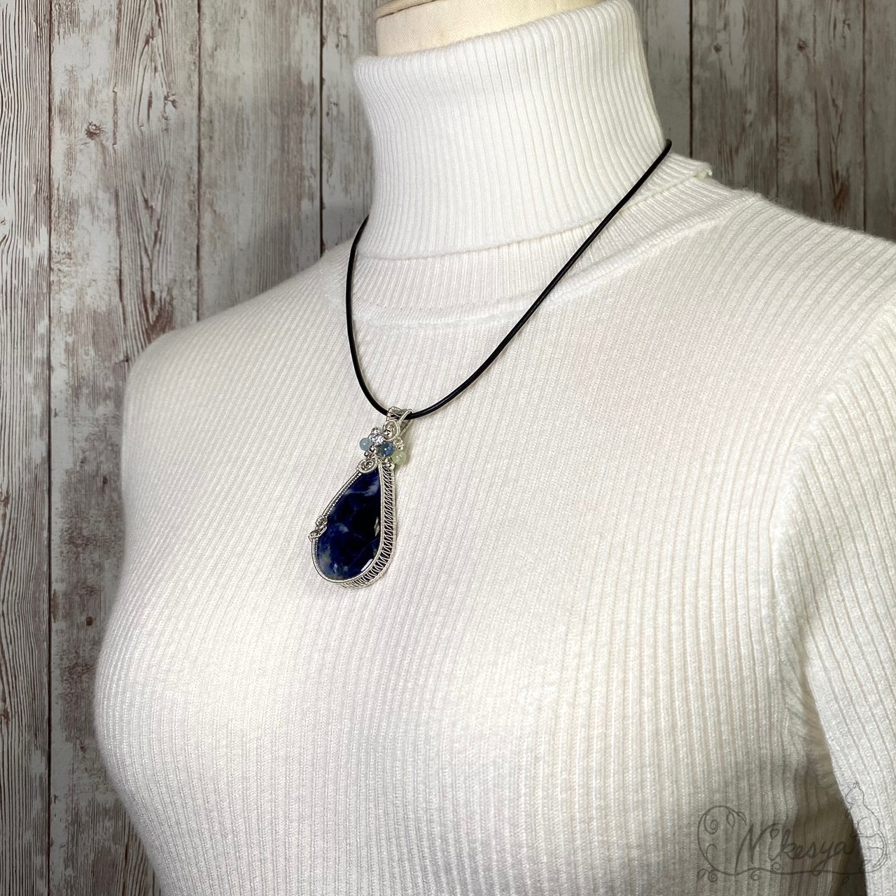 #ソーダライト #ワイヤーアクセサリー #ペンダントトップ #アクアマリン #一点もの #送料無料