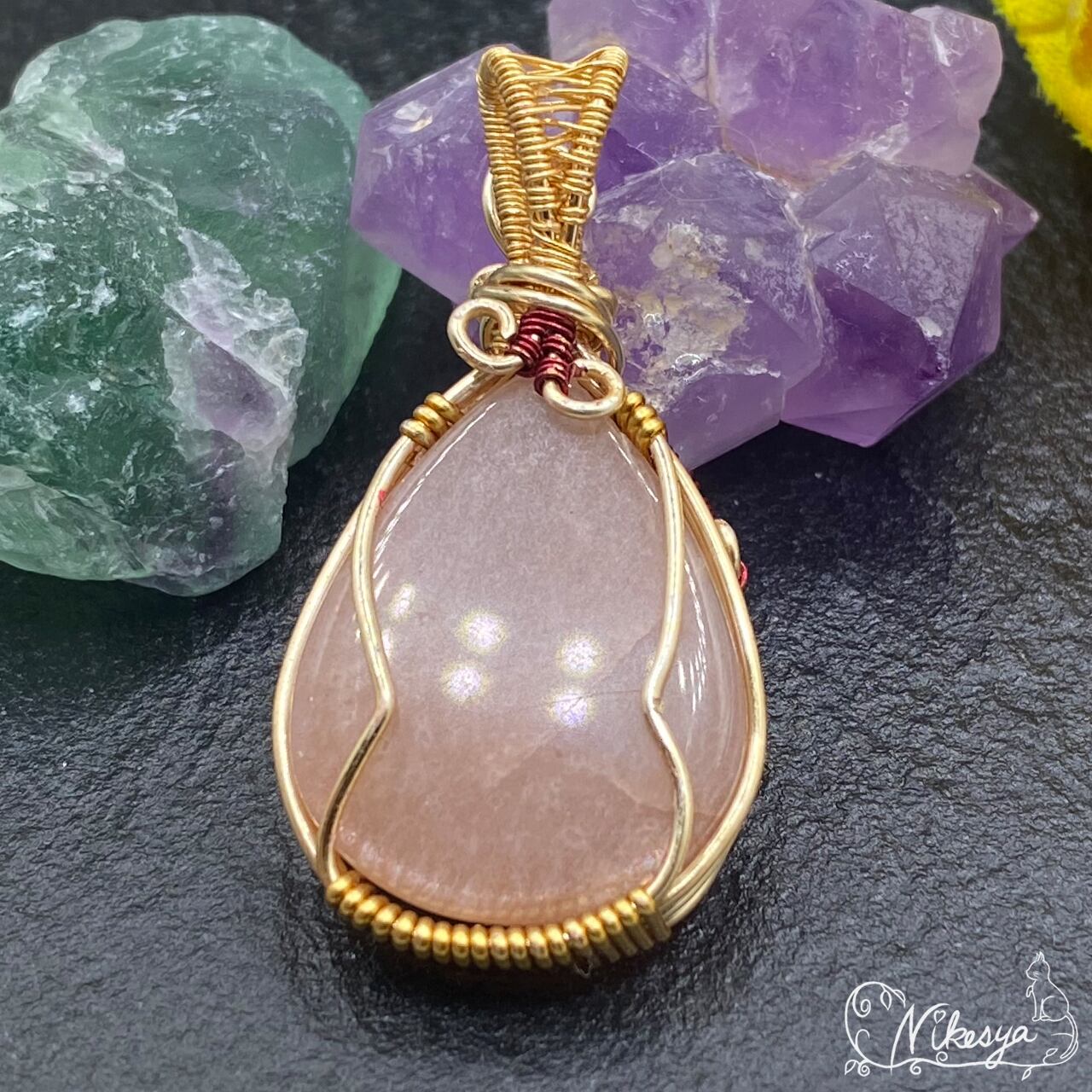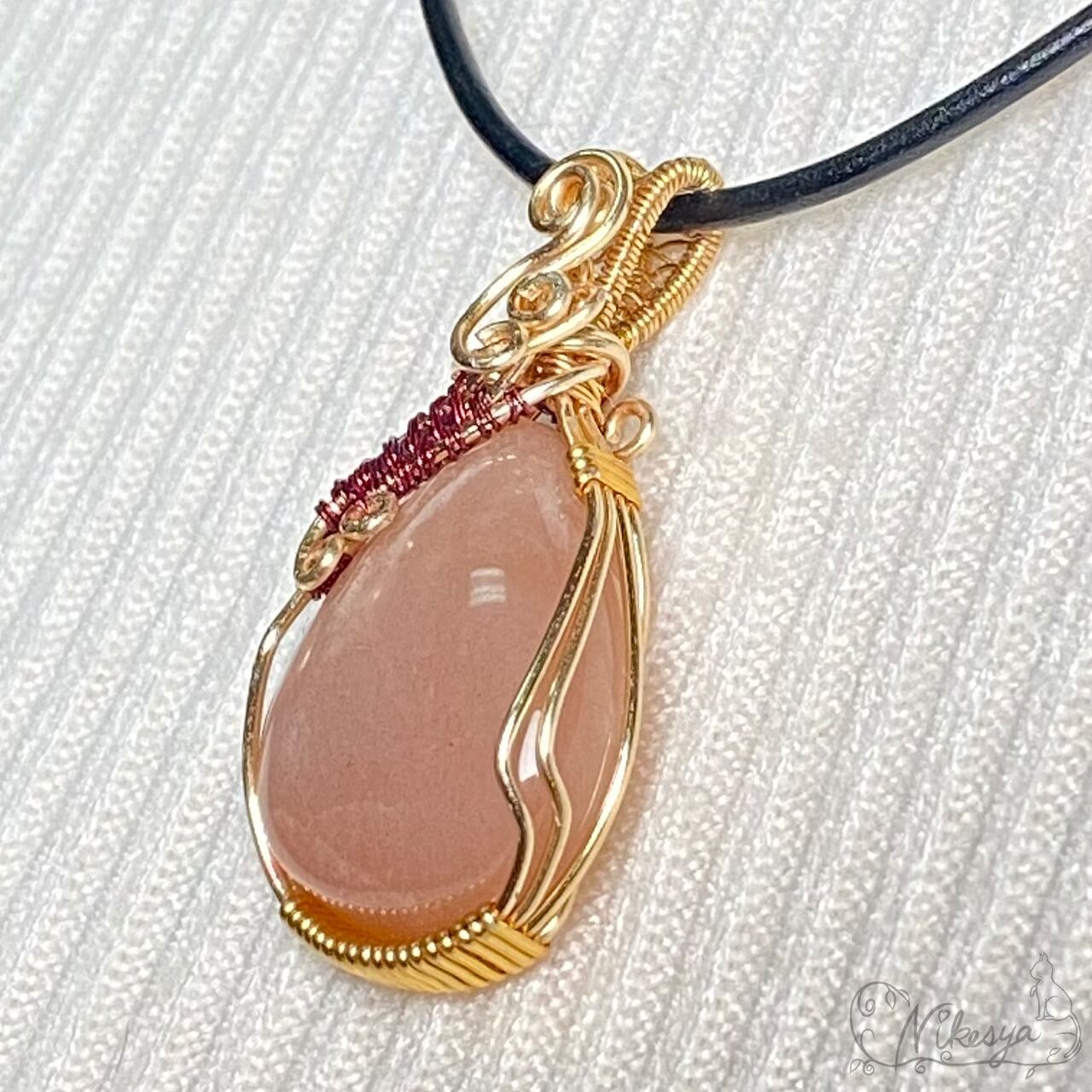 #ピーチムーンストーン #ワイヤーアクセサリー #ペンダントトップ #ムーンストーン #6月誕生石 #送料無料 #一点もの