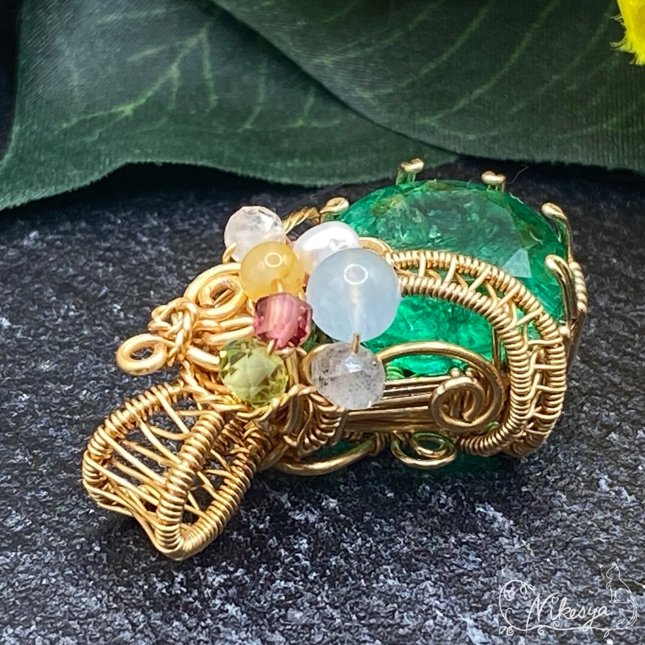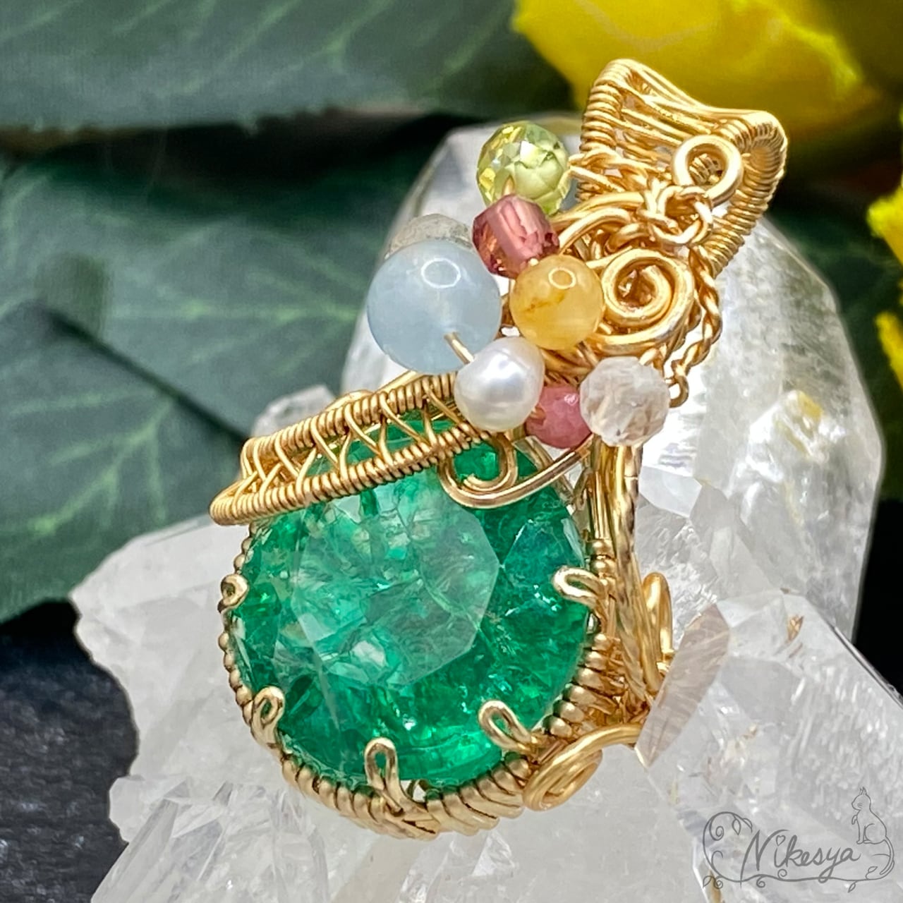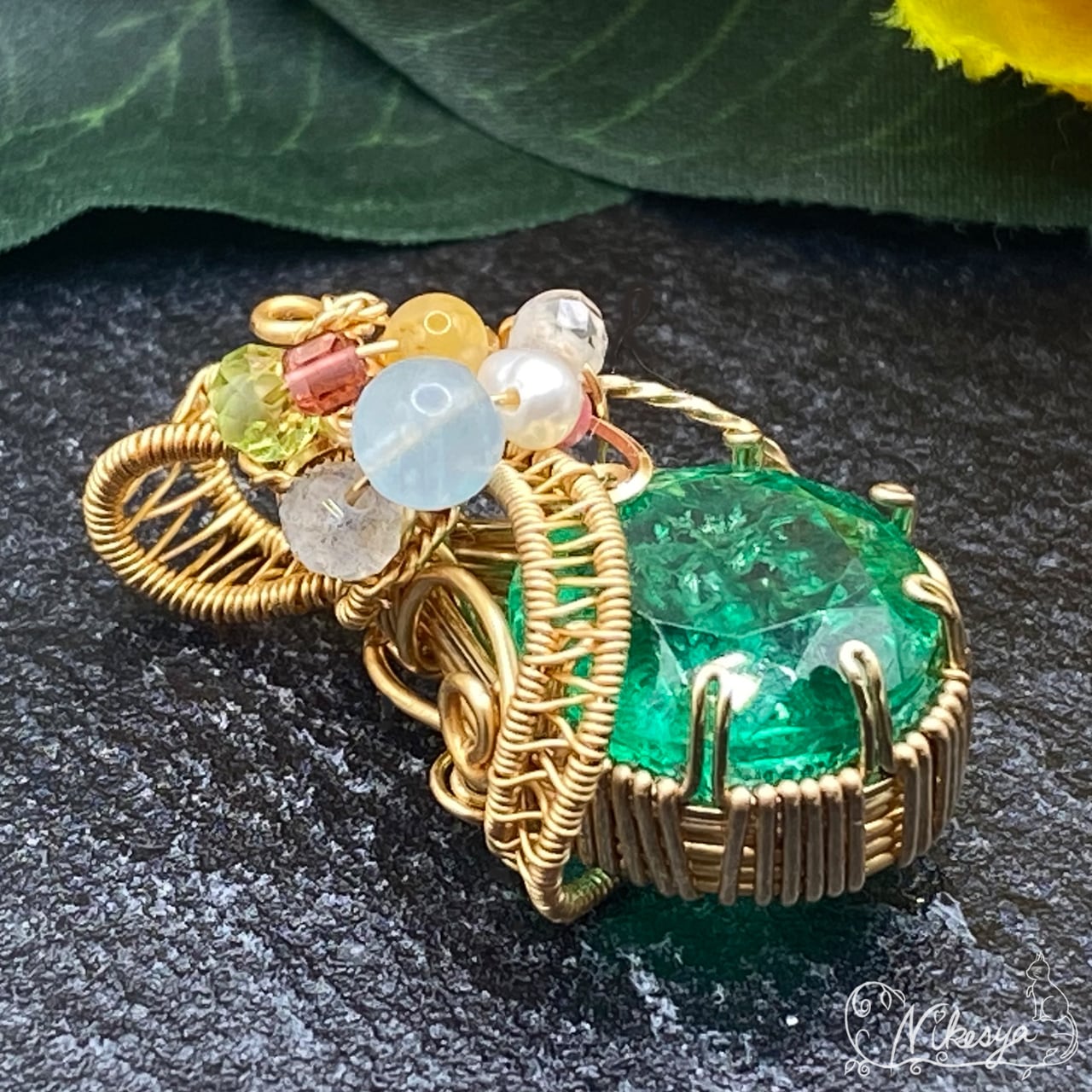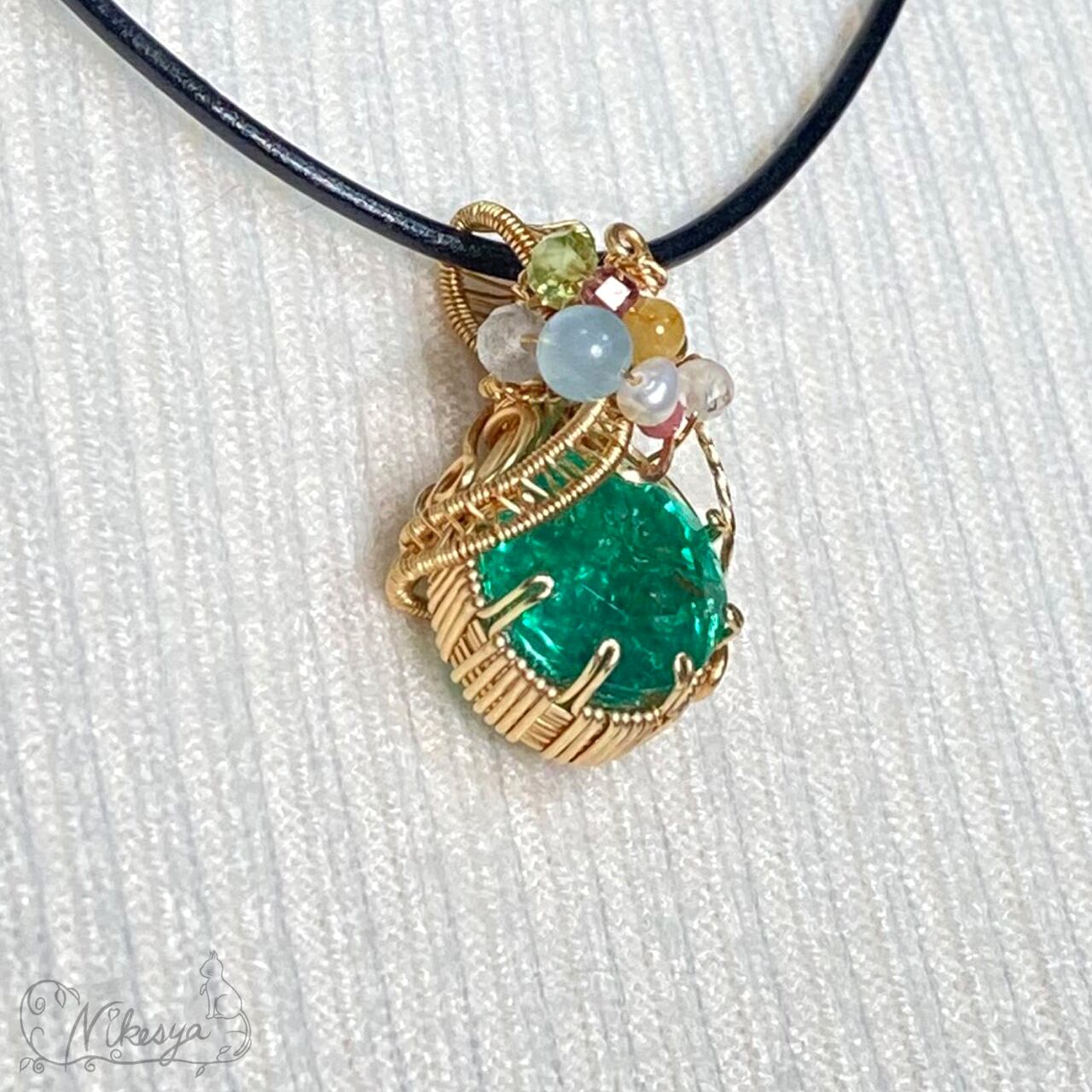 #エメラルド #ワイヤーアクセサリー #ペンダントトップ #14kgf #アマゾナイト #アクアマリン #一点もの #5月誕生石 #送料無料