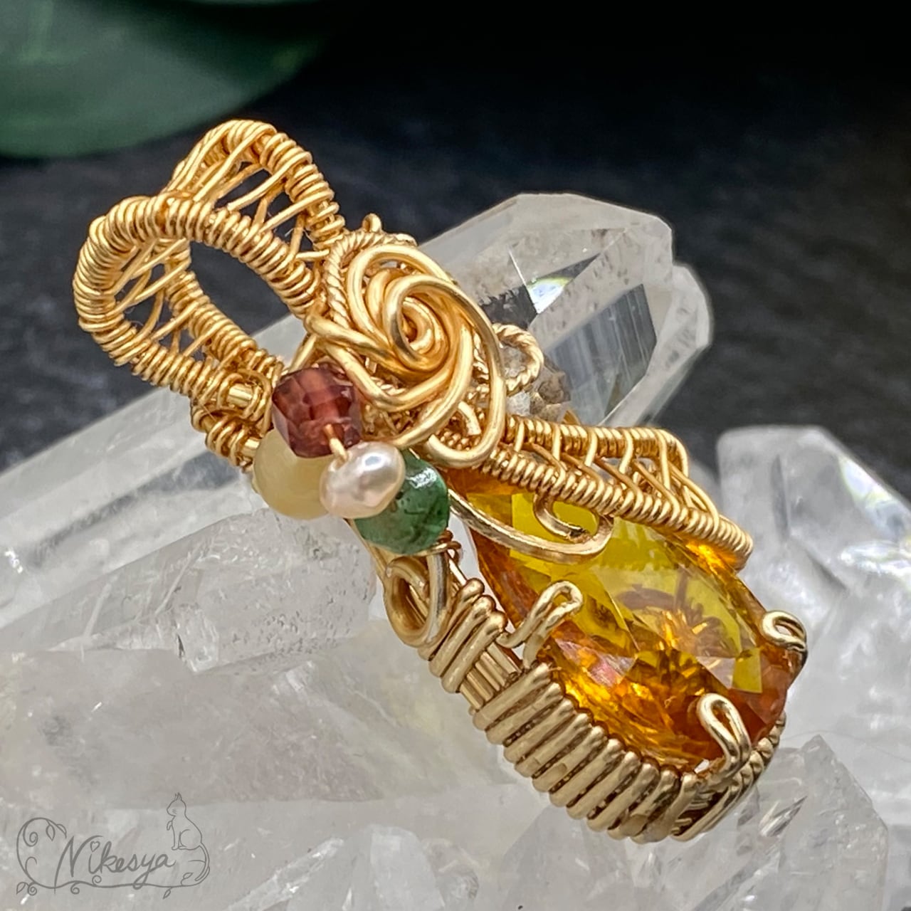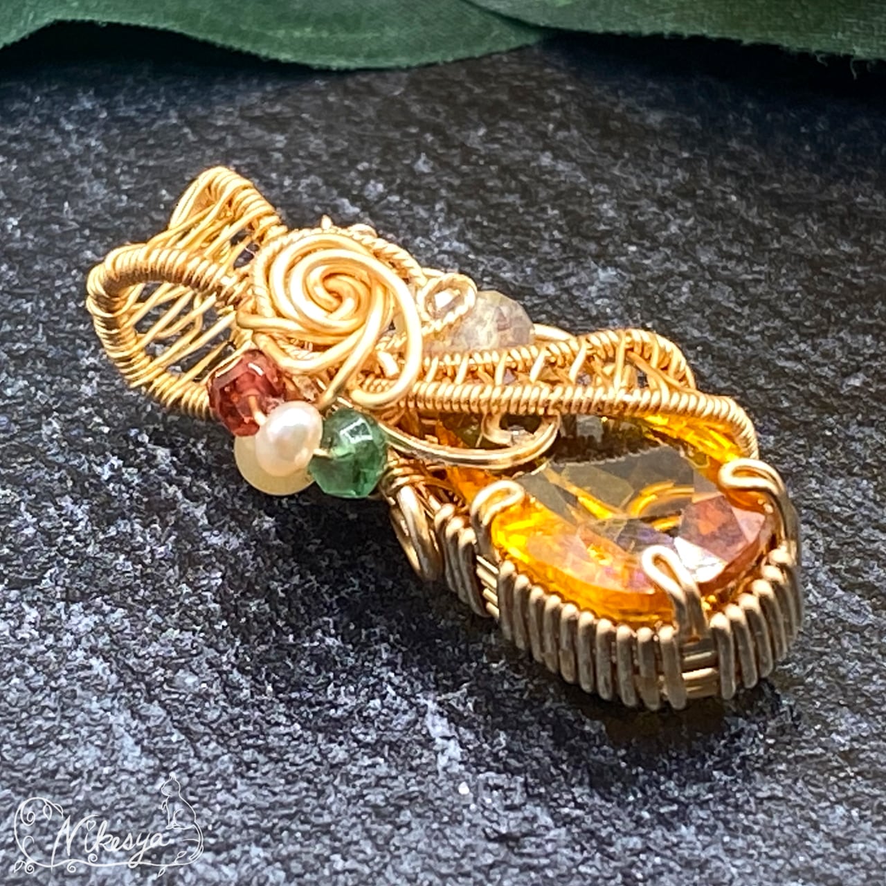 #イエローサファイア #ワイヤーアクセサリー #ペンダントトップ #14kgf #一点もの #サファイア #9月誕生石 #送料無料
