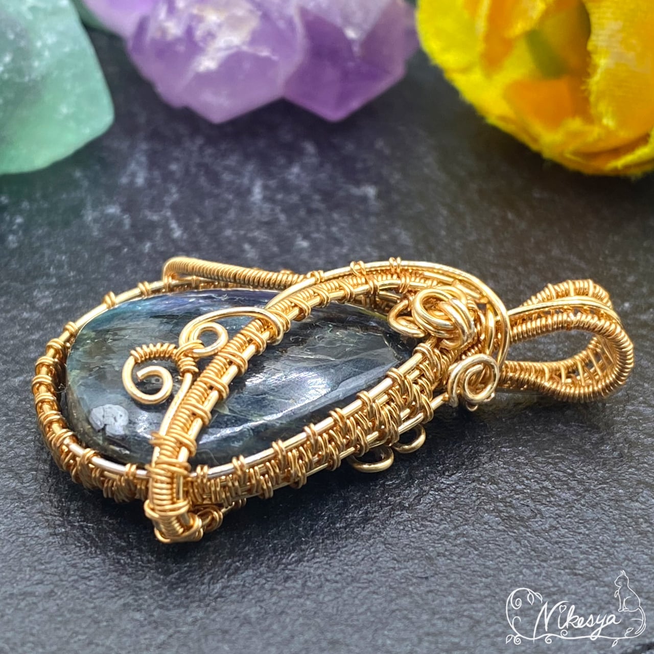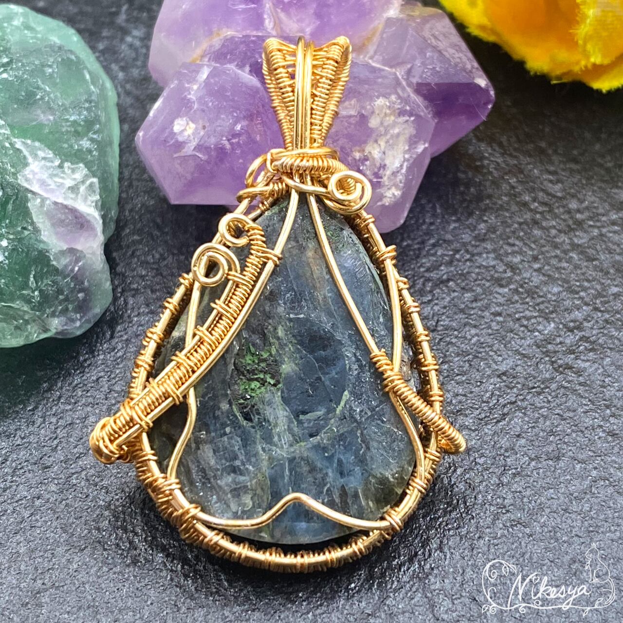 #カイヤナイト #ワイヤーアクセサリー #ペンダントトップ #オーシャンカイヤナイト #送料無料 #一点もの
