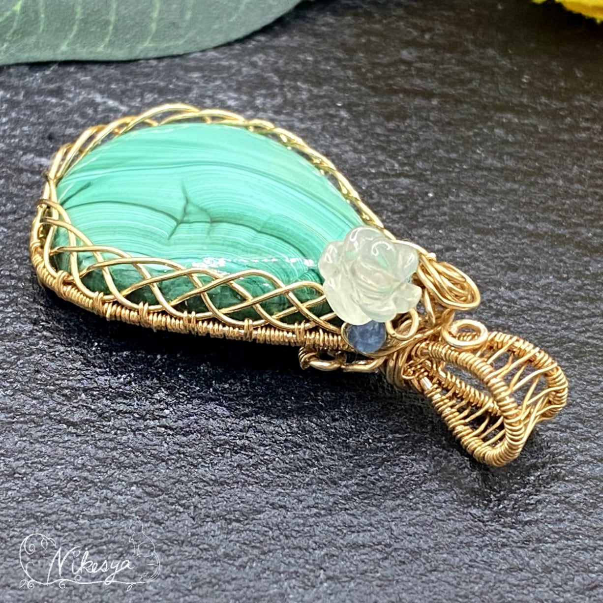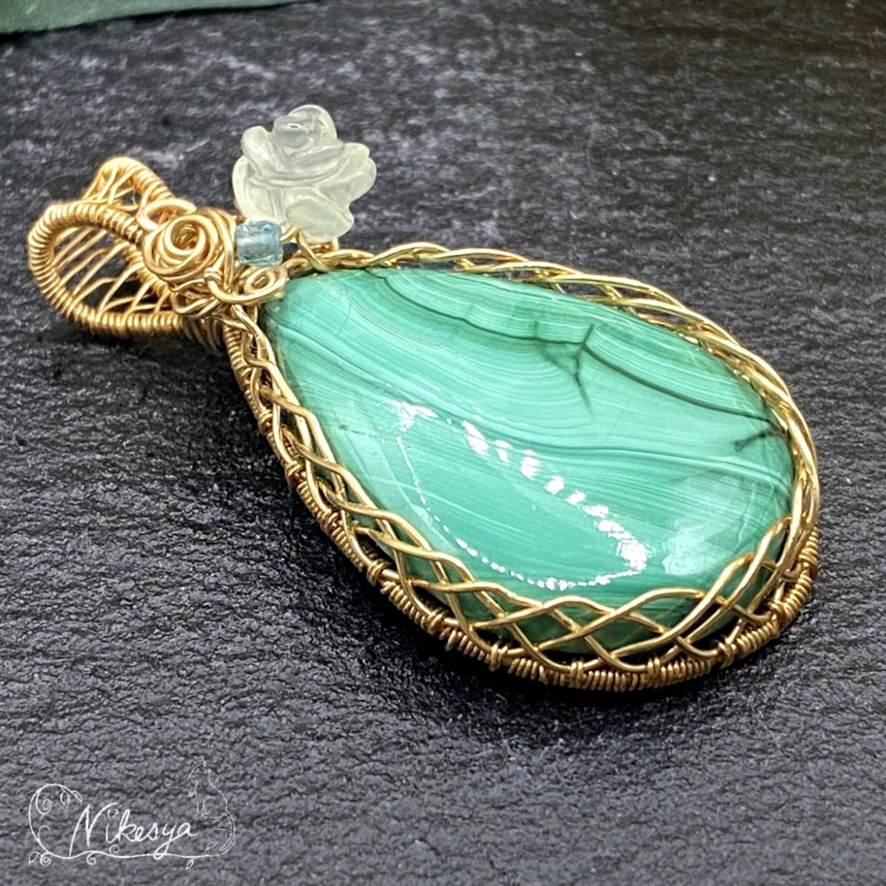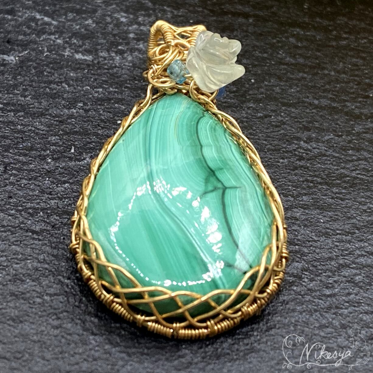 #マラカイト #プレナイト #薔薇 #ワイヤーアクセサリー #ペンダントトップ #一点もの #送料無料