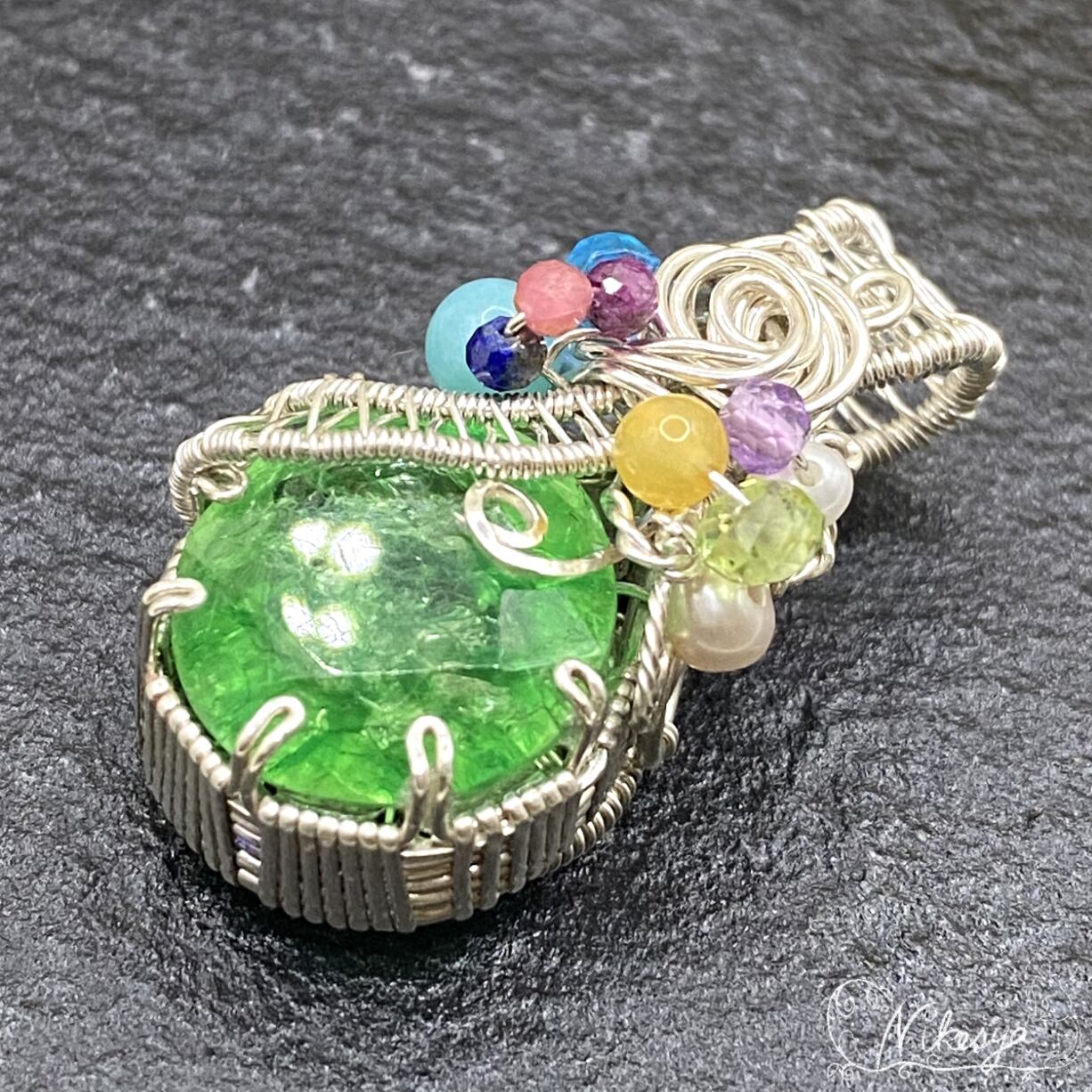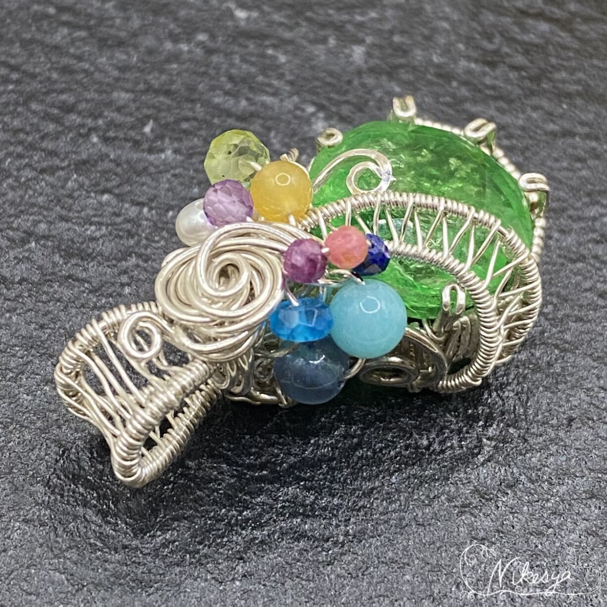 #エメラルド #ワイヤーアクセサリー #ペンダントトップ #アマゾナイト #Silver999 #Silver925 #金属アレルギー対応 #5月誕生石 #送料無料