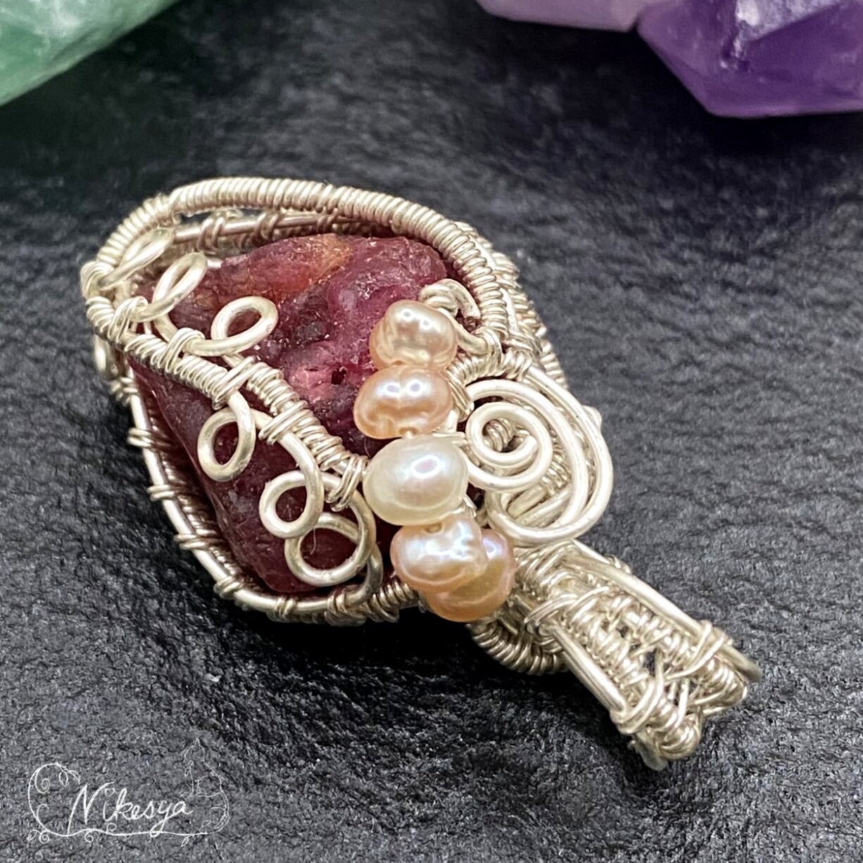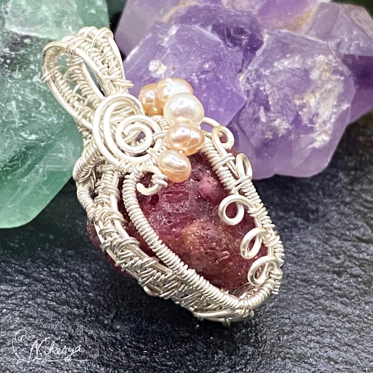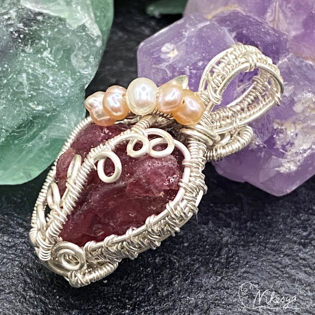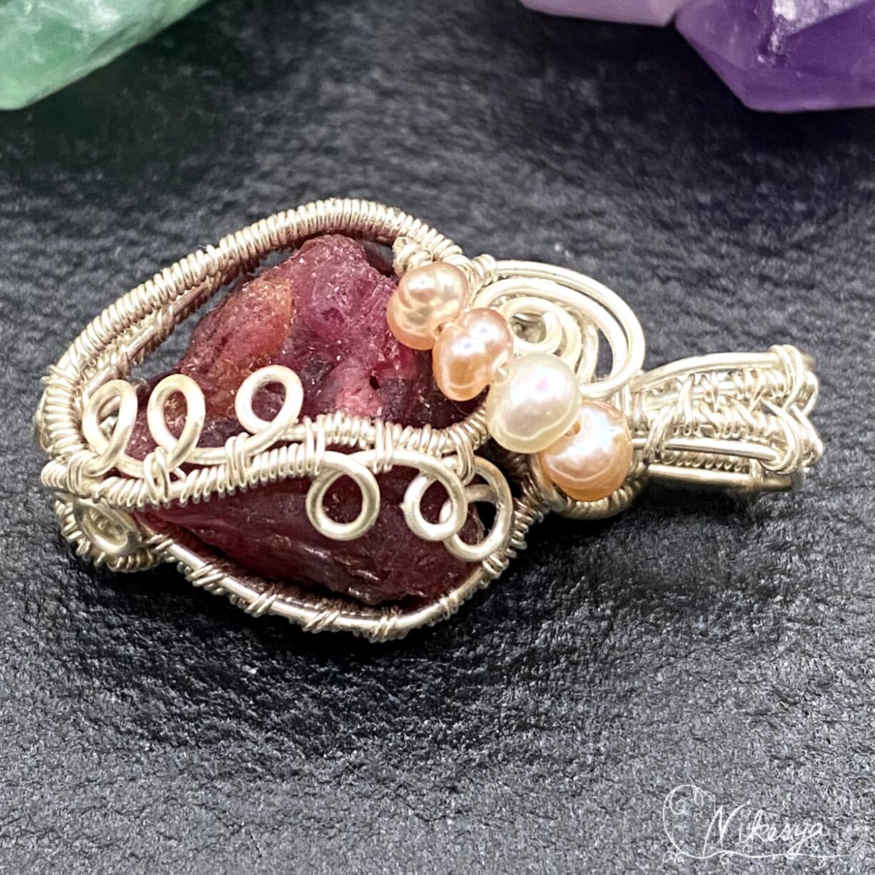 #レッドスピネル原石 #ハンドメイドアクセサリー #ペンダントトップ #ワイヤーアクセサリー #アーティスティックワイヤー #一点もの #送料無料