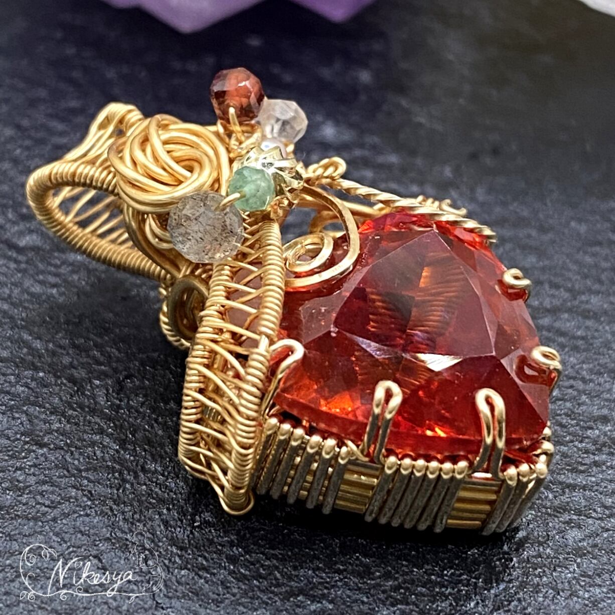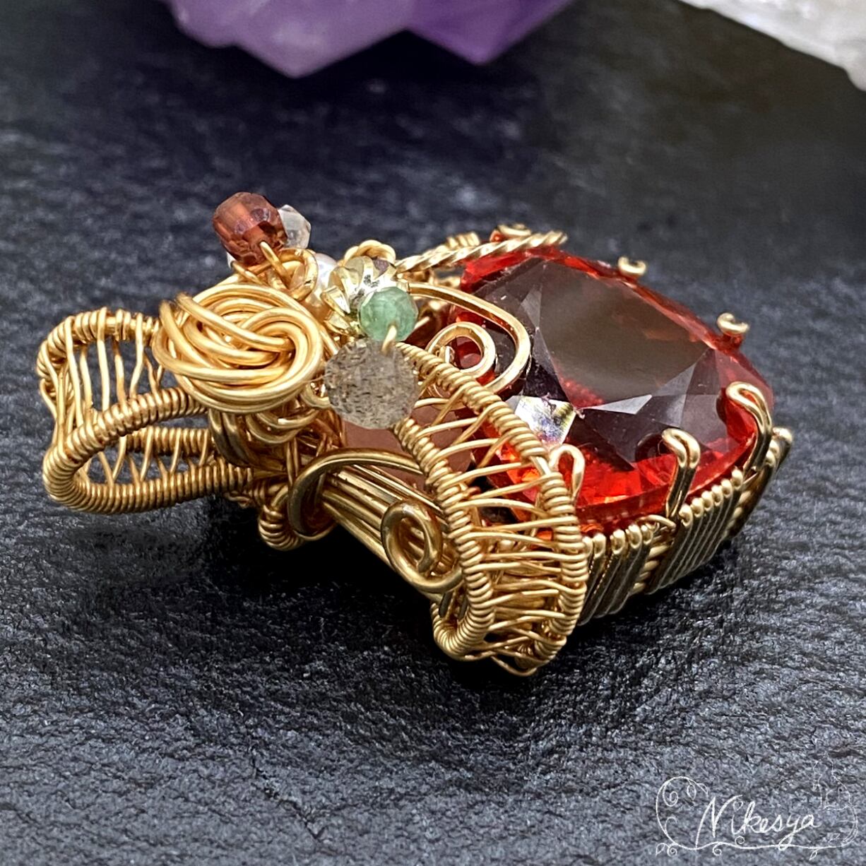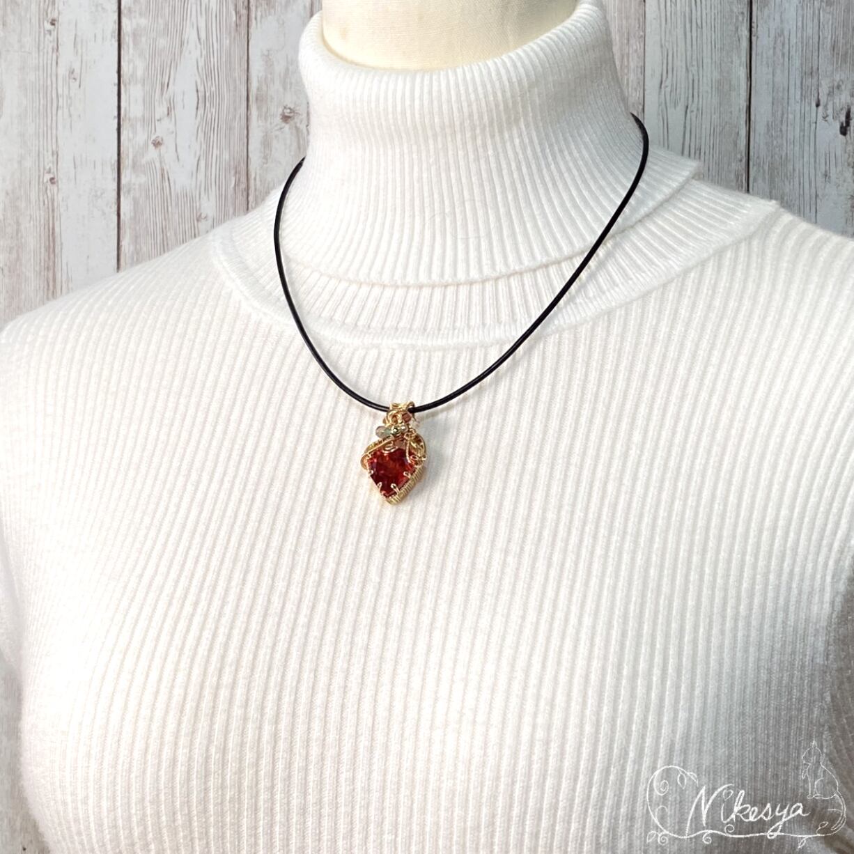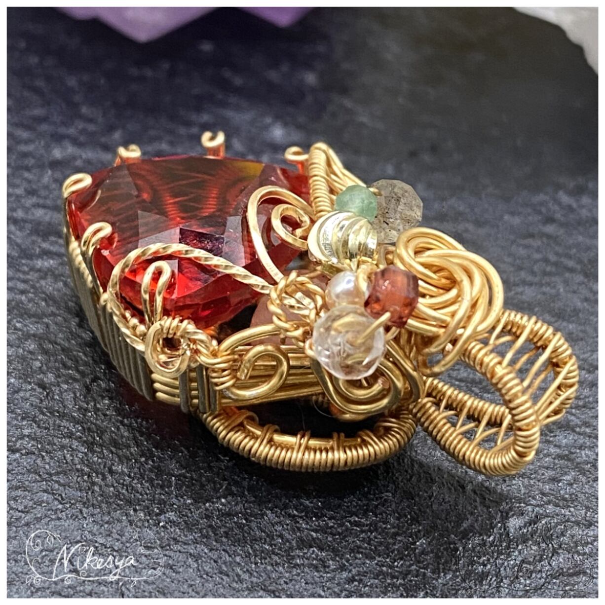 14KGFの繊細なワイヤーで丁寧にラップされたペンダントトップは、