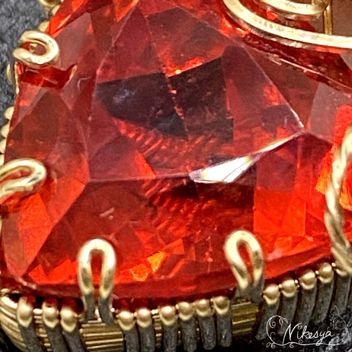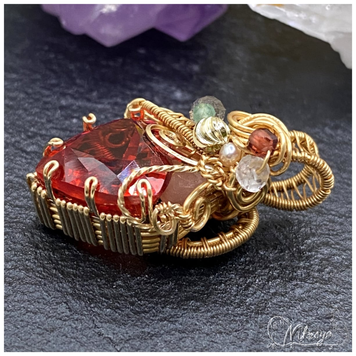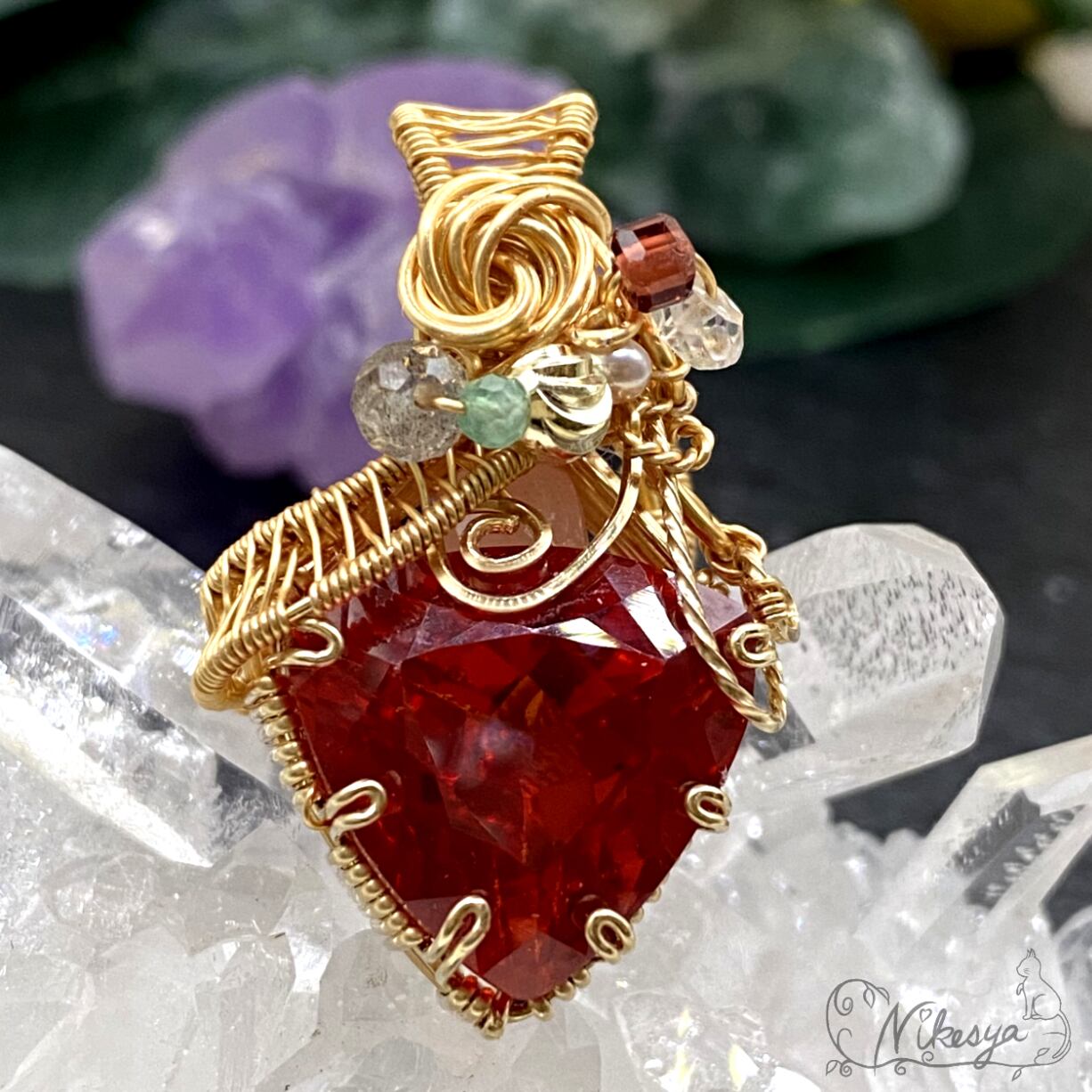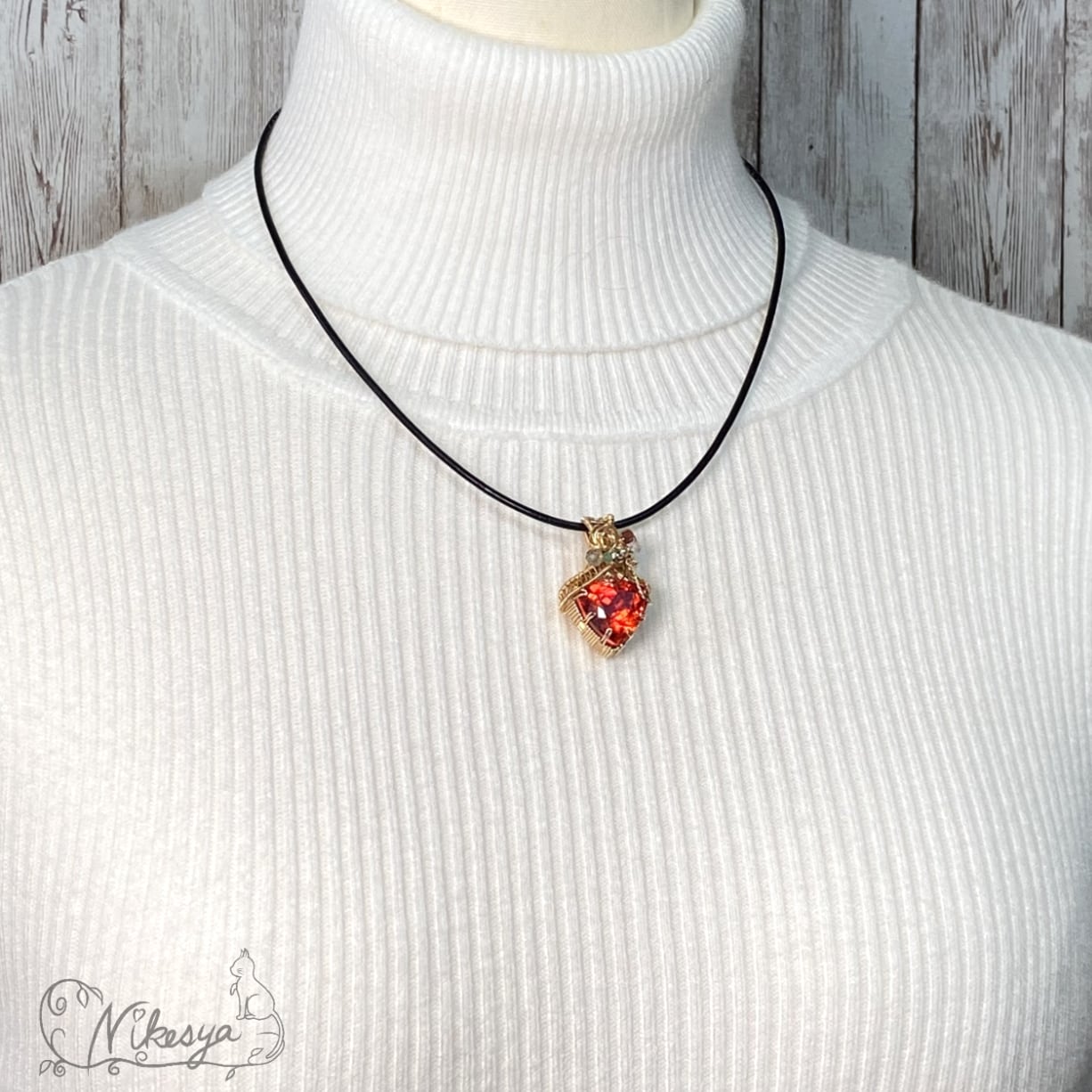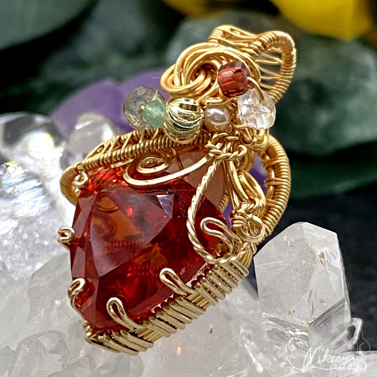14KGFの繊細なワイヤーで丁寧にラップされたペンダントトップは、