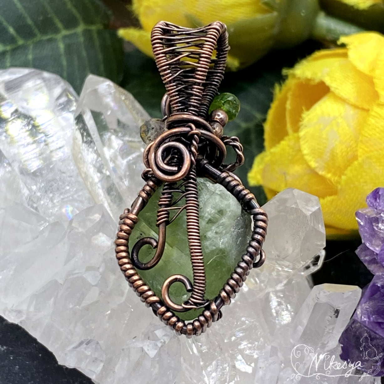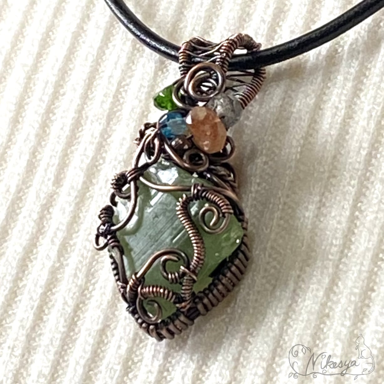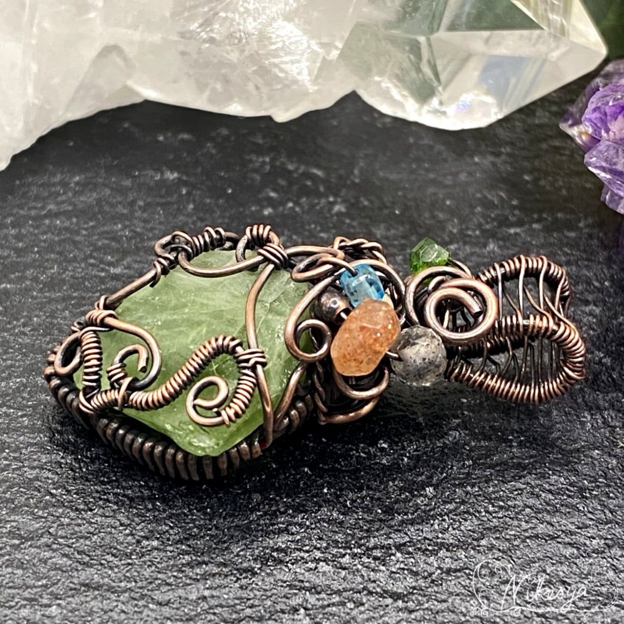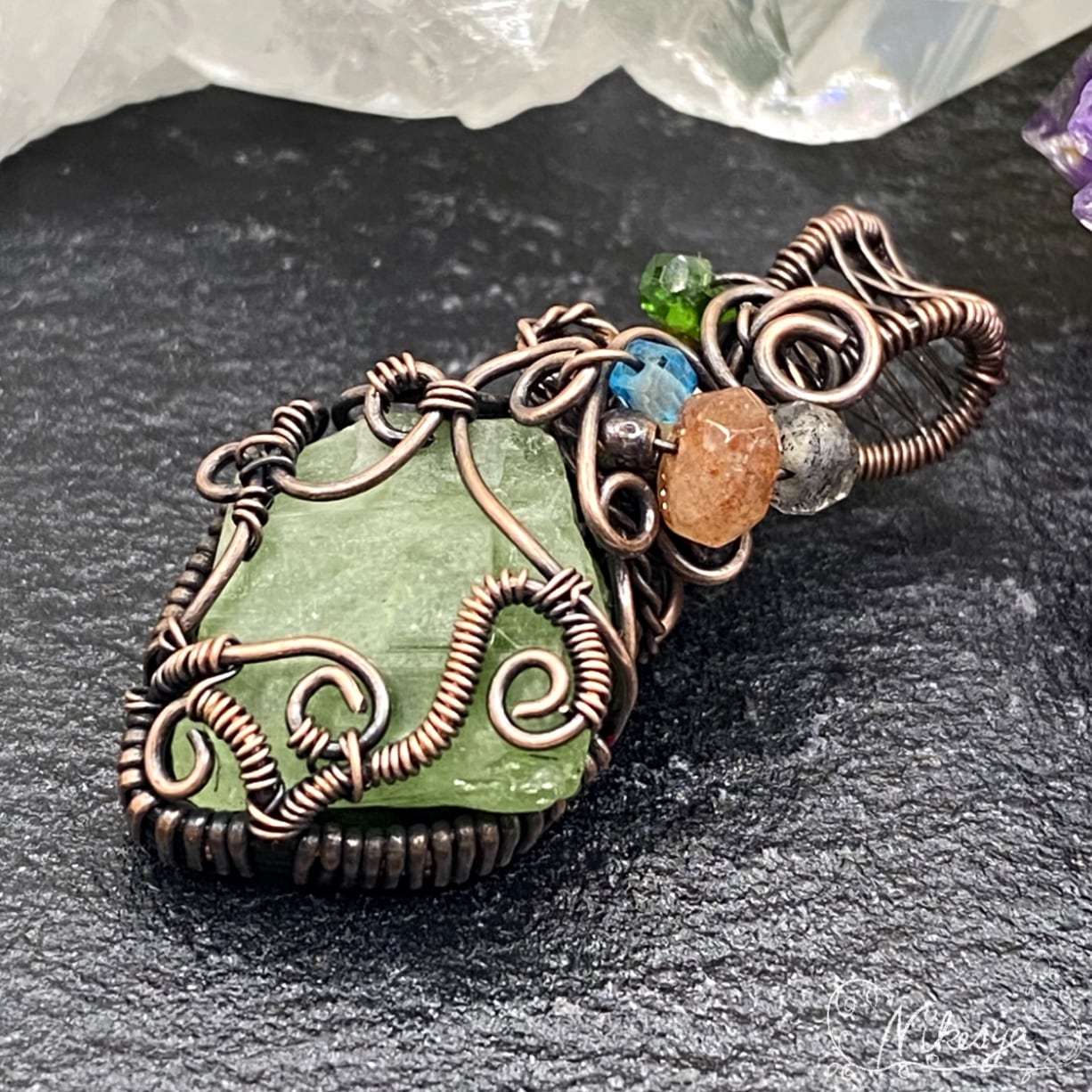 #ペリドット原石 #ペリドット #ペンダントトップ #ワイヤーアクセサリー #銅ワイヤー #一点もの #8月誕生石