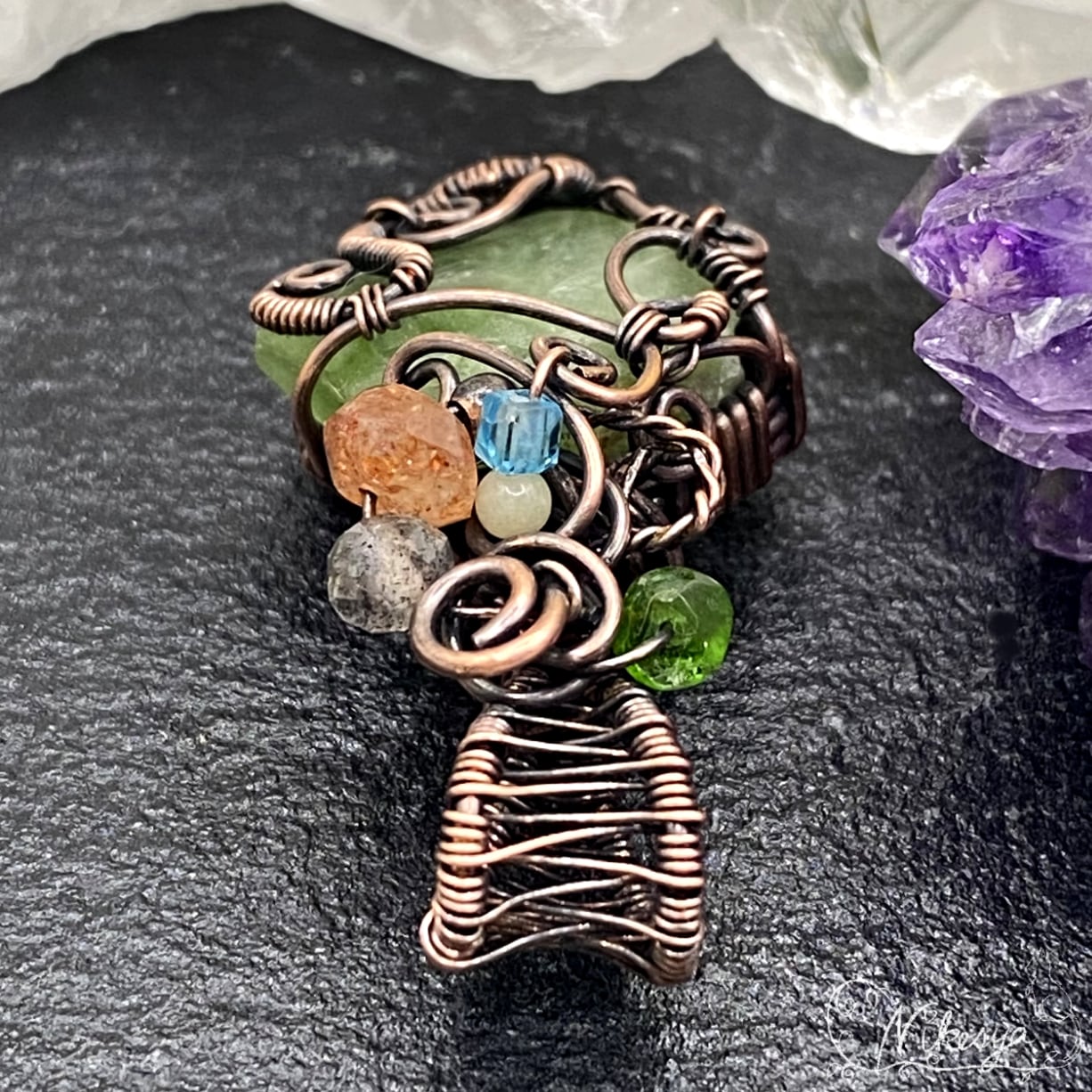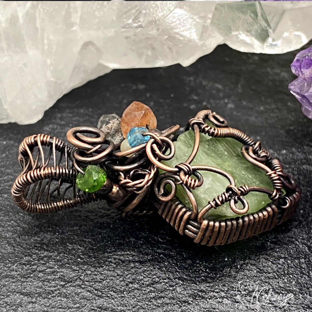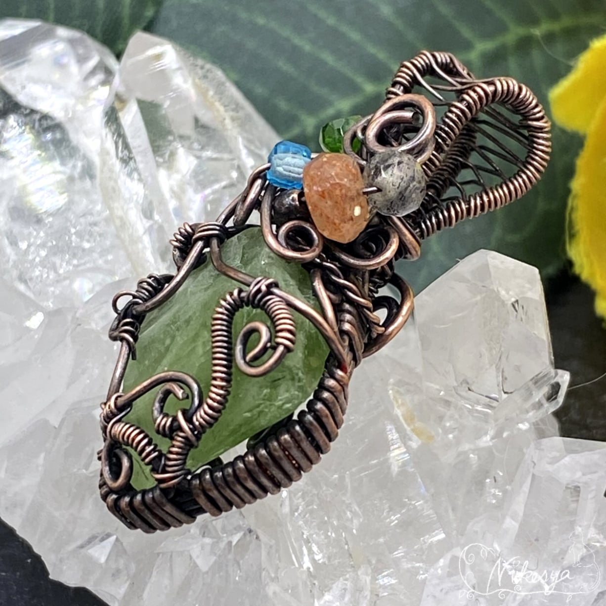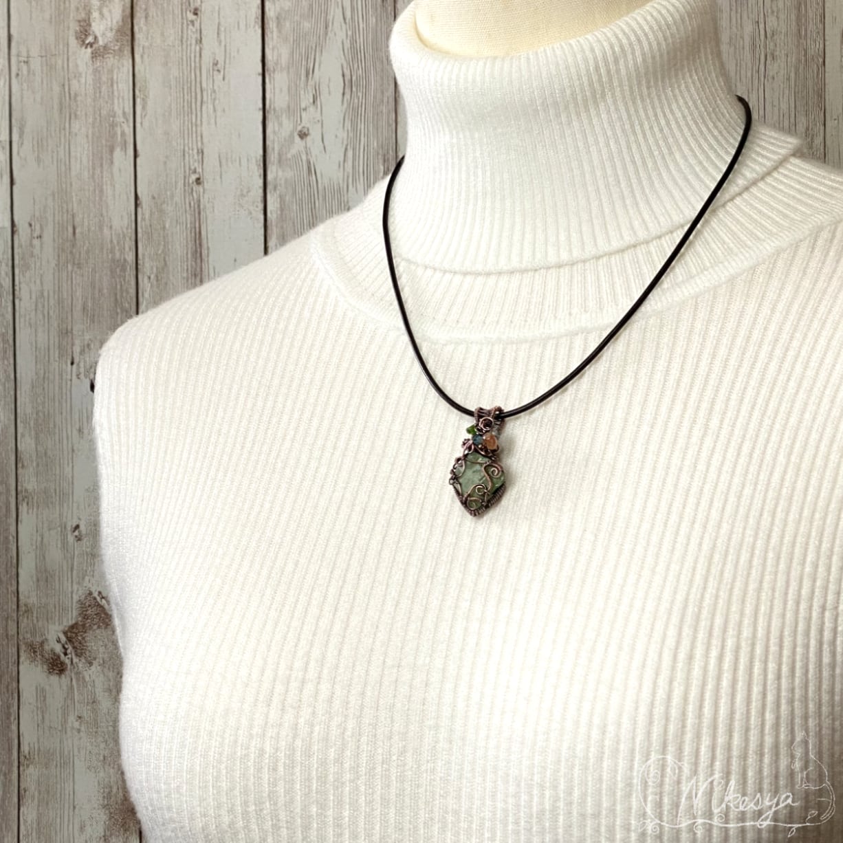#ペリドット原石 #ペリドット #ペンダントトップ #ワイヤーアクセサリー #銅ワイヤー #一点もの #8月誕生石