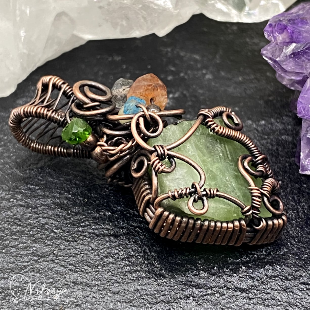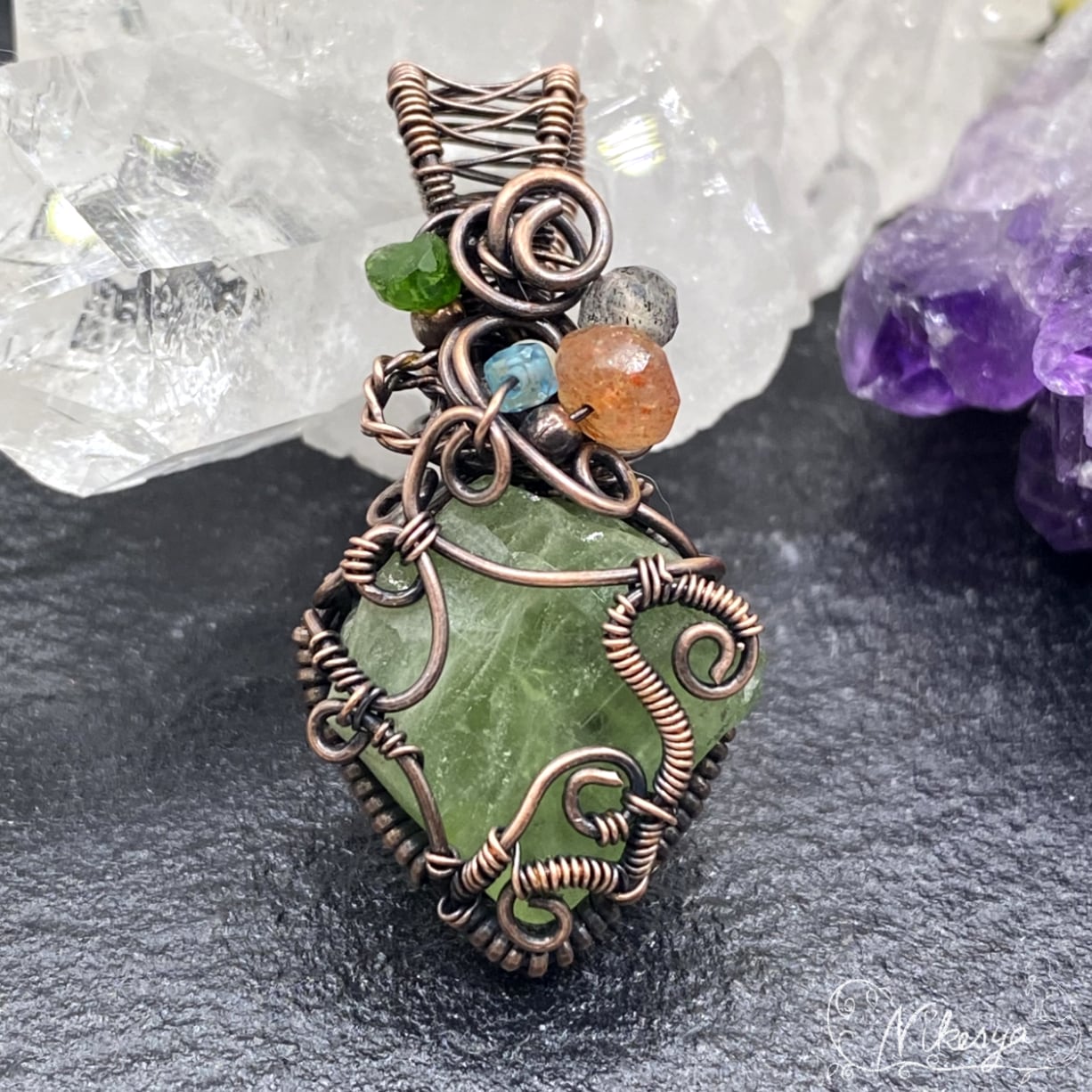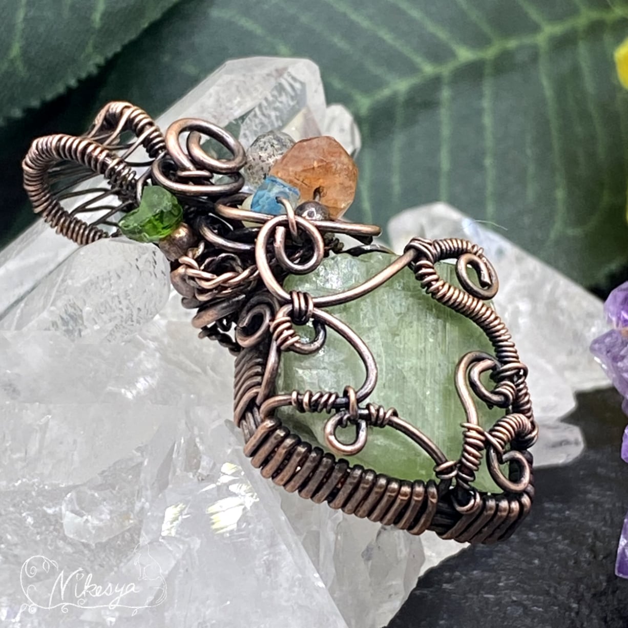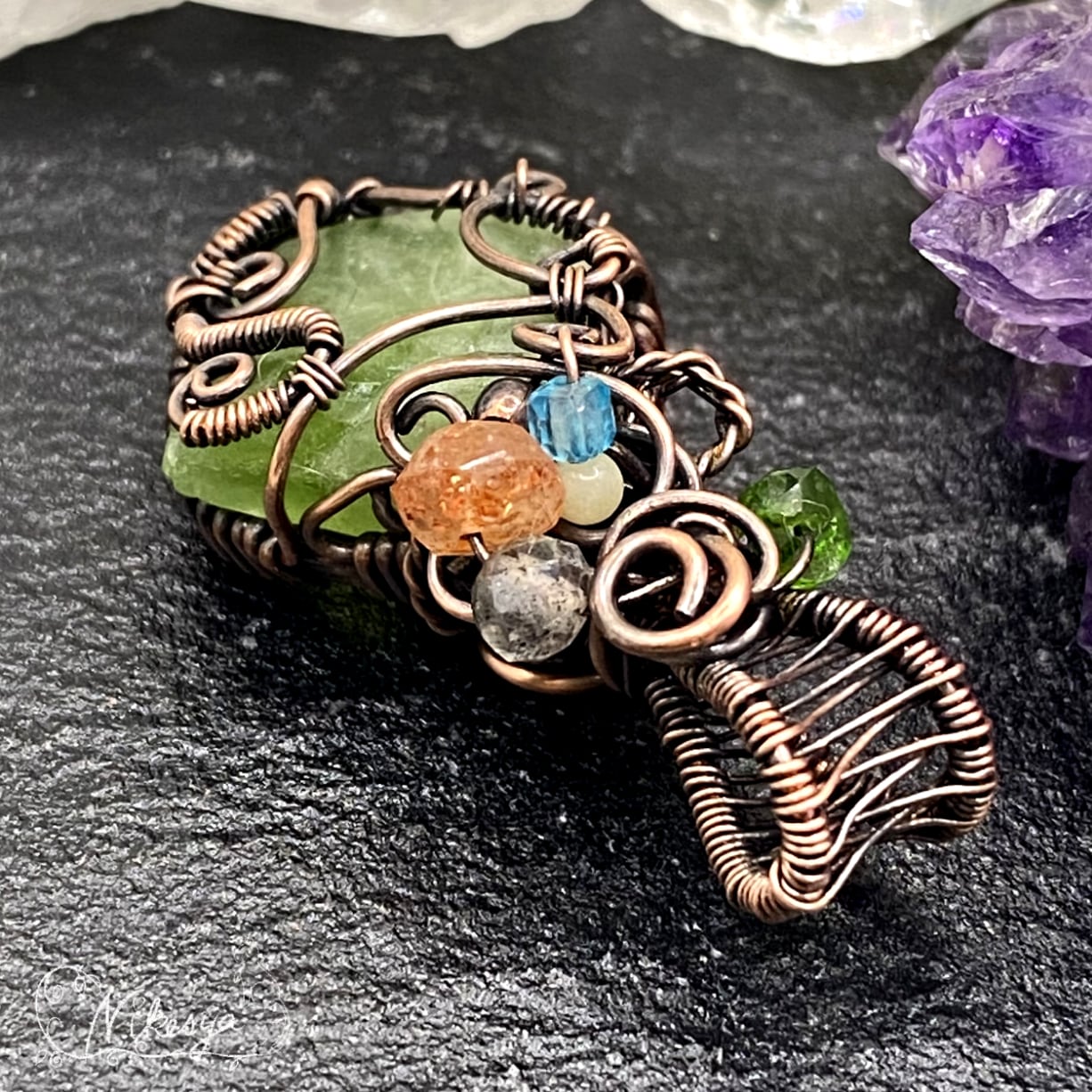 #ペリドット原石 #ペリドット #ペンダントトップ #ワイヤーアクセサリー #銅ワイヤー #一点もの #8月誕生石