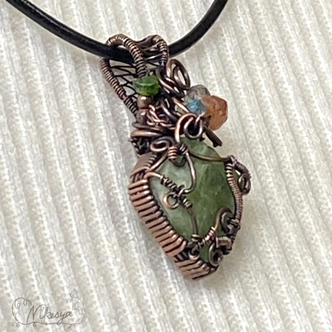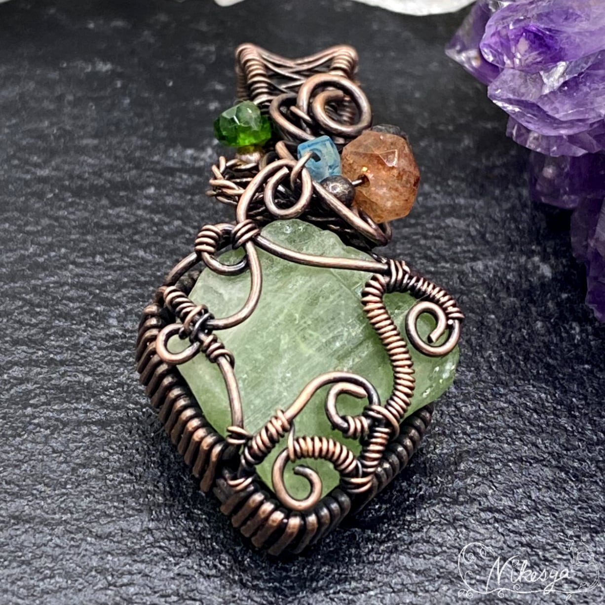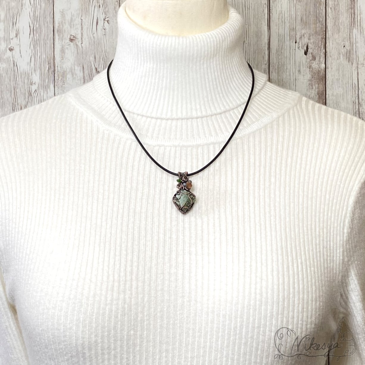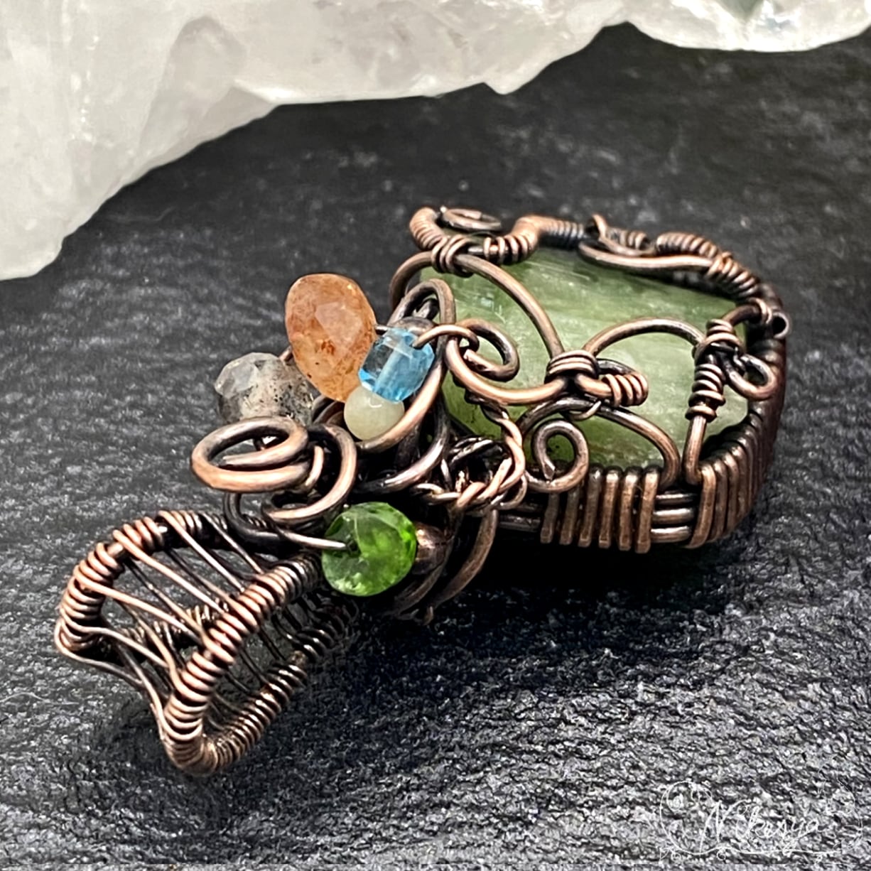 #ペリドット原石 #ペリドット #ペンダントトップ #ワイヤーアクセサリー #銅ワイヤー #一点もの #8月誕生石