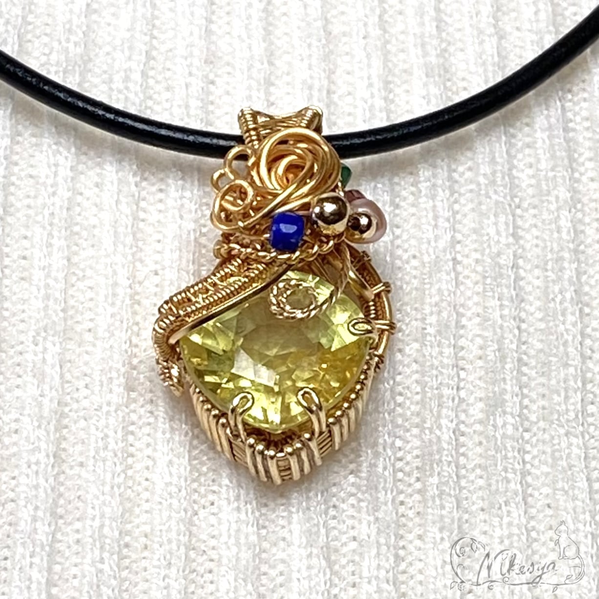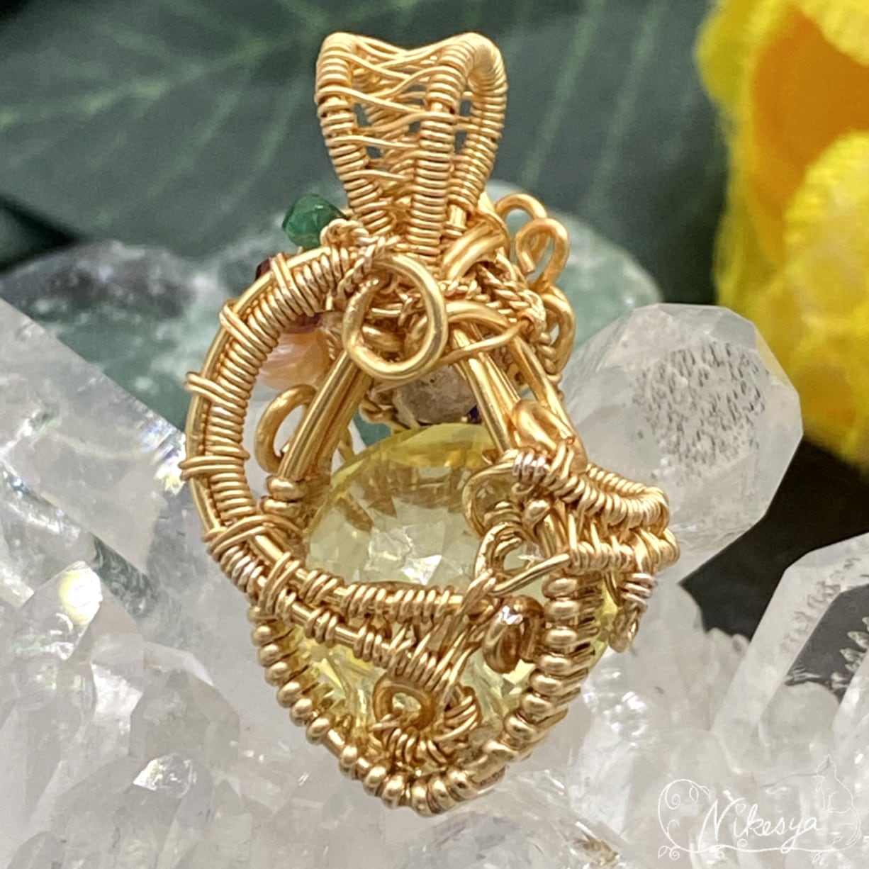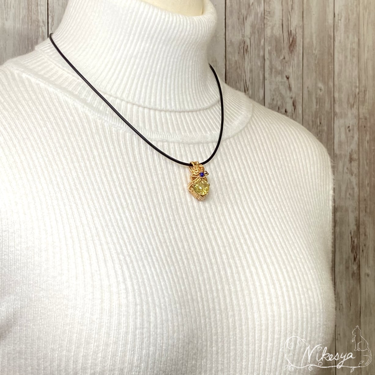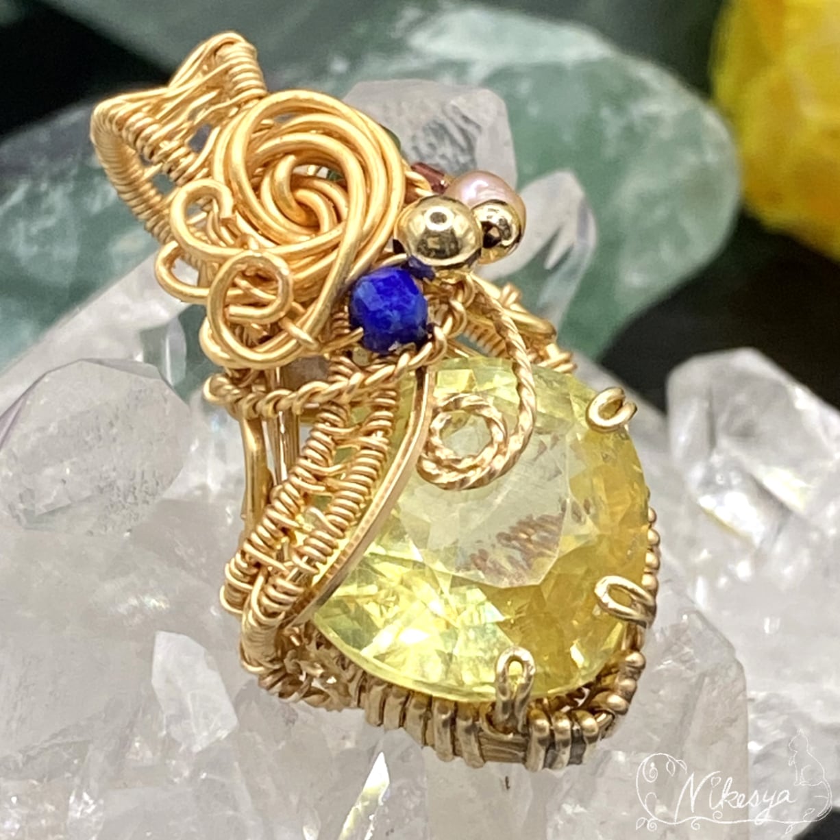 #イエローサファイア #サファイア #ワイヤーアクセサリー #ペンダントトップ #14kgfワイヤー #一点もの #9月誕生石 #送料無料
