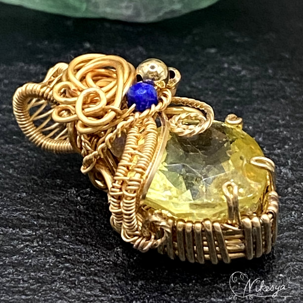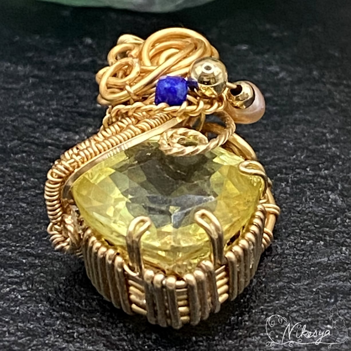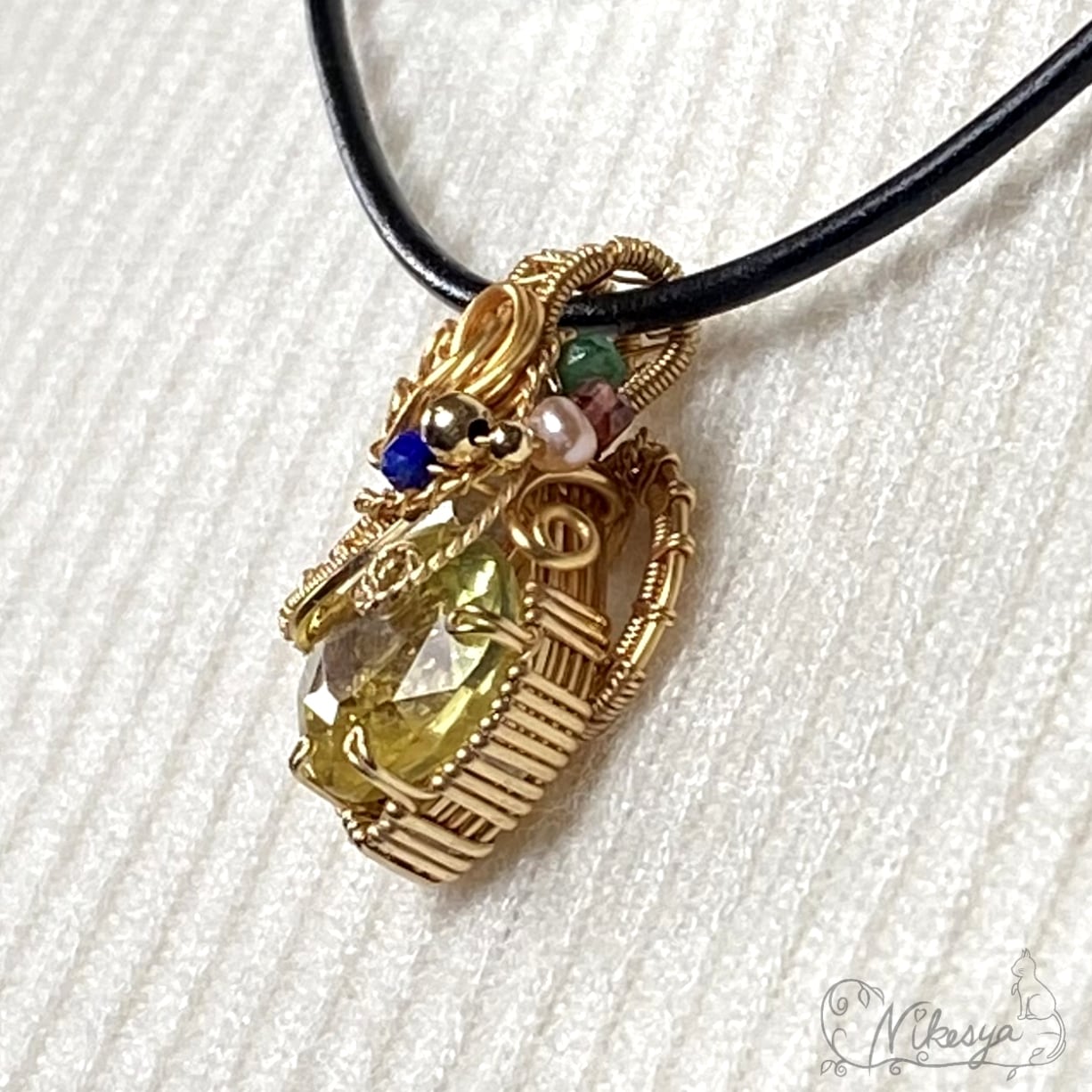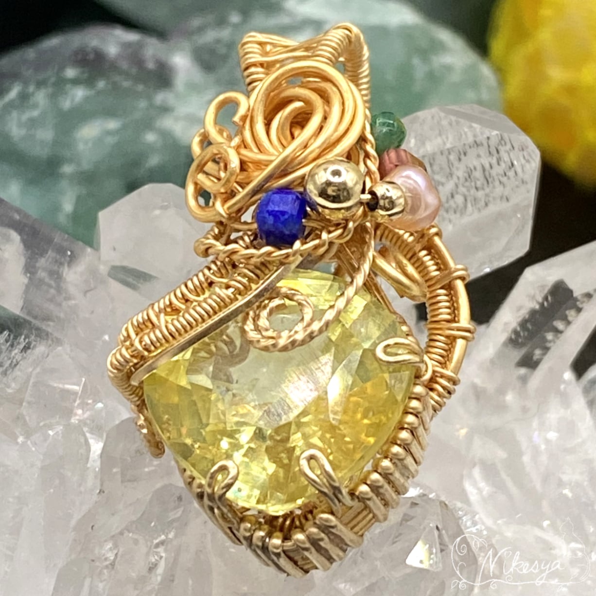 #イエローサファイア #サファイア #ワイヤーアクセサリー #ペンダントトップ #14kgfワイヤー #一点もの #9月誕生石 #送料無料