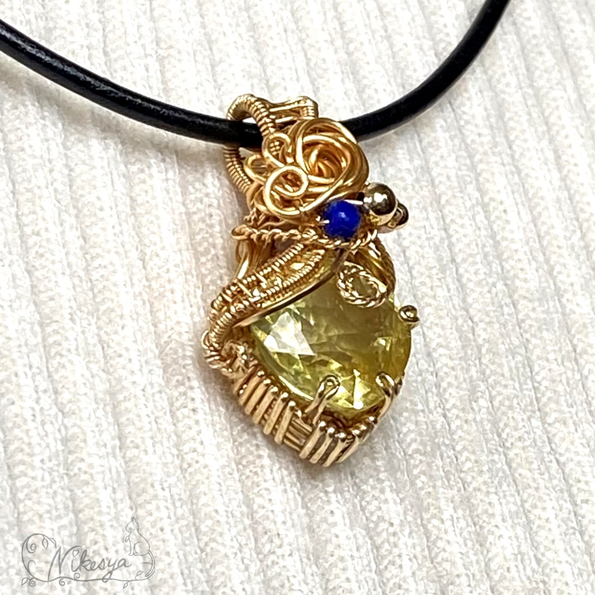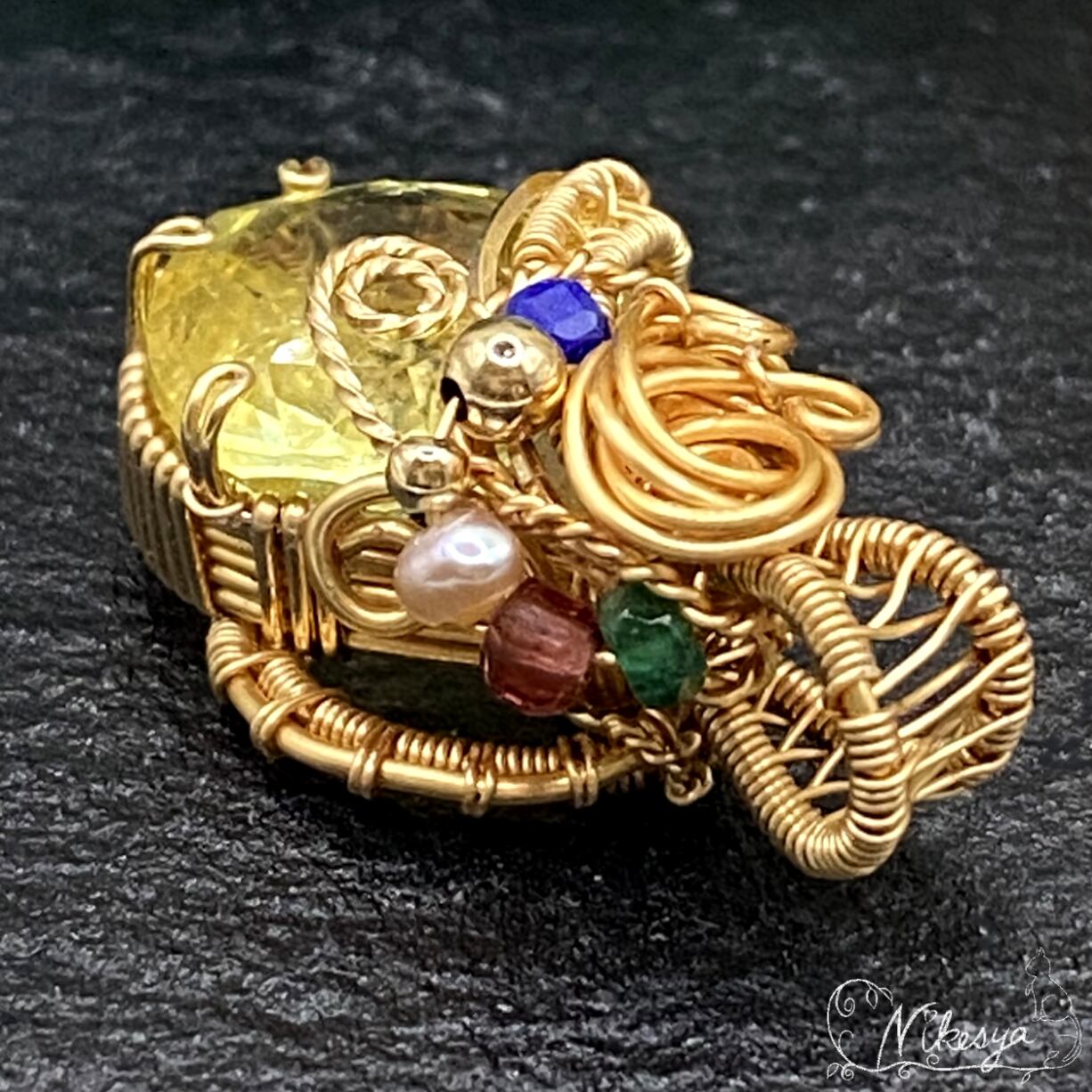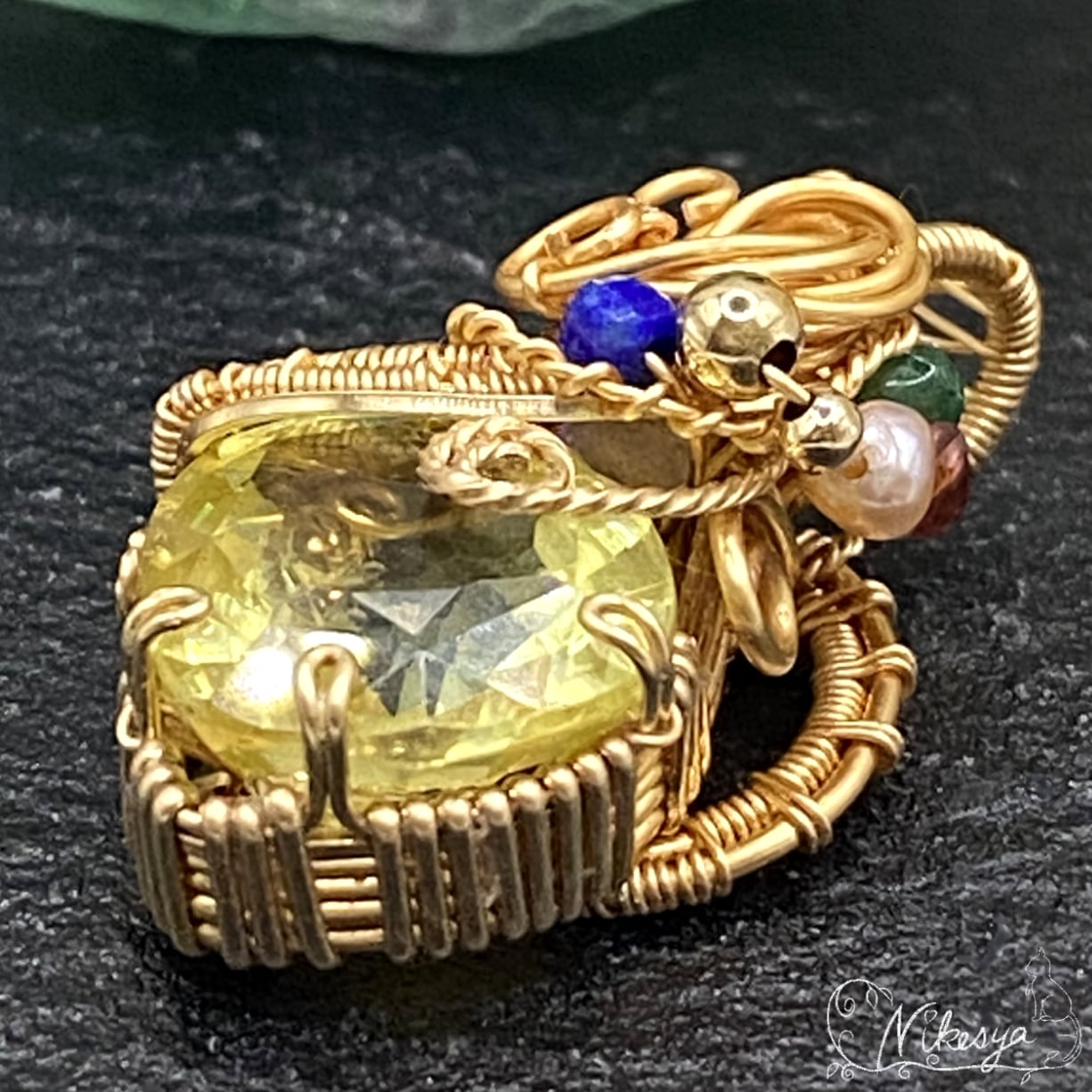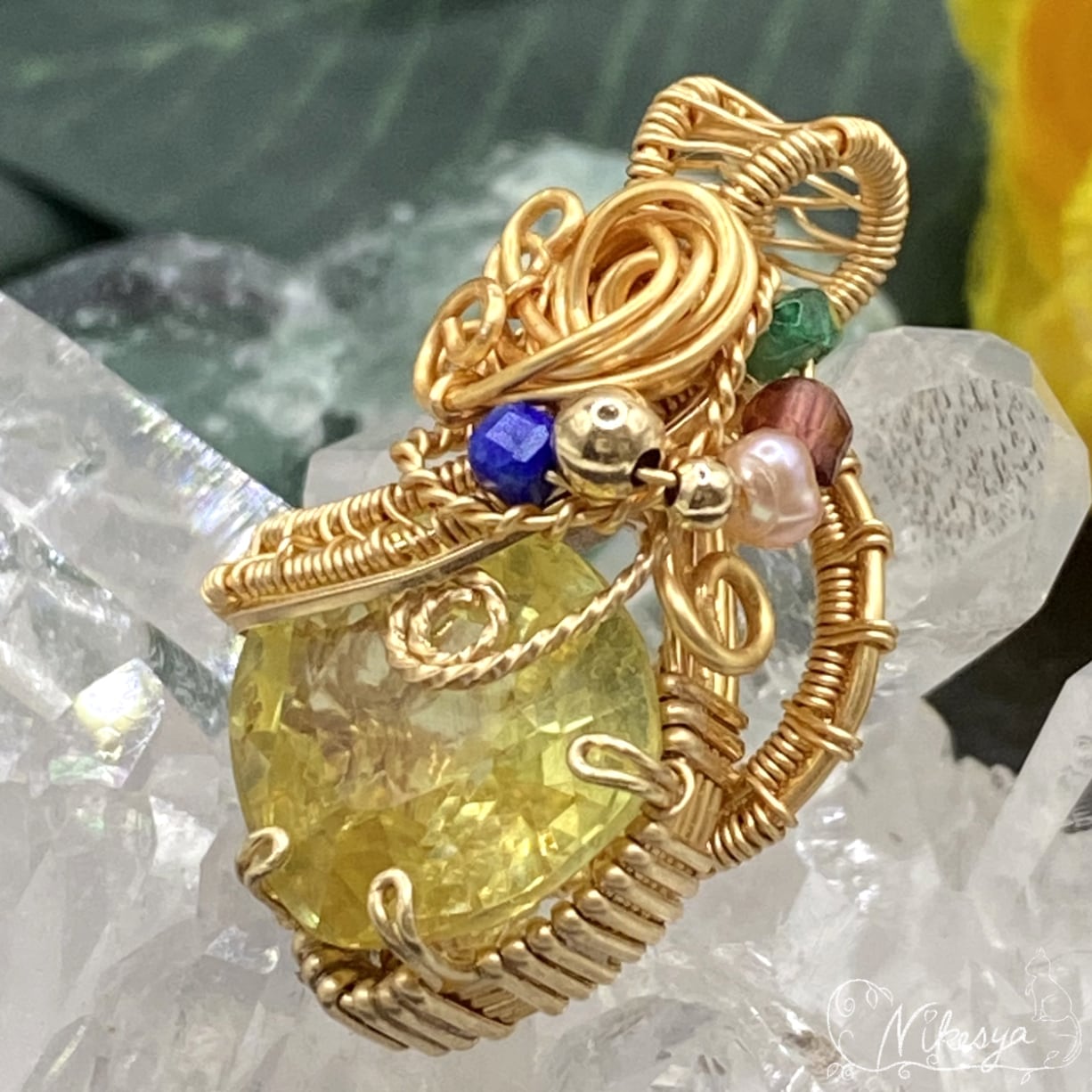 #イエローサファイア #サファイア #ワイヤーアクセサリー #ペンダントトップ #14kgfワイヤー #一点もの #9月誕生石 #送料無料