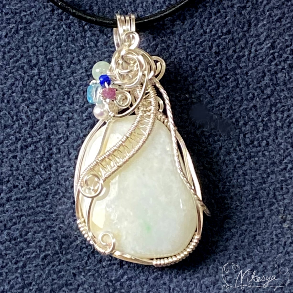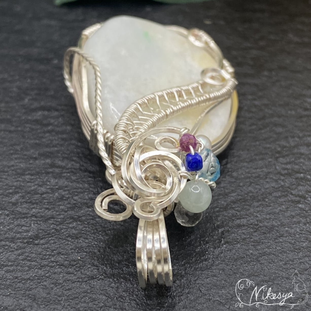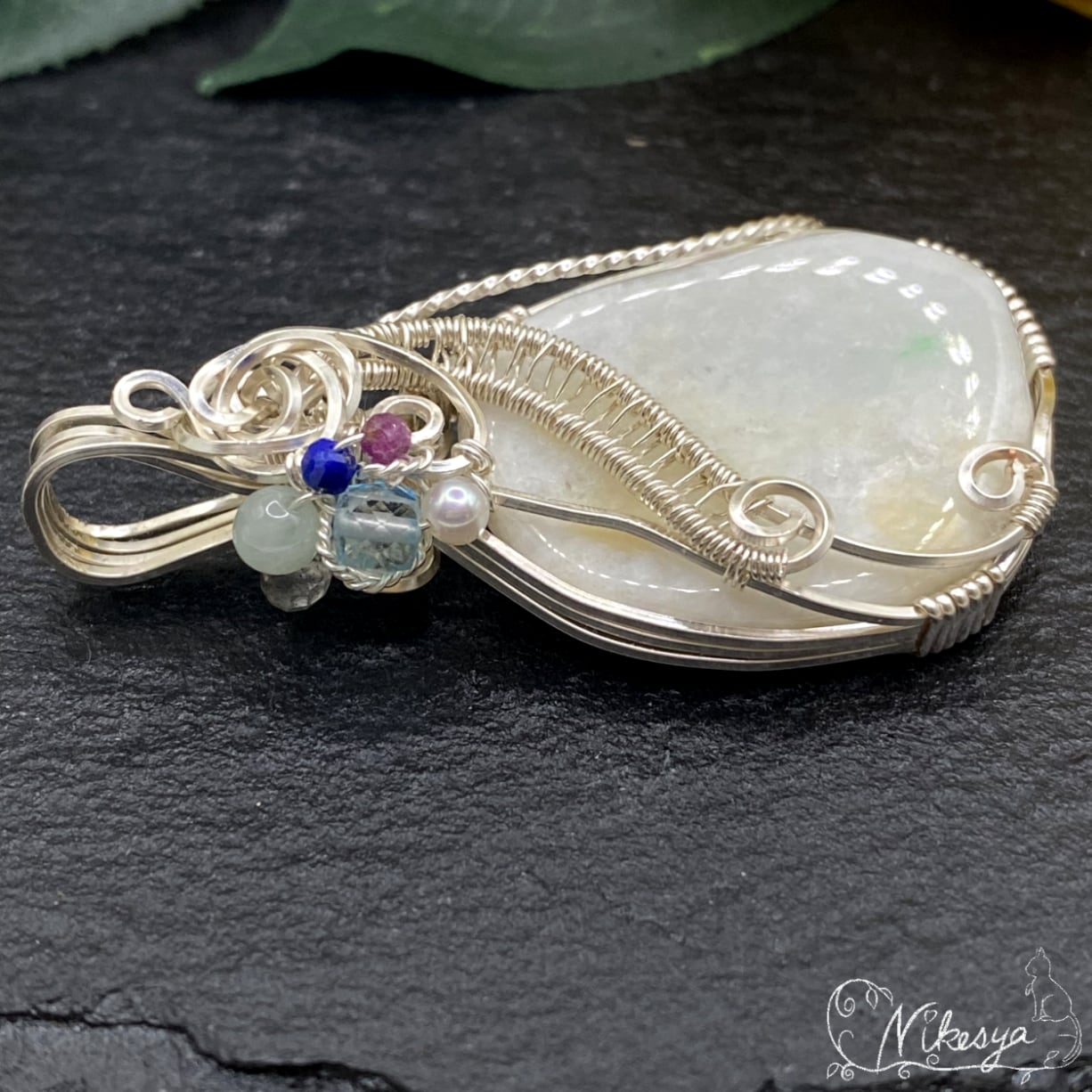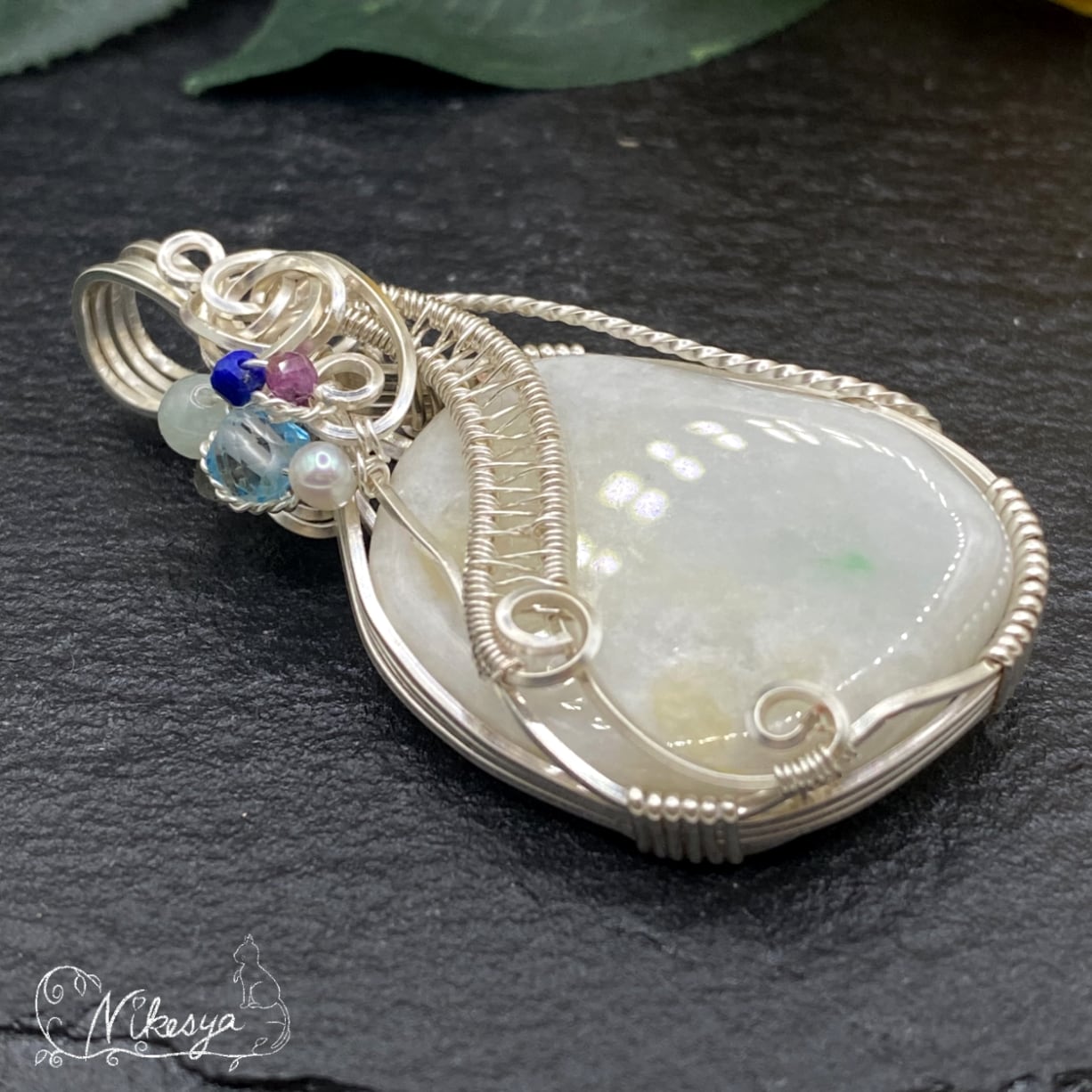 #ミャンマーヒスイ #ワイヤーアクセサリー #ペンダントトップ #ラピスラズリ #ブルーカラートパーズ #一点もの #送料無料