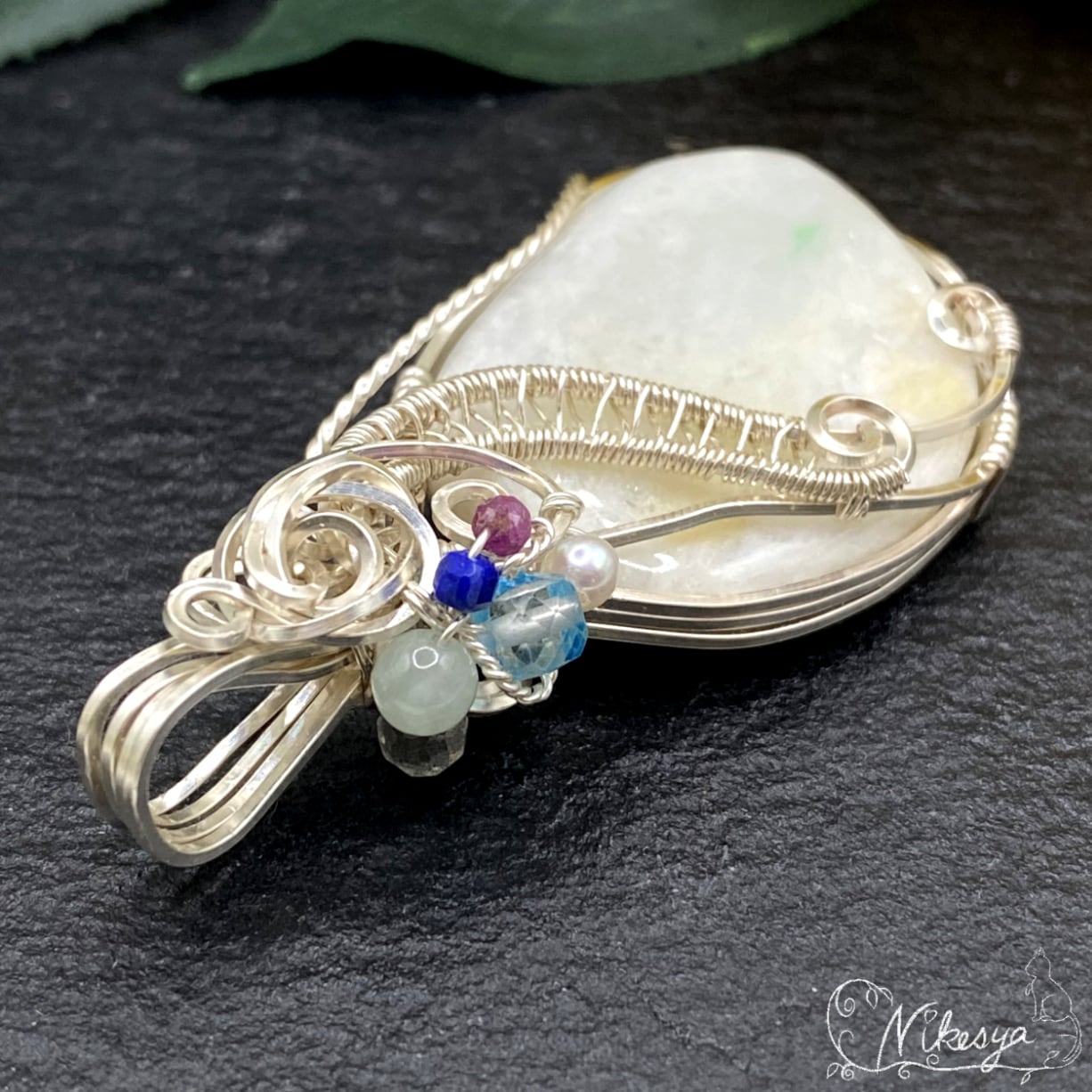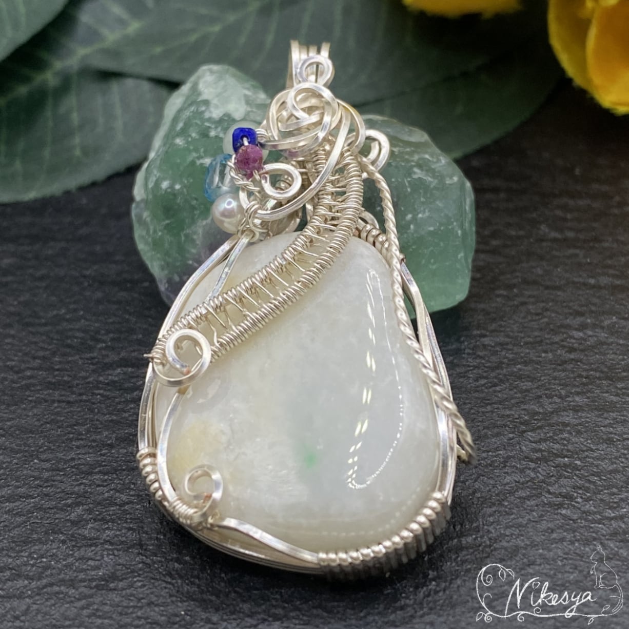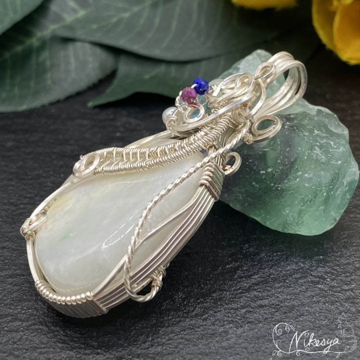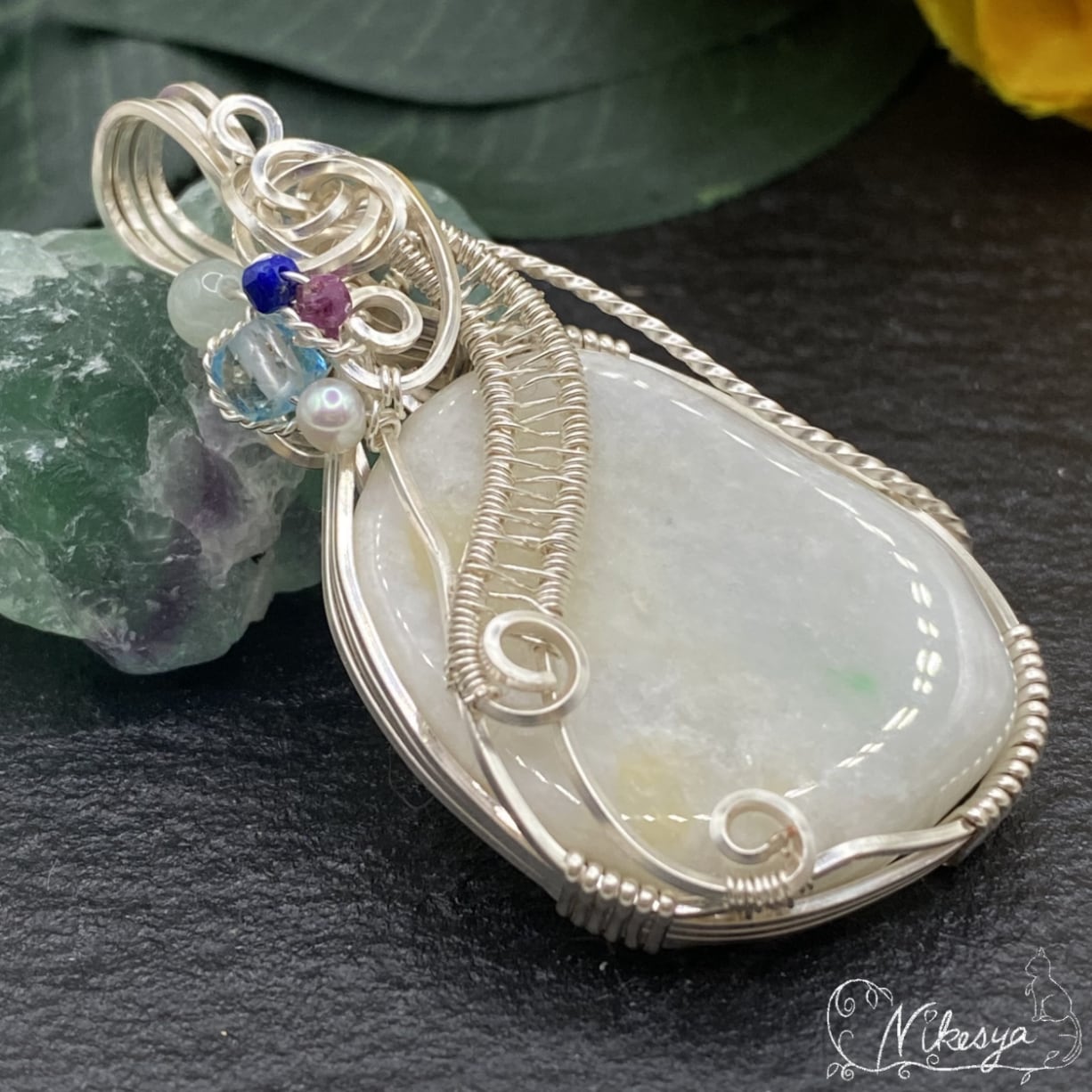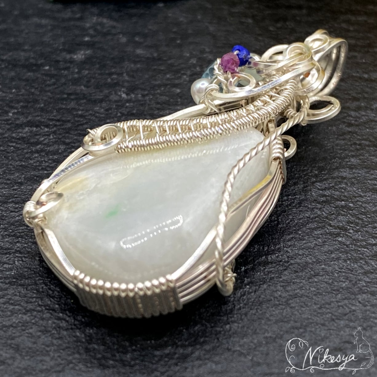 ジュエリーワイヤーで華やかにラップされたデザインは、