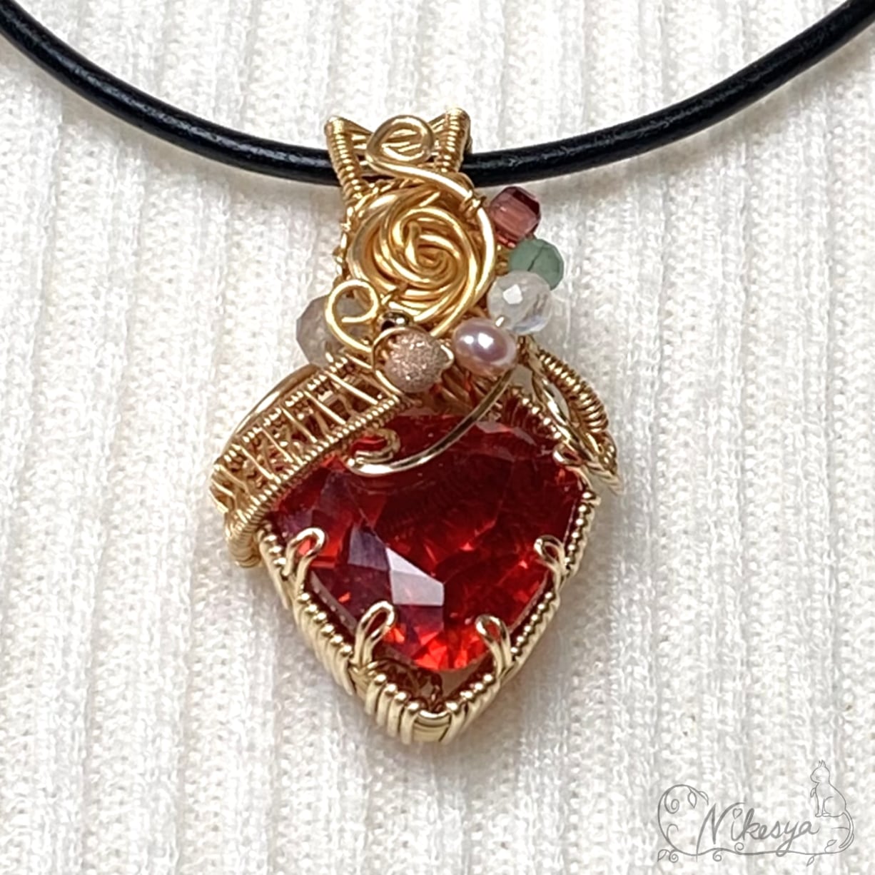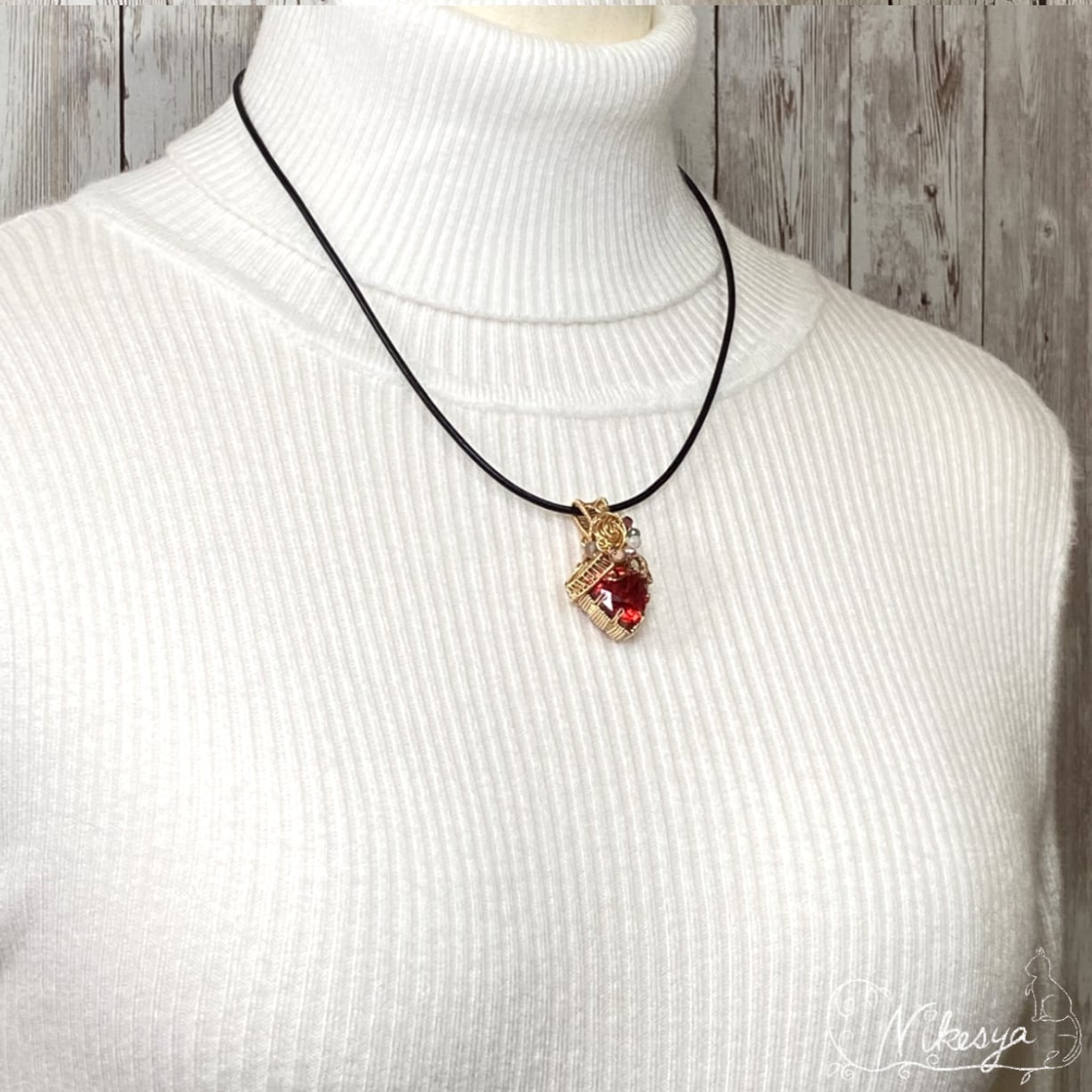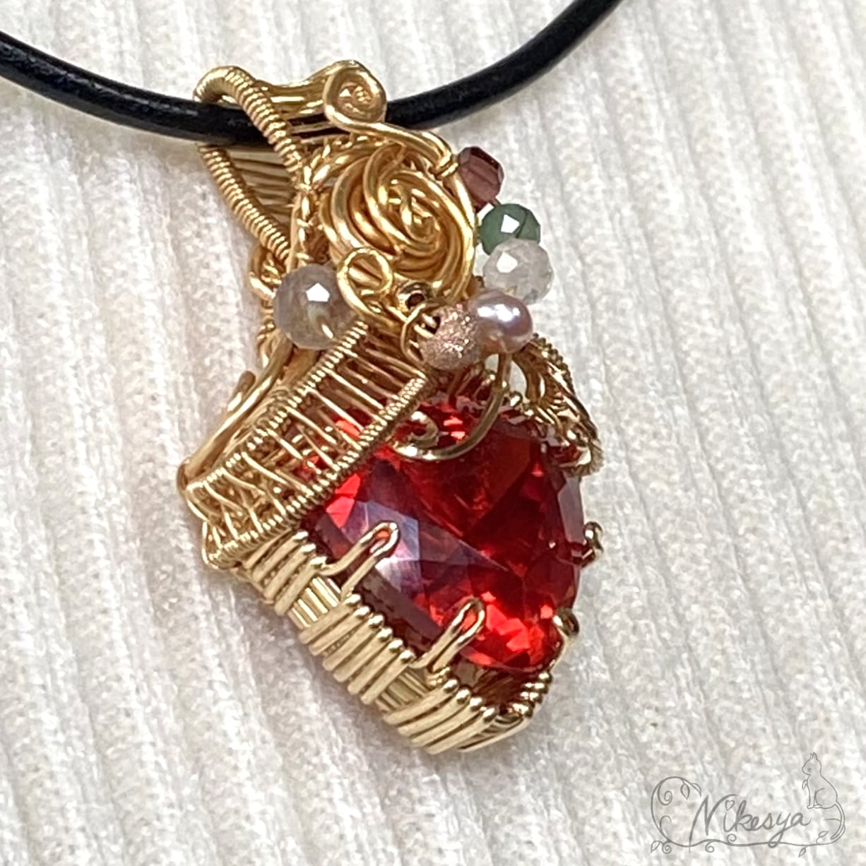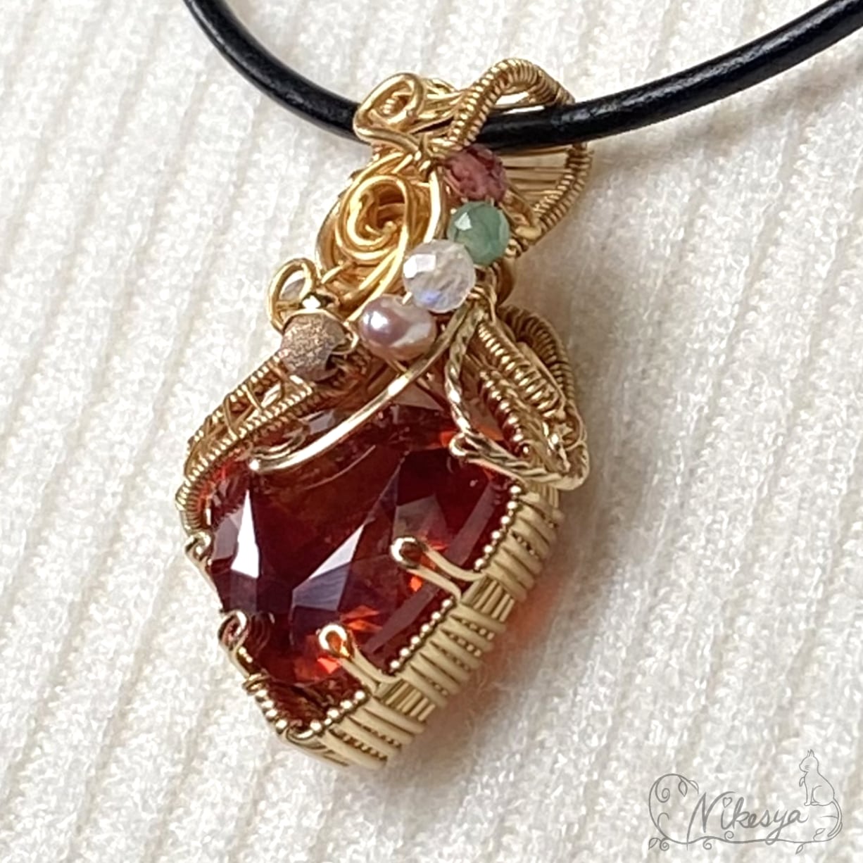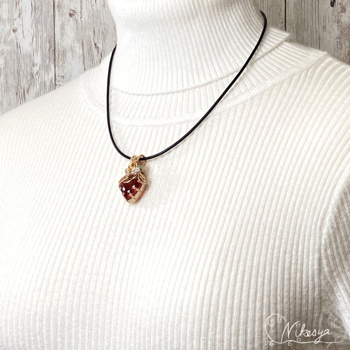 14KGFワイヤーで丁寧にラップされたペンダントトップは、無遊色ながらもその存在感は圧倒的で、