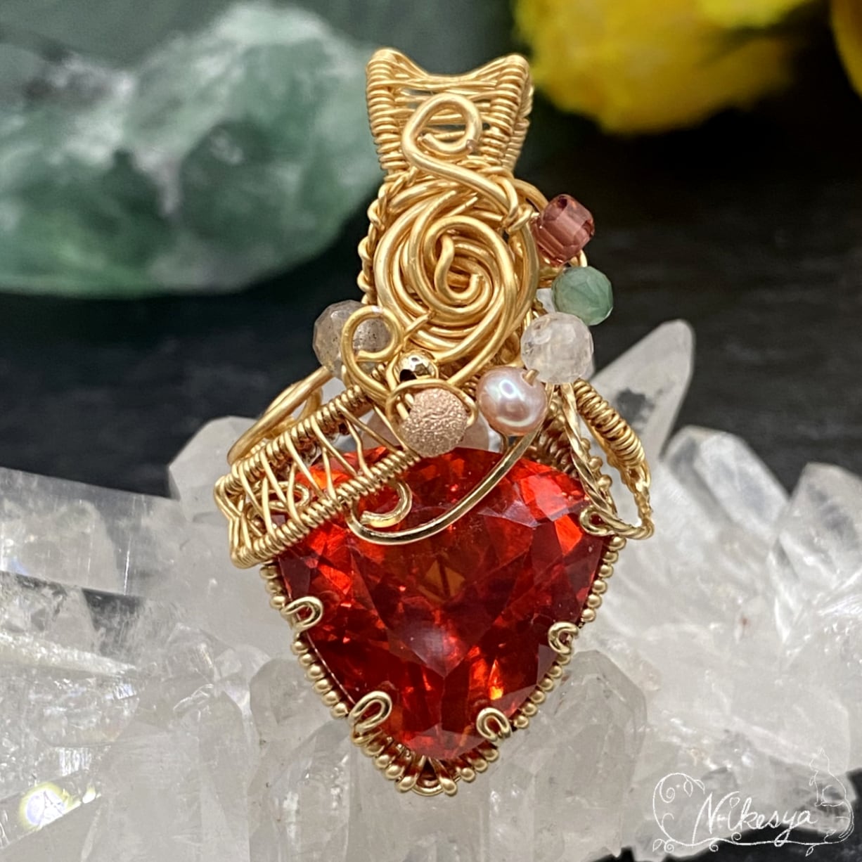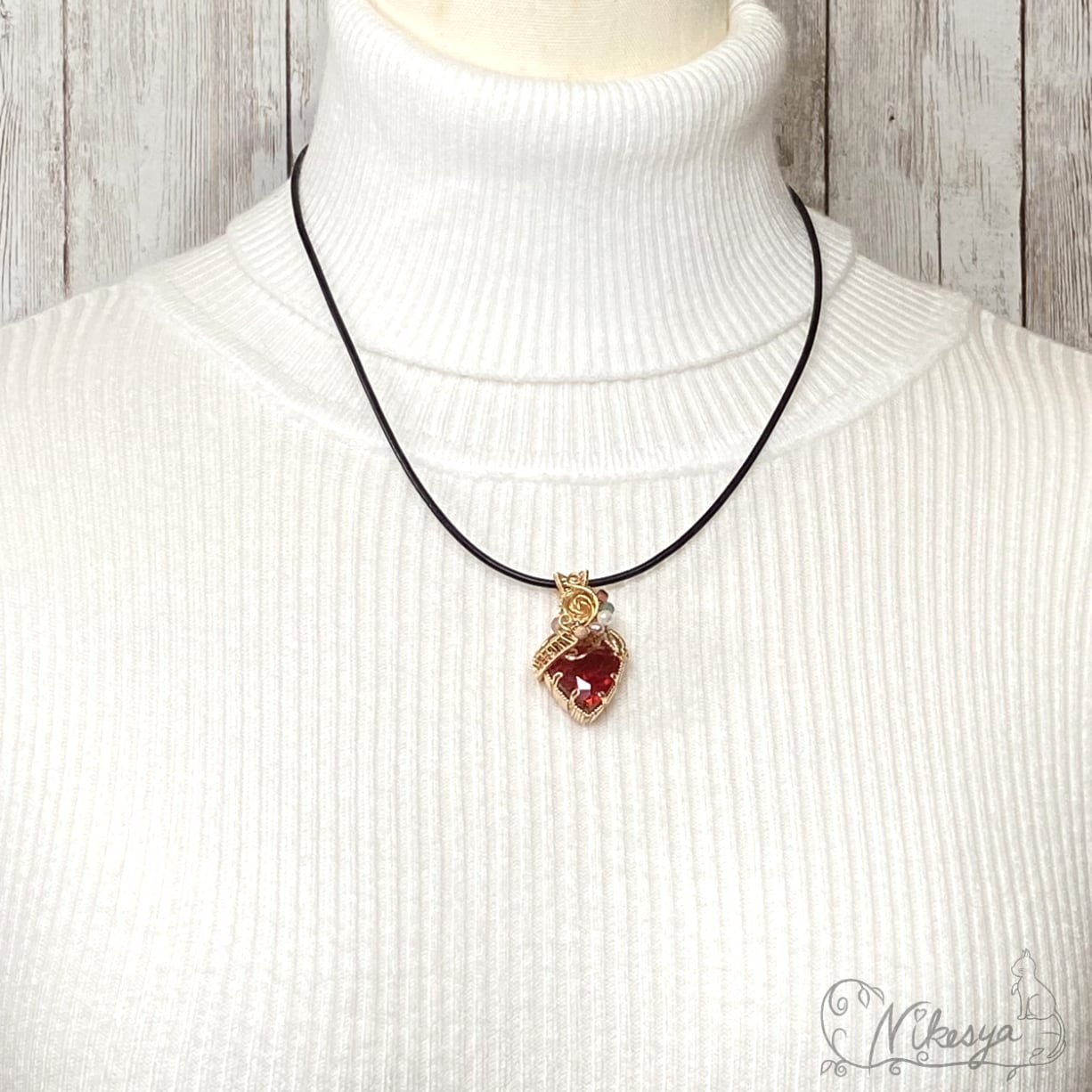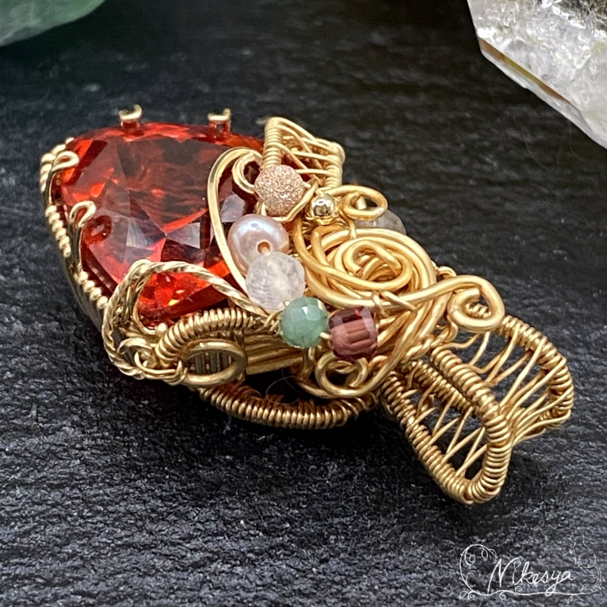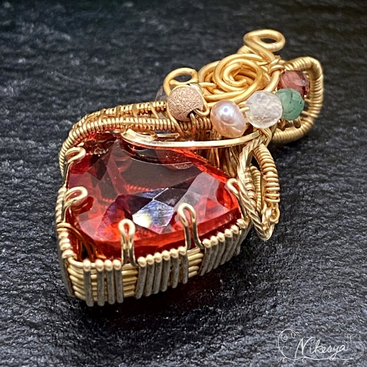 14KGFワイヤーで丁寧にラップされたペンダントトップは、無遊色ながらもその存在感は圧倒的で、