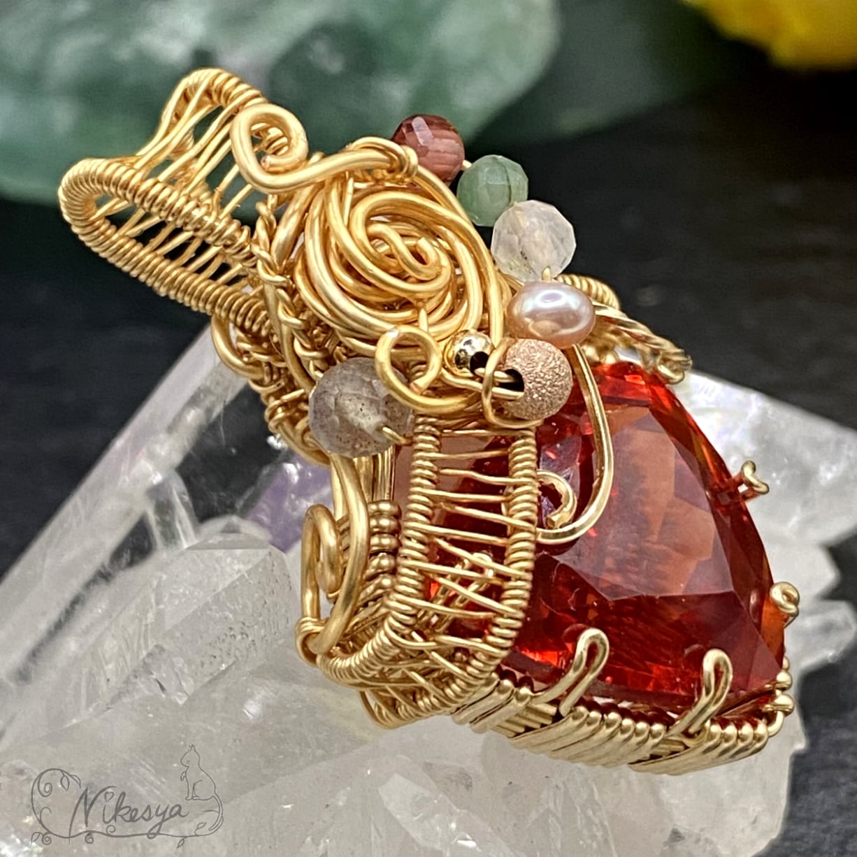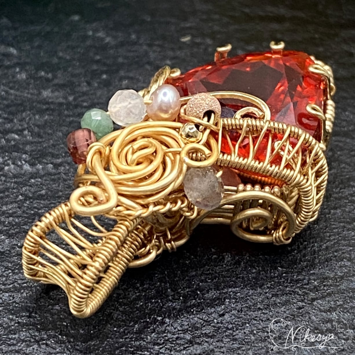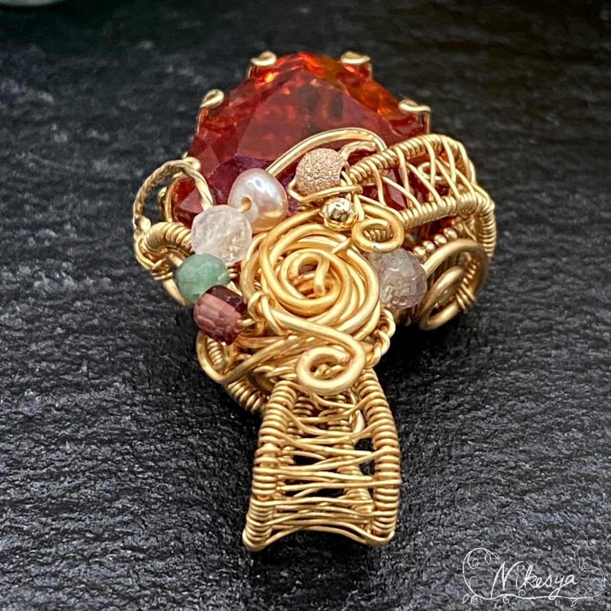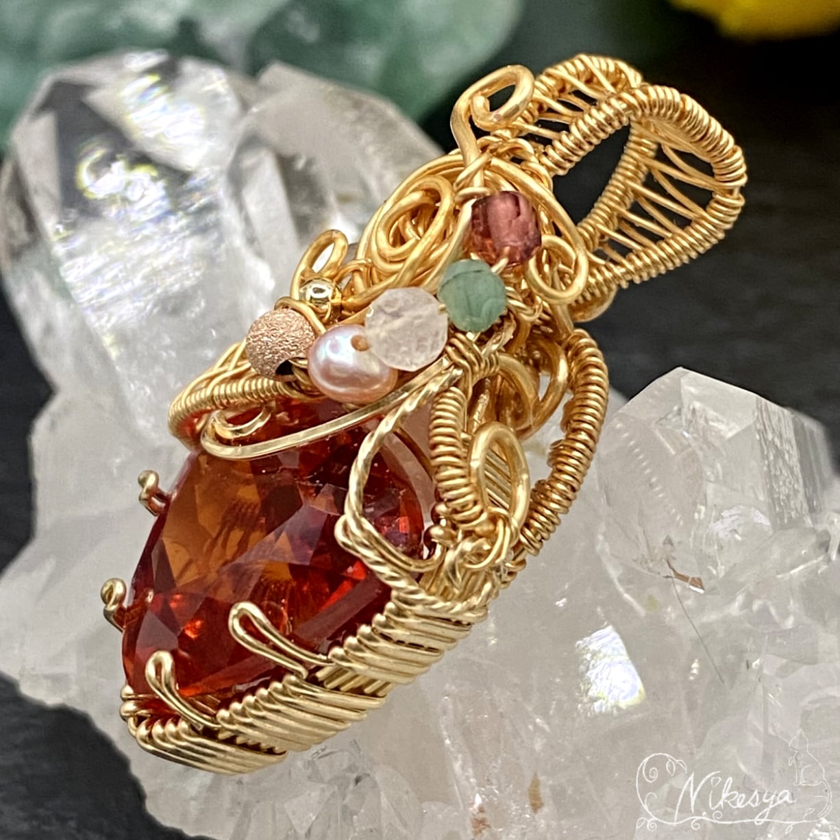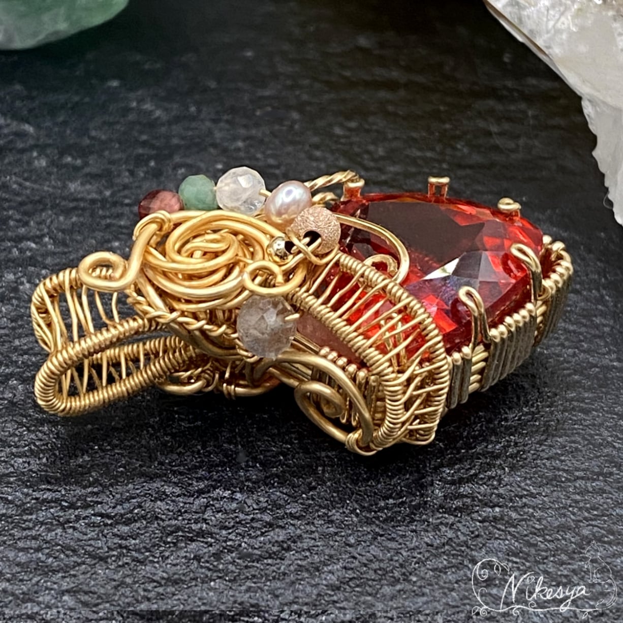14KGFワイヤーで丁寧にラップされたペンダントトップは、無遊色ながらもその存在感は圧倒的で、