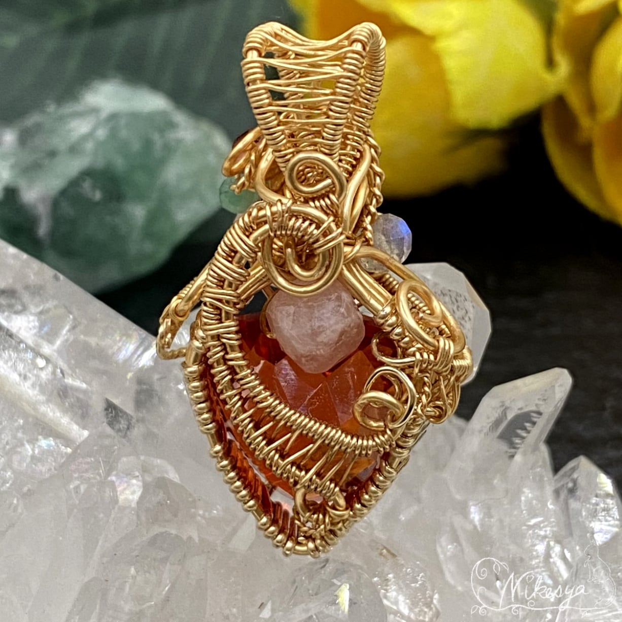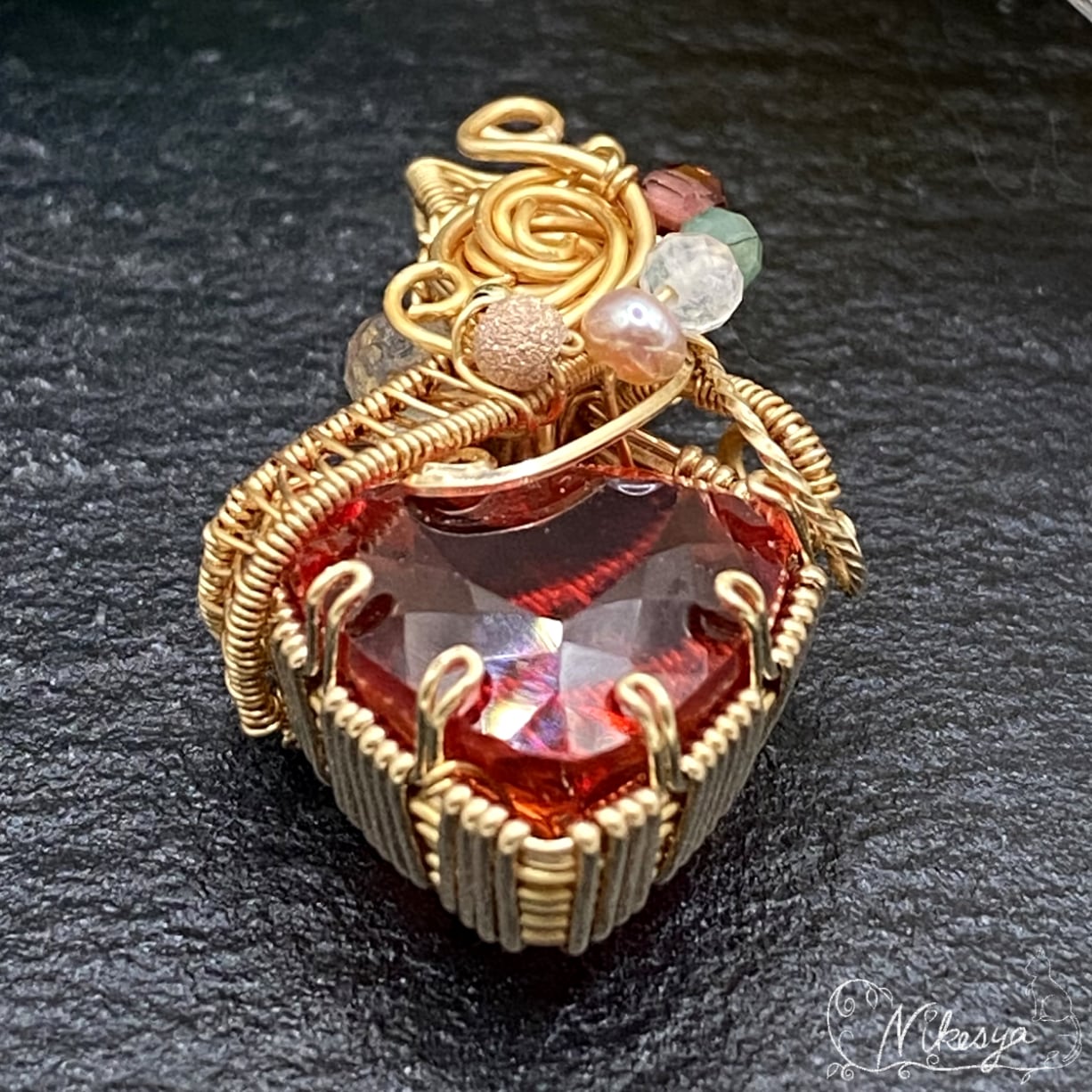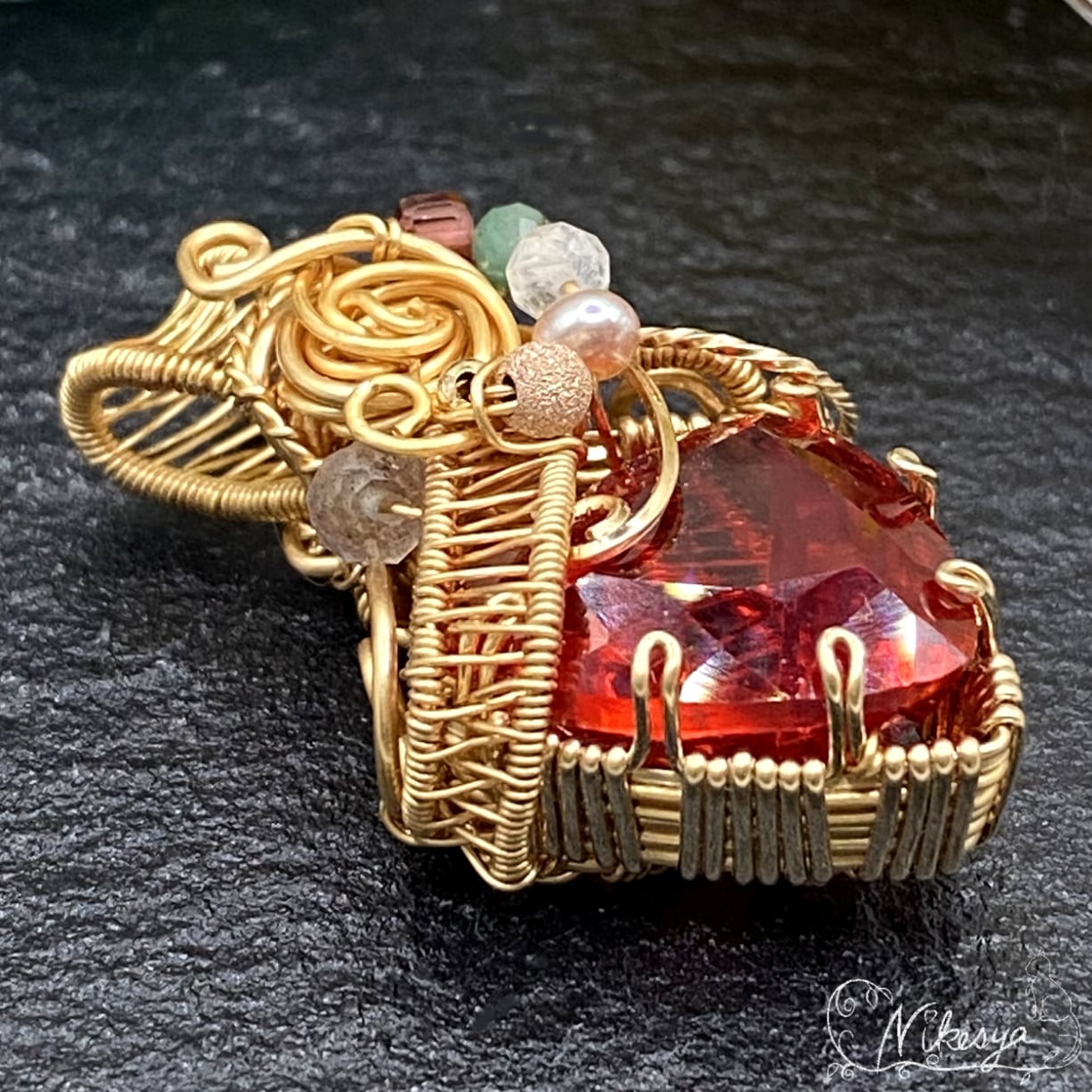 #ファイアオパール #メキシカンオパール #ワイヤーアクセサリー #ペンダントトップ #14KGF #10月誕生石 #一点もの #送料無料