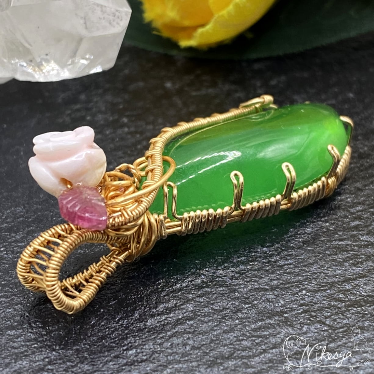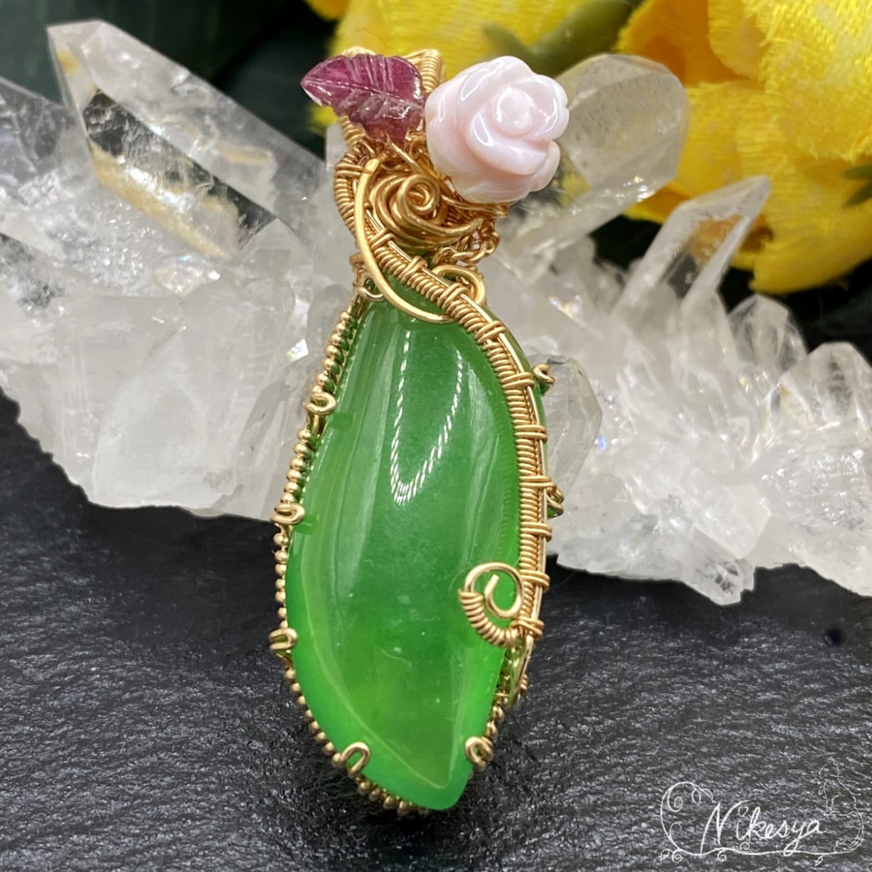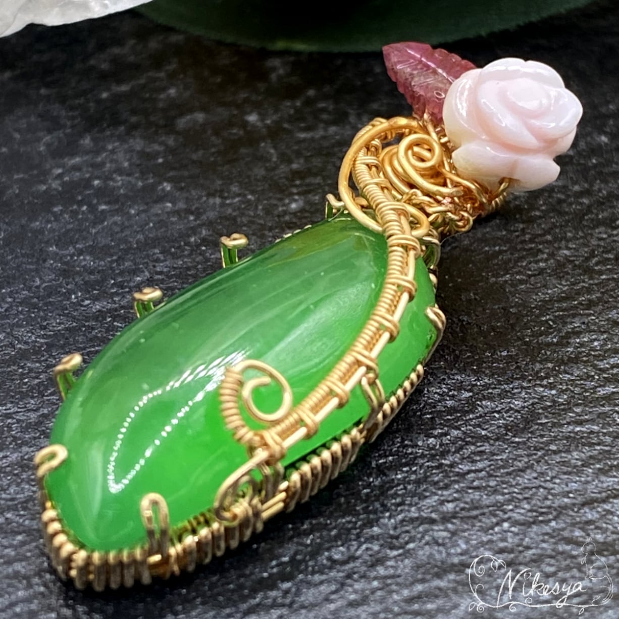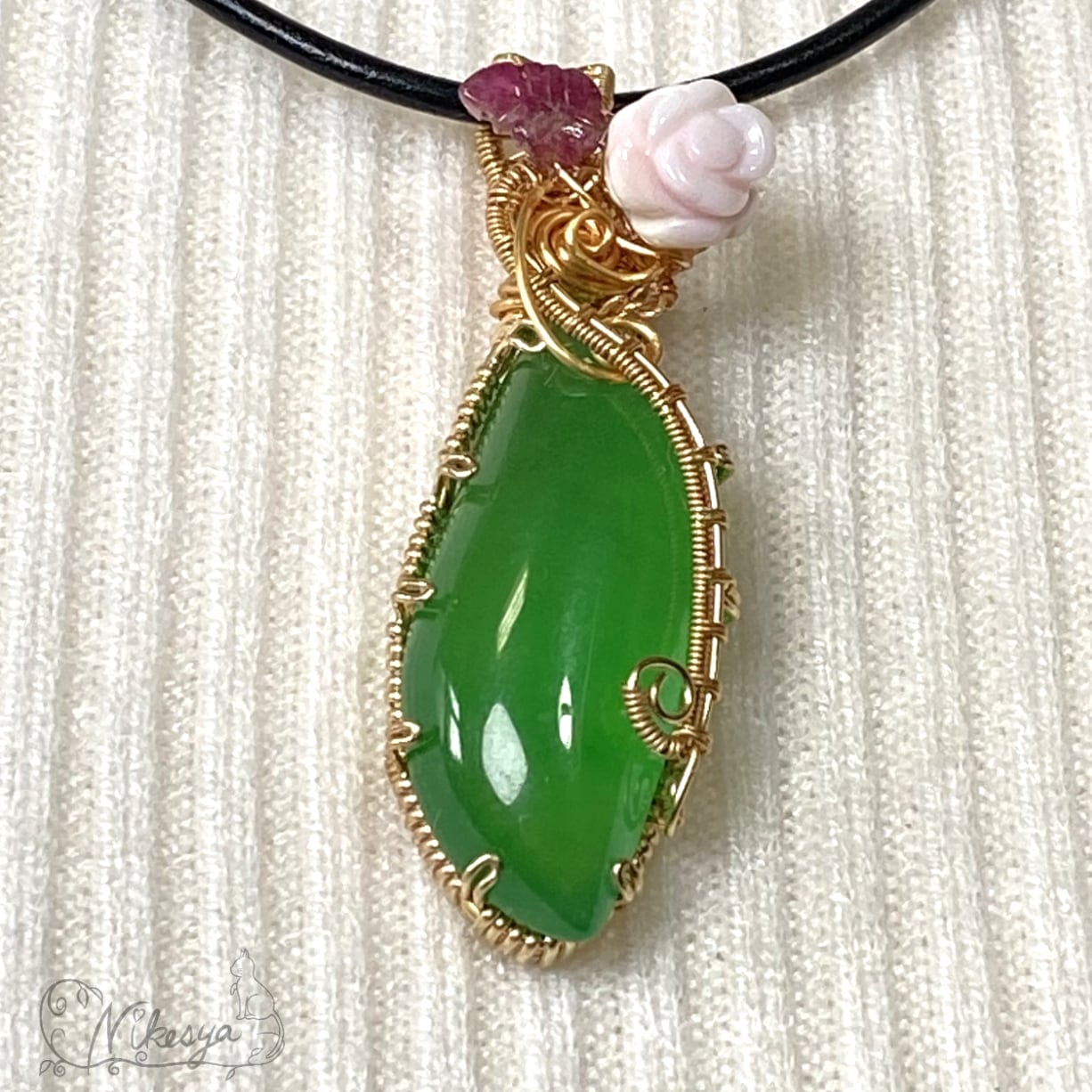 #翡翠 #ワイヤーアクセサリー #ペンダントトップ #14kgf #一点もの #ミャンマーヒスイ #5月誕生石 #送料無料