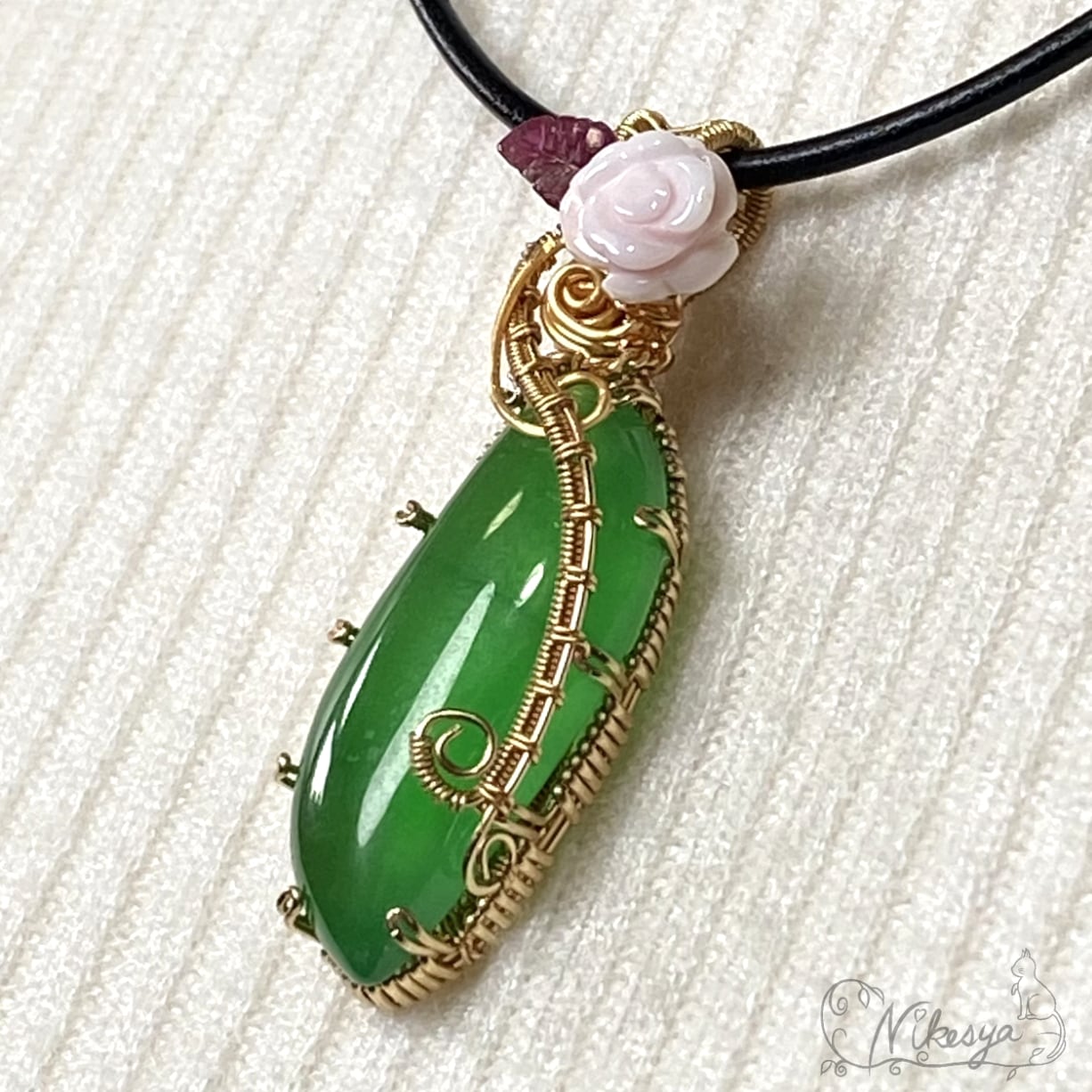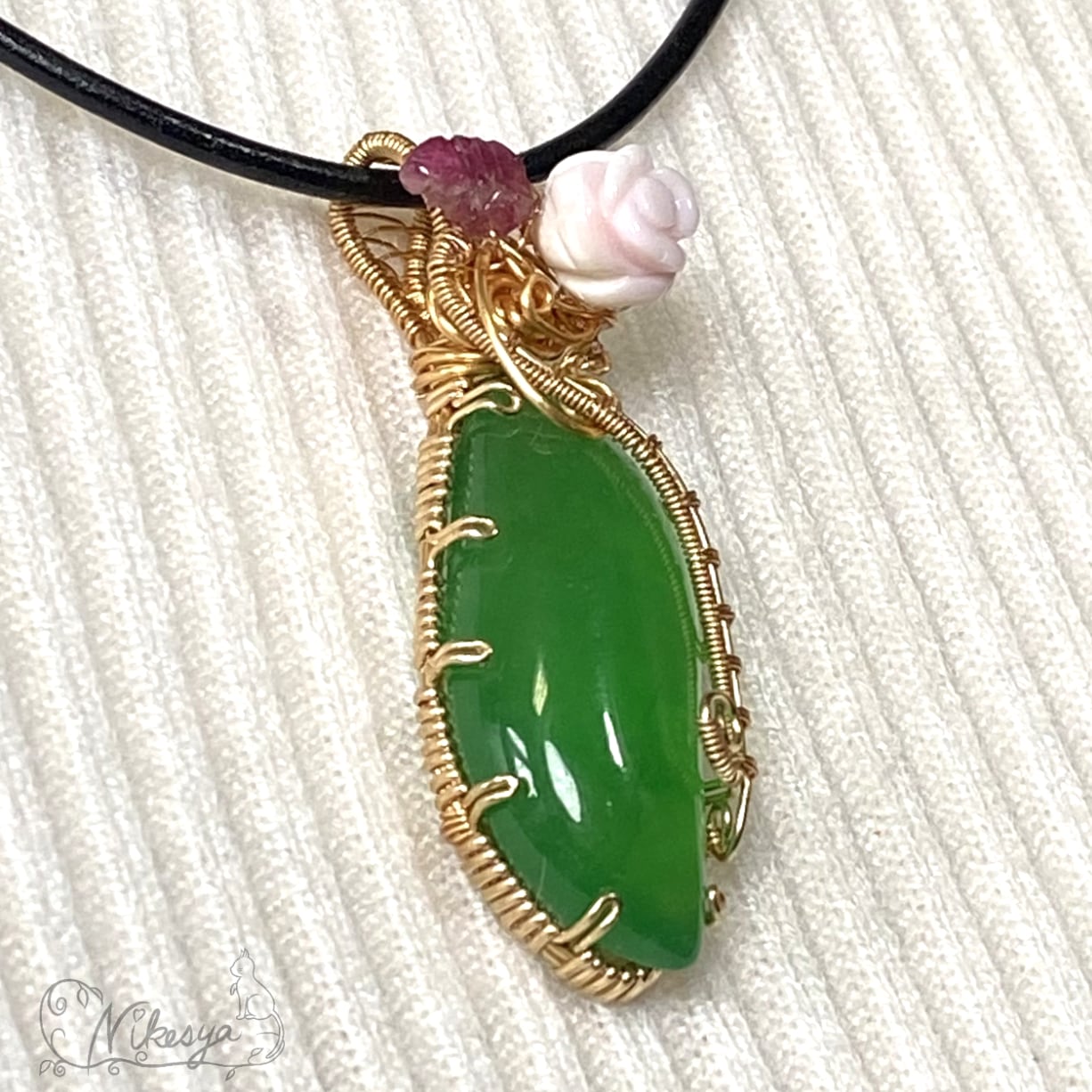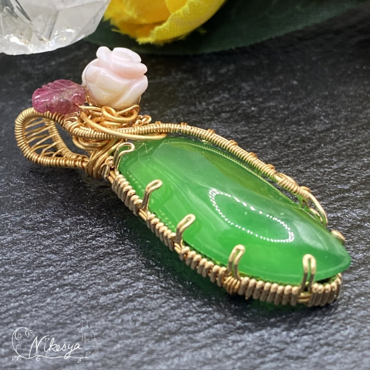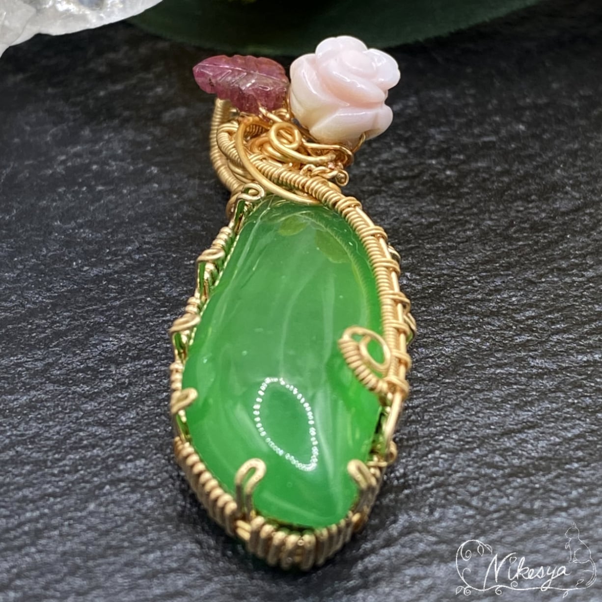 #翡翠 #ワイヤーアクセサリー #ペンダントトップ #14kgf #一点もの #ミャンマーヒスイ #5月誕生石 #送料無料