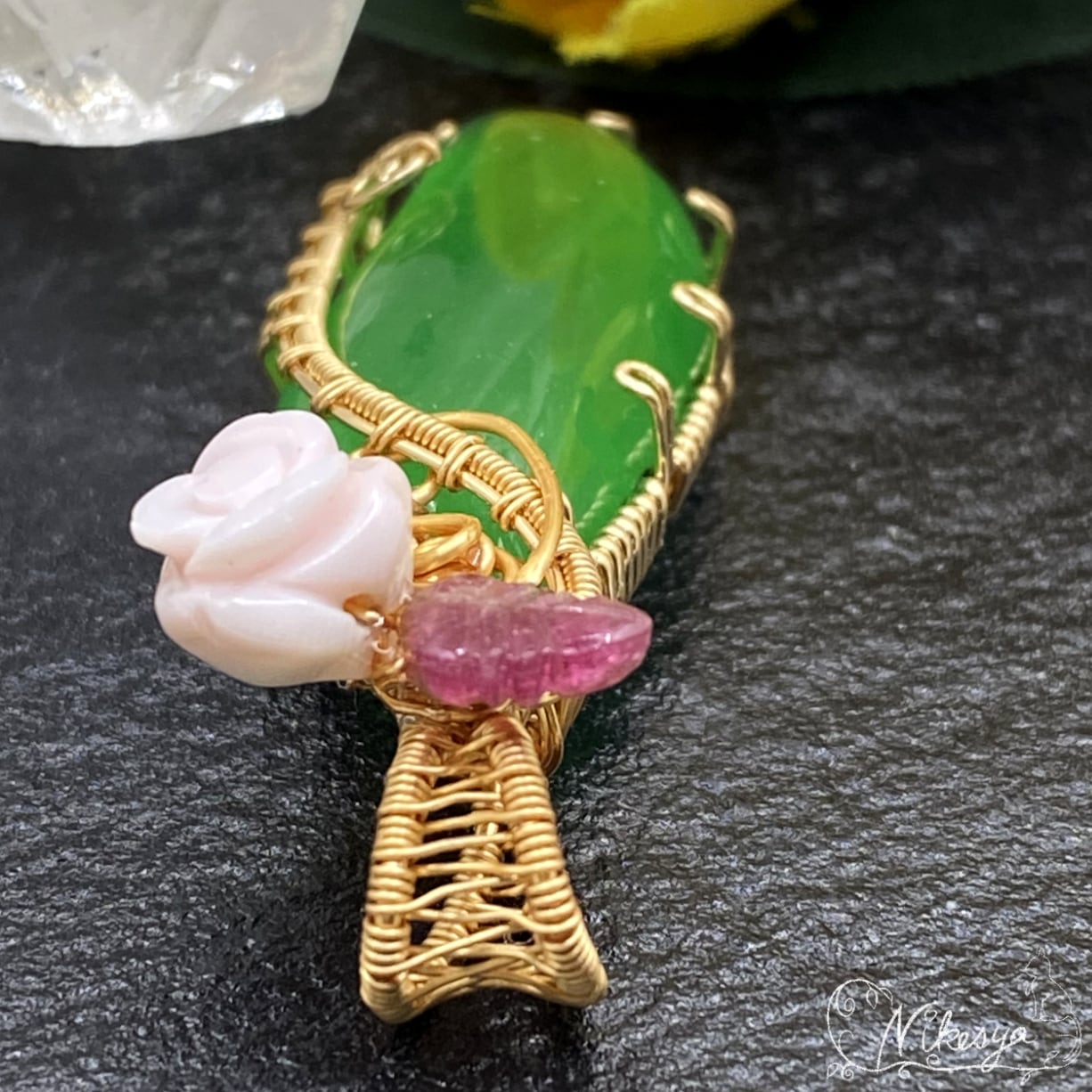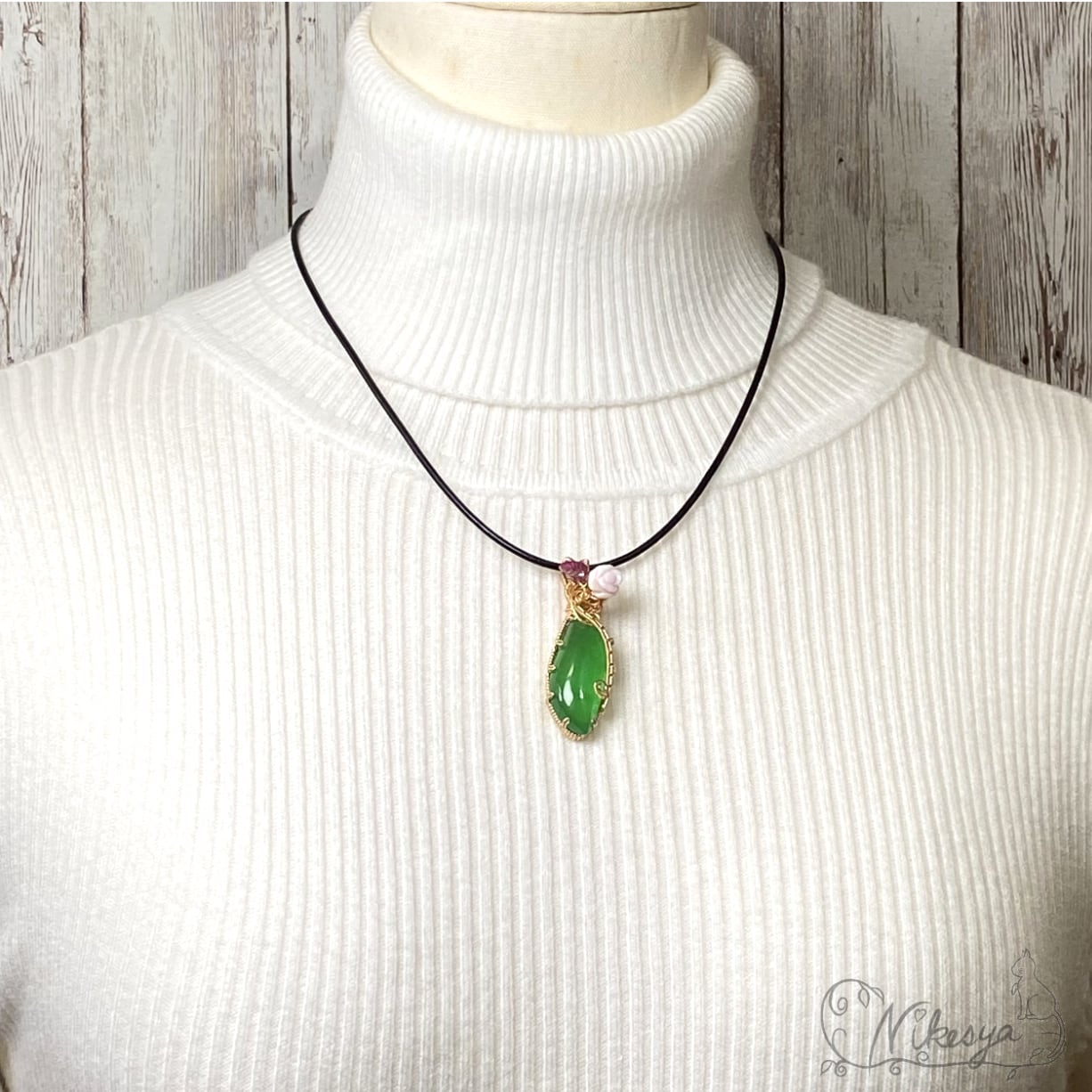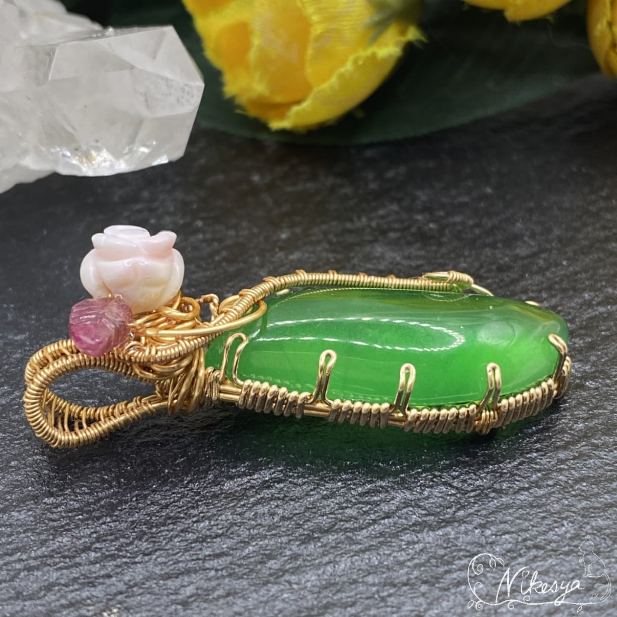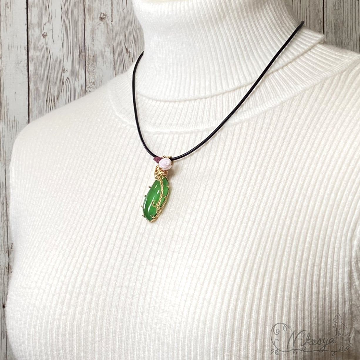 #翡翠 #ワイヤーアクセサリー #ペンダントトップ #14kgf #一点もの #ミャンマーヒスイ #5月誕生石 #送料無料