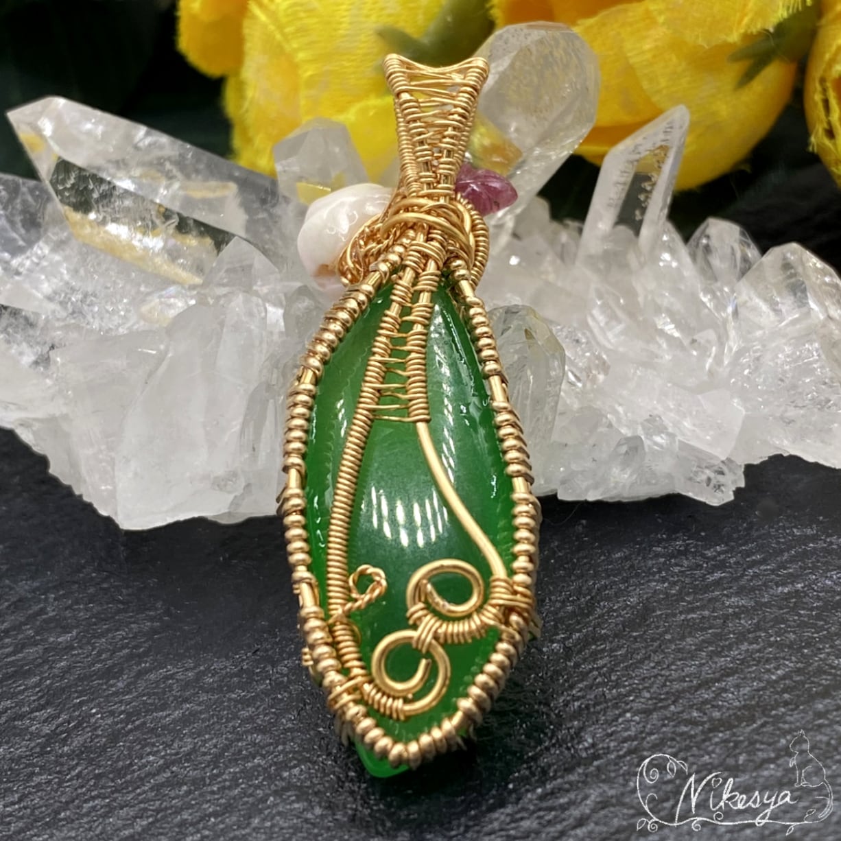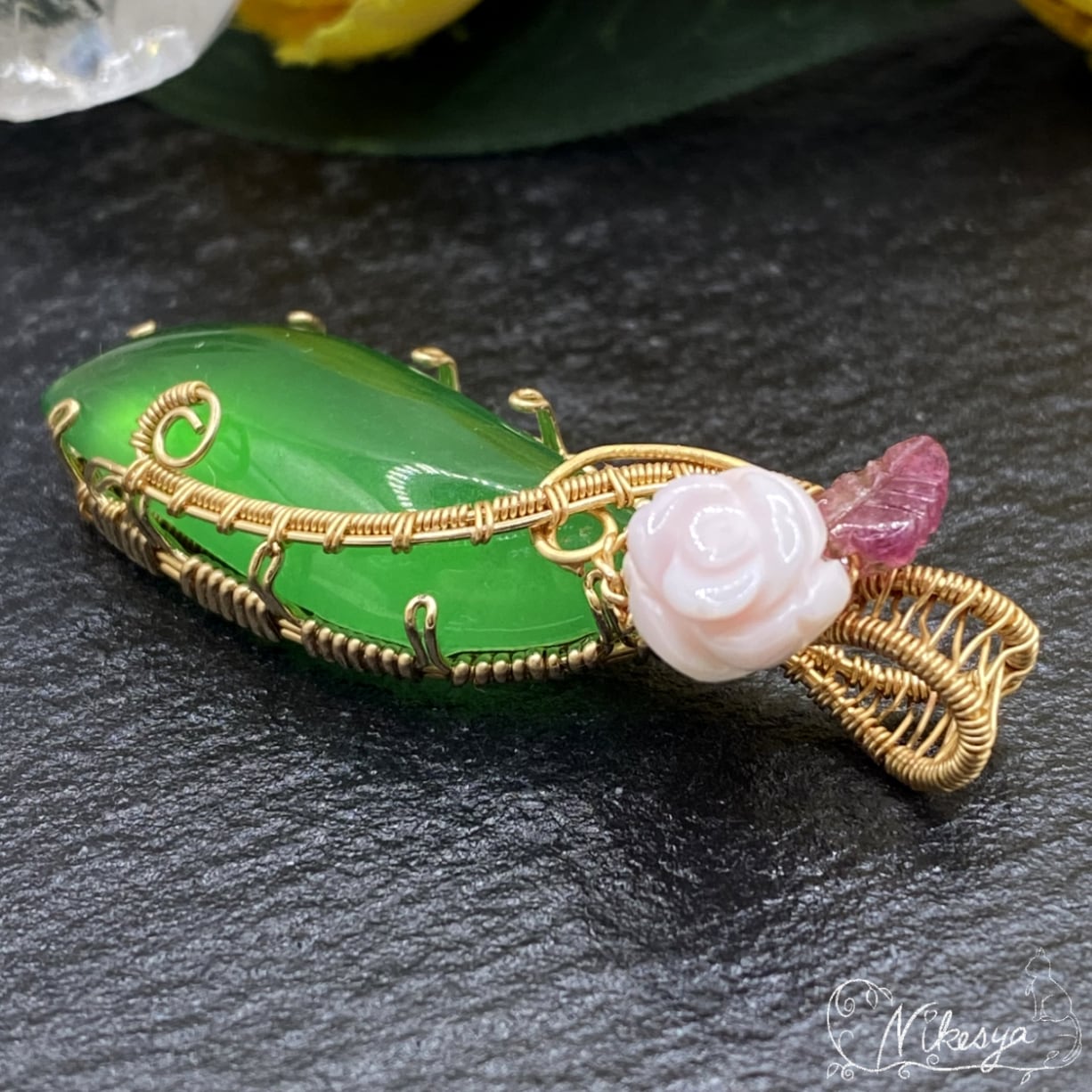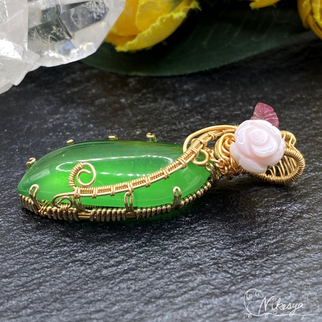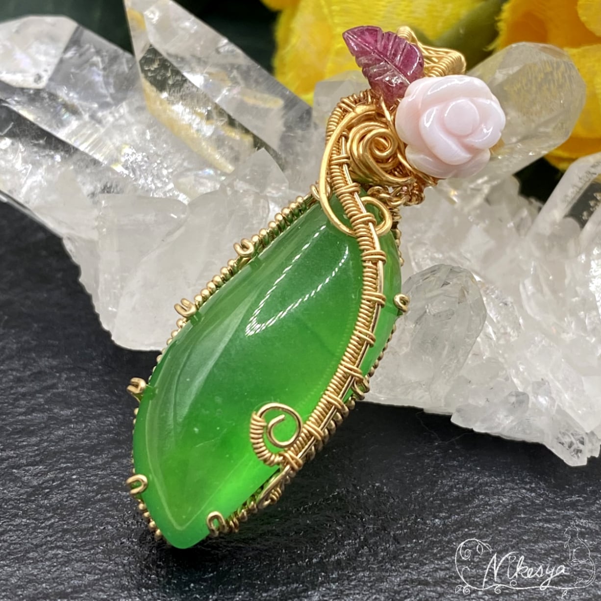 #翡翠 #ワイヤーアクセサリー #ペンダントトップ #14kgf #一点もの #ミャンマーヒスイ #5月誕生石 #送料無料