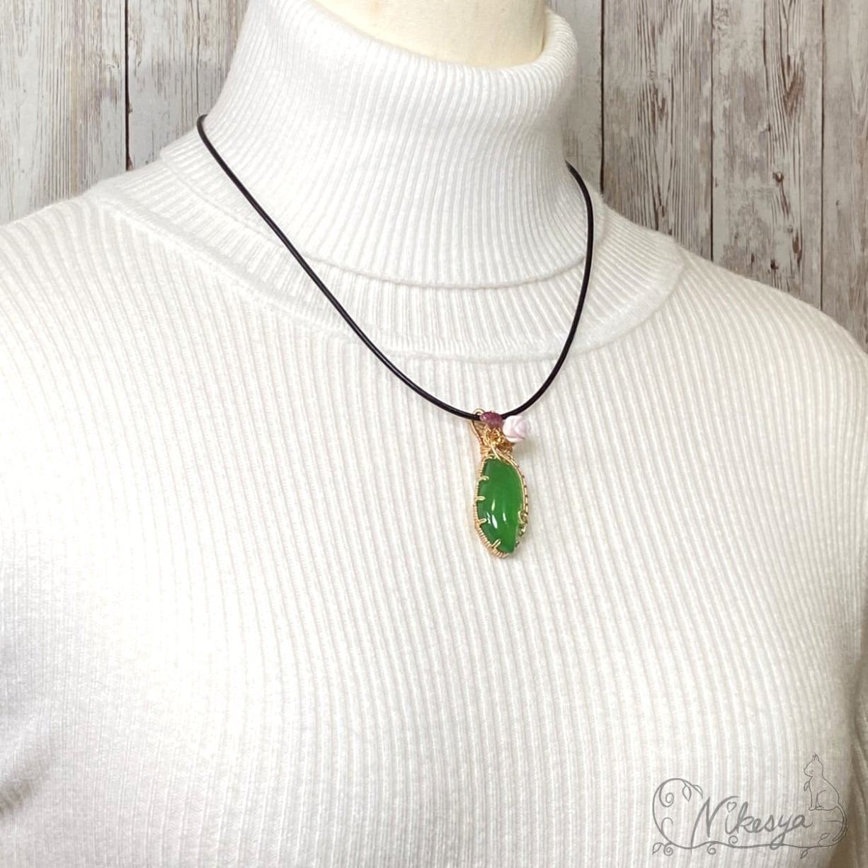 ミャンマーヒスイ木の葉型のペンダントトップです。