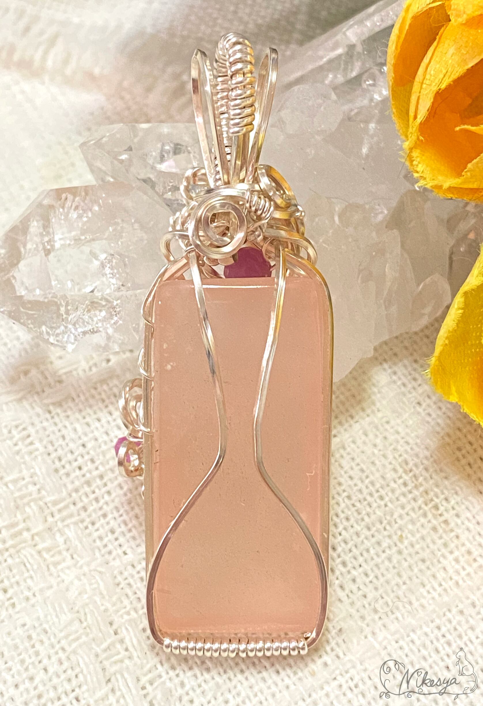 【ワイヤーアクセサリー】ローズクォーツのペンダントトップ【1点もの】【10月誕生石】【送料無料】