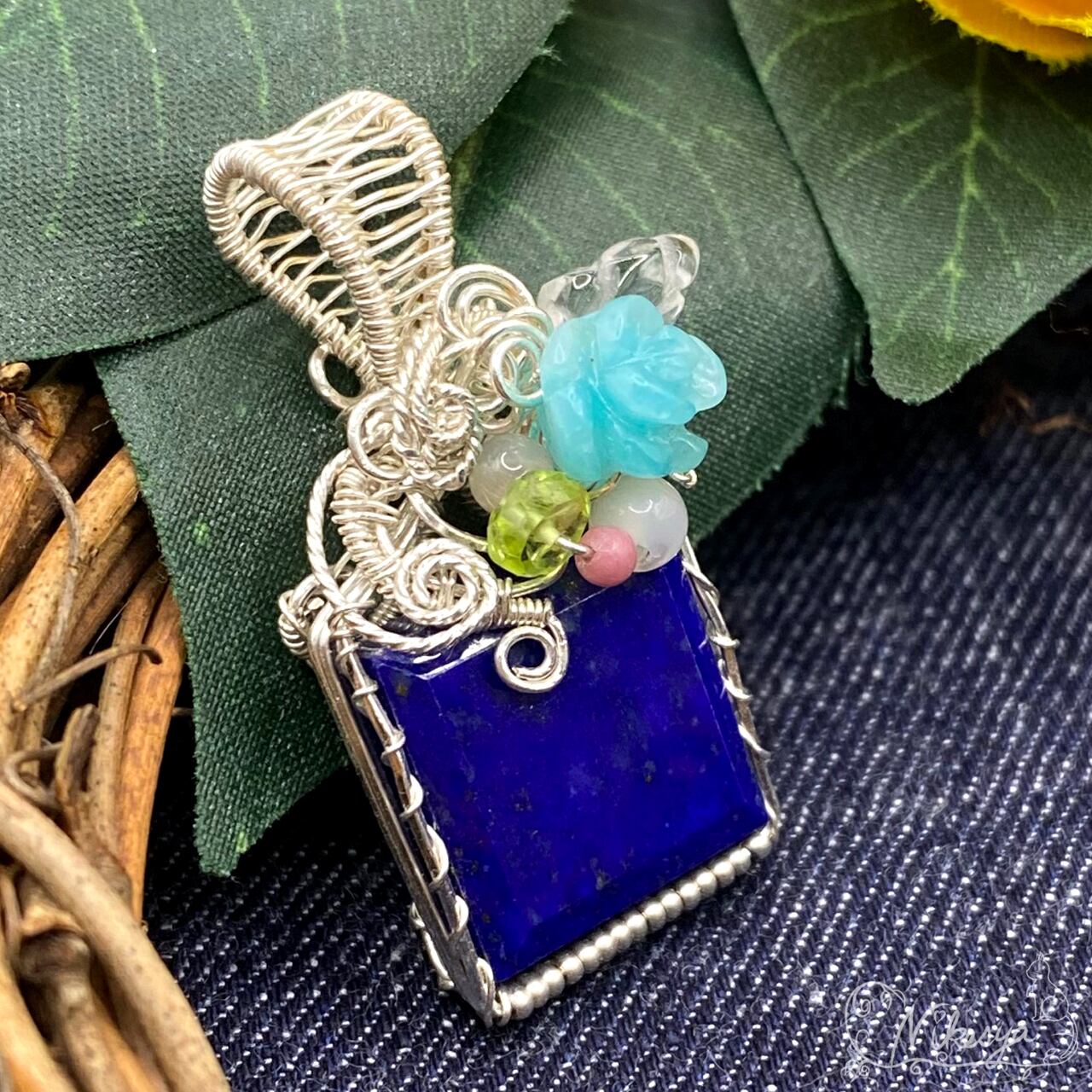 #ワイヤーアクセサリー #ペンダントトップ #一点もの #ラピスラズリ #12月誕生石 #送料無料