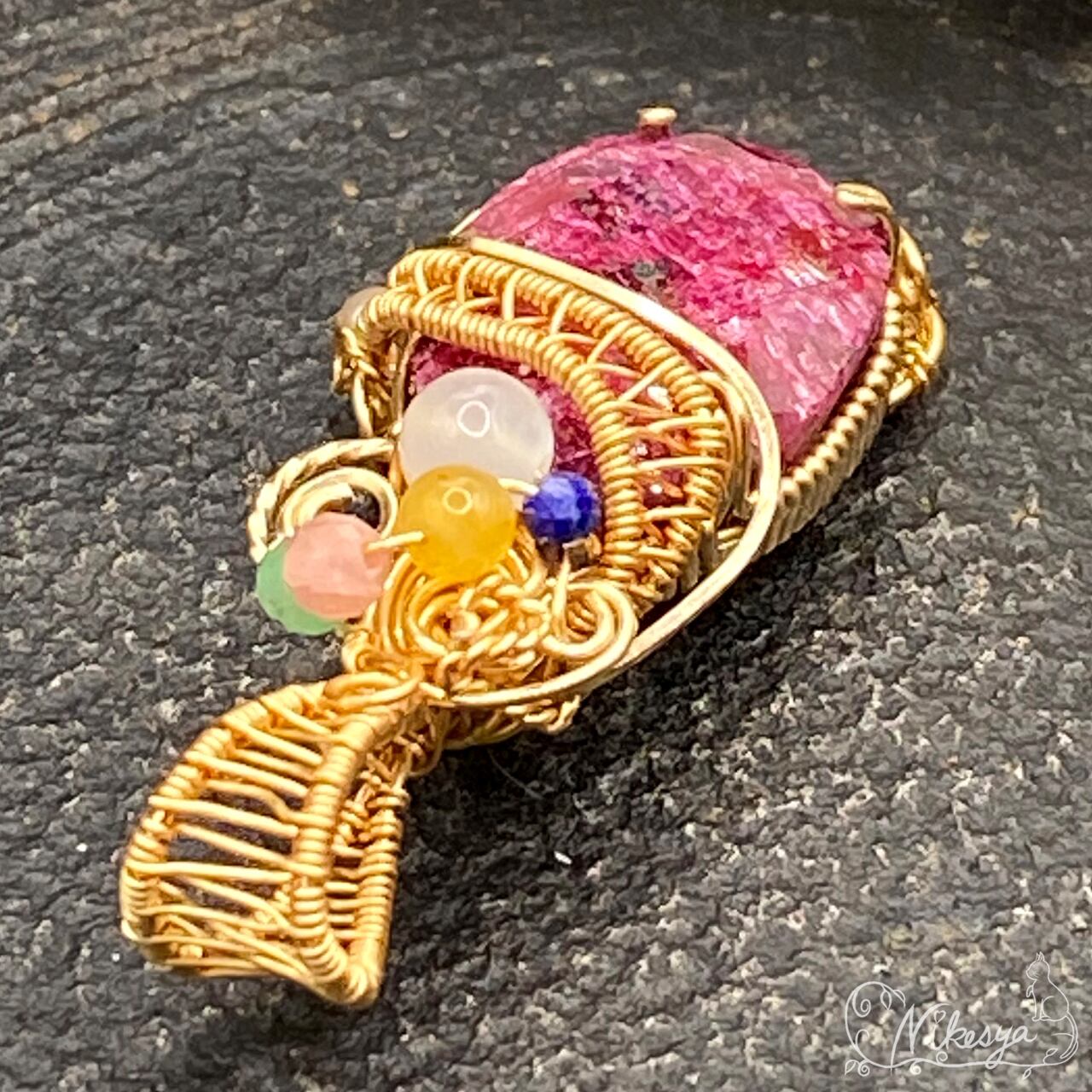 #ワイヤーアクセサリー #ペンダントトップ #ルビー #レインボームーンストーン #14KGF #7月誕生石 #一点もの #送料無料